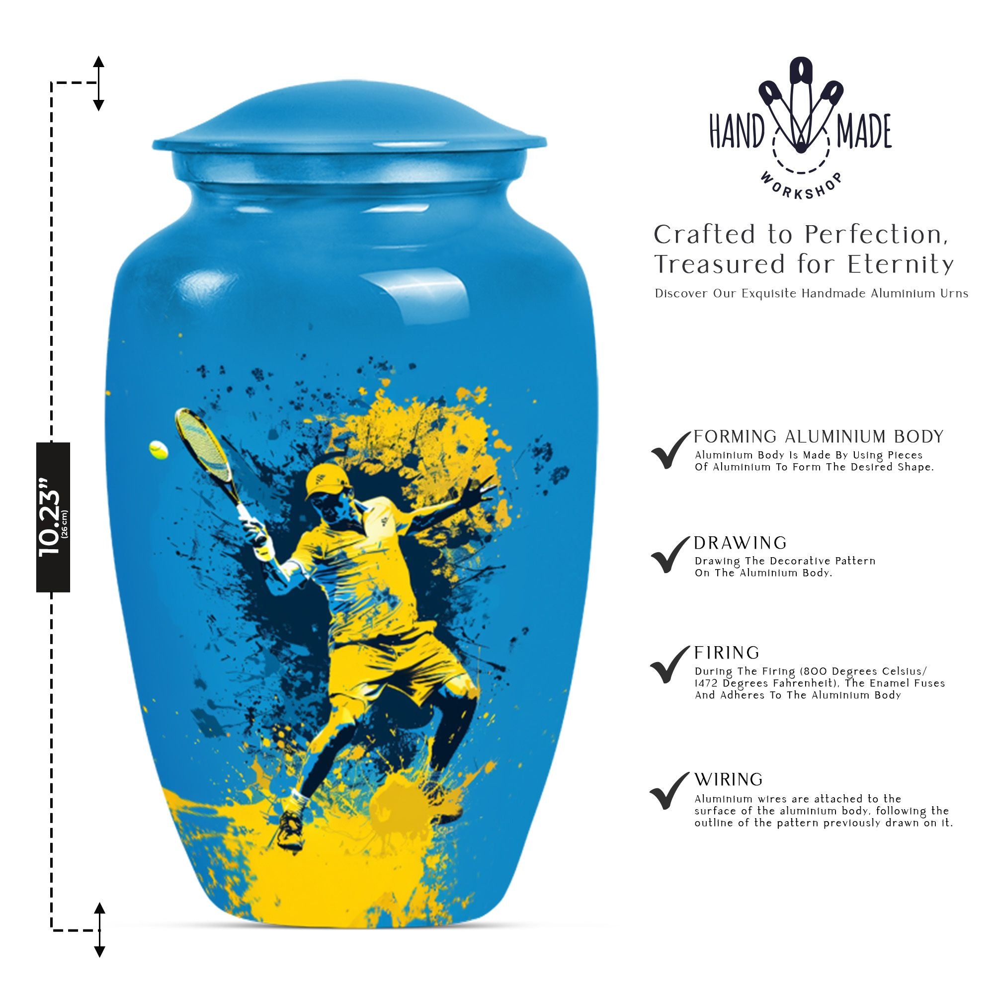 Immerse yourself in the beauty of remembrance with this exquisite 10 Inch Classic urn, the perfect choice when searching for 'tennis urn' or 'memorial urn for ashes for mom'. Fashioned from high-grade Aluminium, this Large Urn weighs a substantial 3.3 pounds, signifying its exceptional quality. Standing at a respectfully majestic 10 inches in height, it houses up to 200 cubic inches of ashes, fully encapsulating cherished memories within. Enclosed within the purchase is a soft velvet pouch, providing an extra layer of protection and dignity for the contained ashes. Complement the serene 'Purple Meadow' theme by inscribing personal engravings, a service offered as part of our customization options. Whether you're seeking 'Funeral urns for adult ashes', 'ash urn ashes adult', 'Outdoor urns', or 'burial urns metal', this beautifully crafted urn transcends standard memorial offerings, providing a high-quality tribute to your loved one.