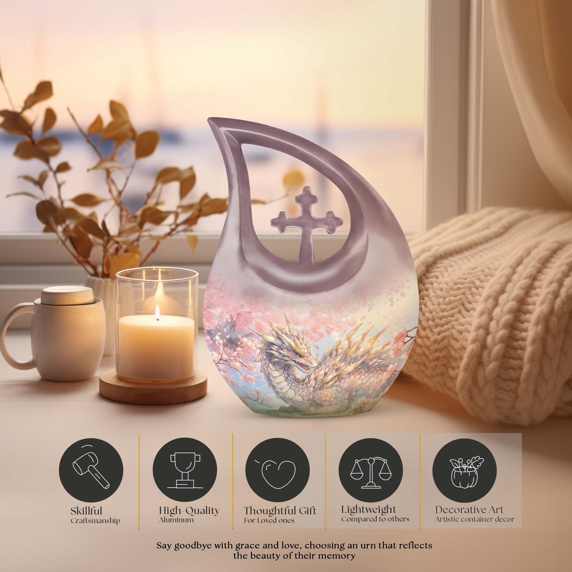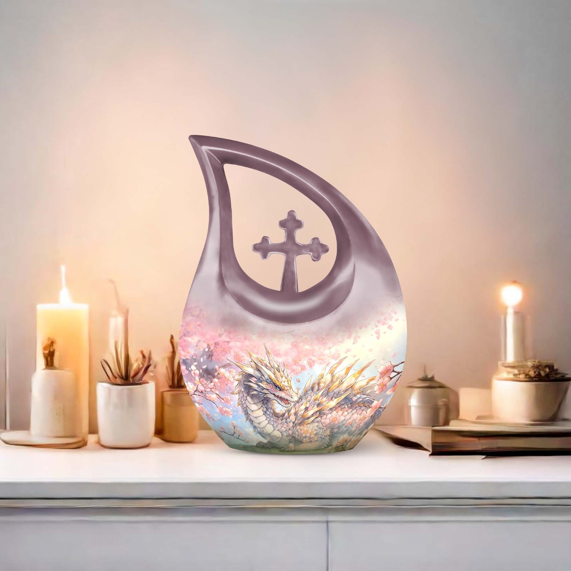 The Pink Cherry Blossom Dragon Memorial Urn brings together strength and serenity, creating a peaceful tribute for remembering a loved one. With its soft blossom design and protective dragon imagery, this urn offers a meaningful resting place suited for an urn for adult male & female and cherished as one of the most beautiful urns women appreciate for its gentle elegance.