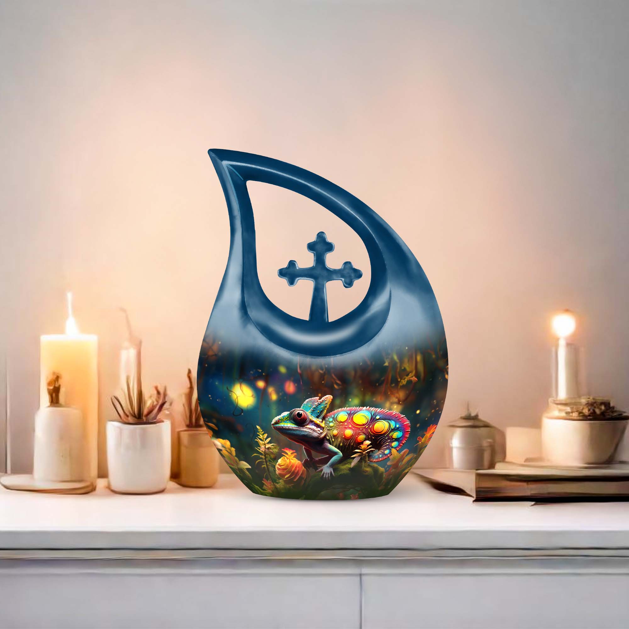 This Colorful Chameleon Urn for Human Ashes offers a vibrant, heartfelt way to honor a beloved mom. Its symbolic chameleon design reflects adaptability, protection, and enduring love—bringing comfort to families seeking a cremation urn mom or a meaningful urn cremation keepsake.