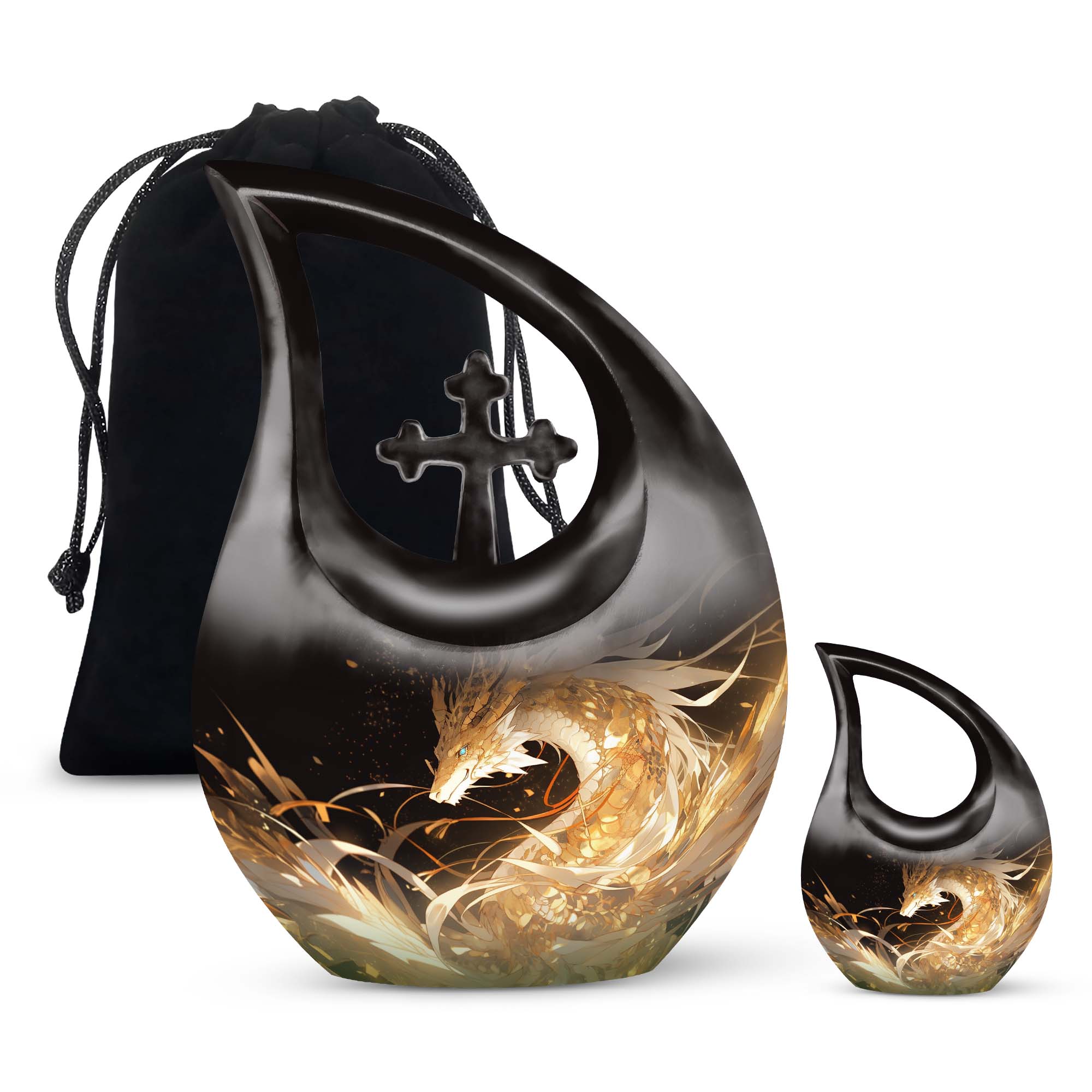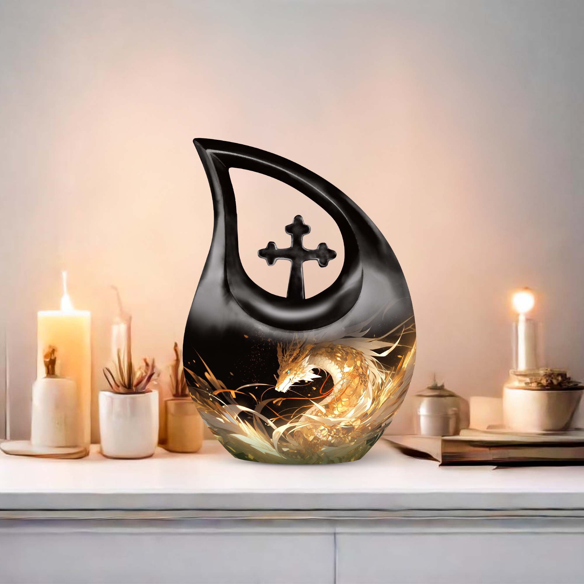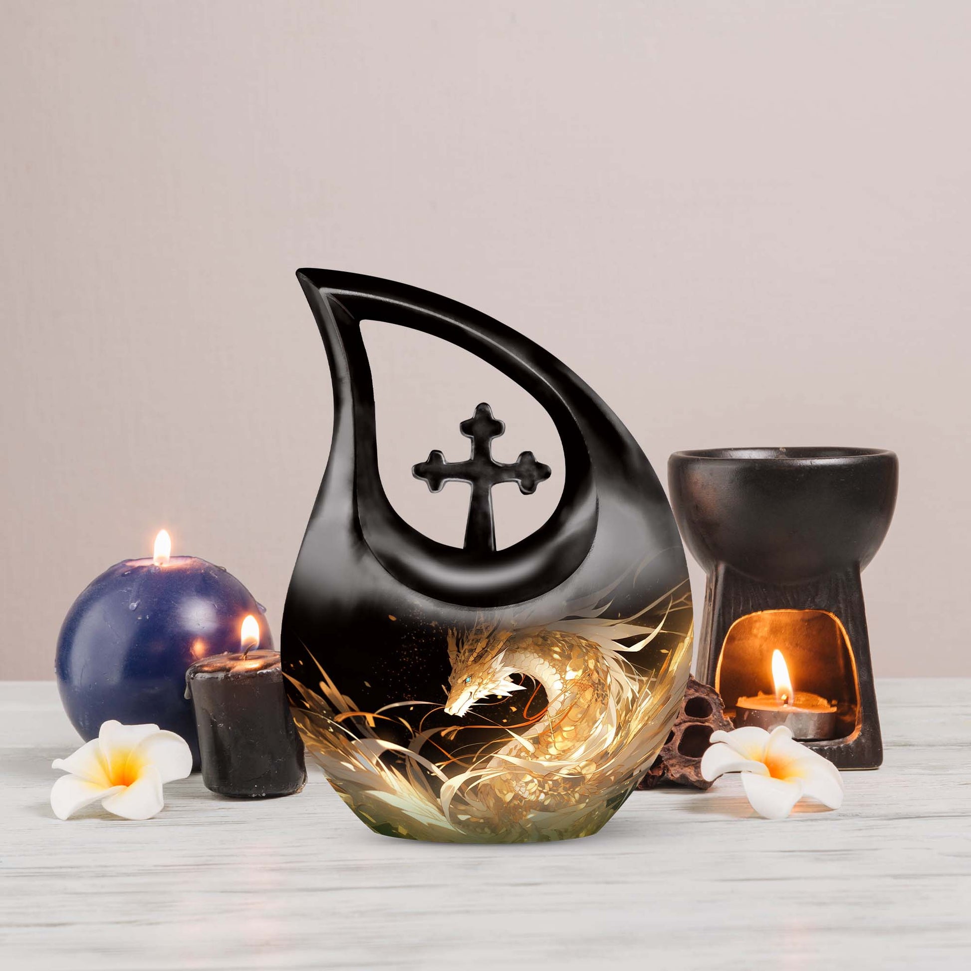 The Golden Dragon Urn offers a striking and heartfelt tribute for honoring a cherished life. With its radiant gold finish and fierce fire-dragon artwork, this urn symbolizes strength, protection, and eternal remembrance—making it a meaningful option for families seeking funeral urns for women, funeral urns for men, or a unisex memorial filled with dignity.