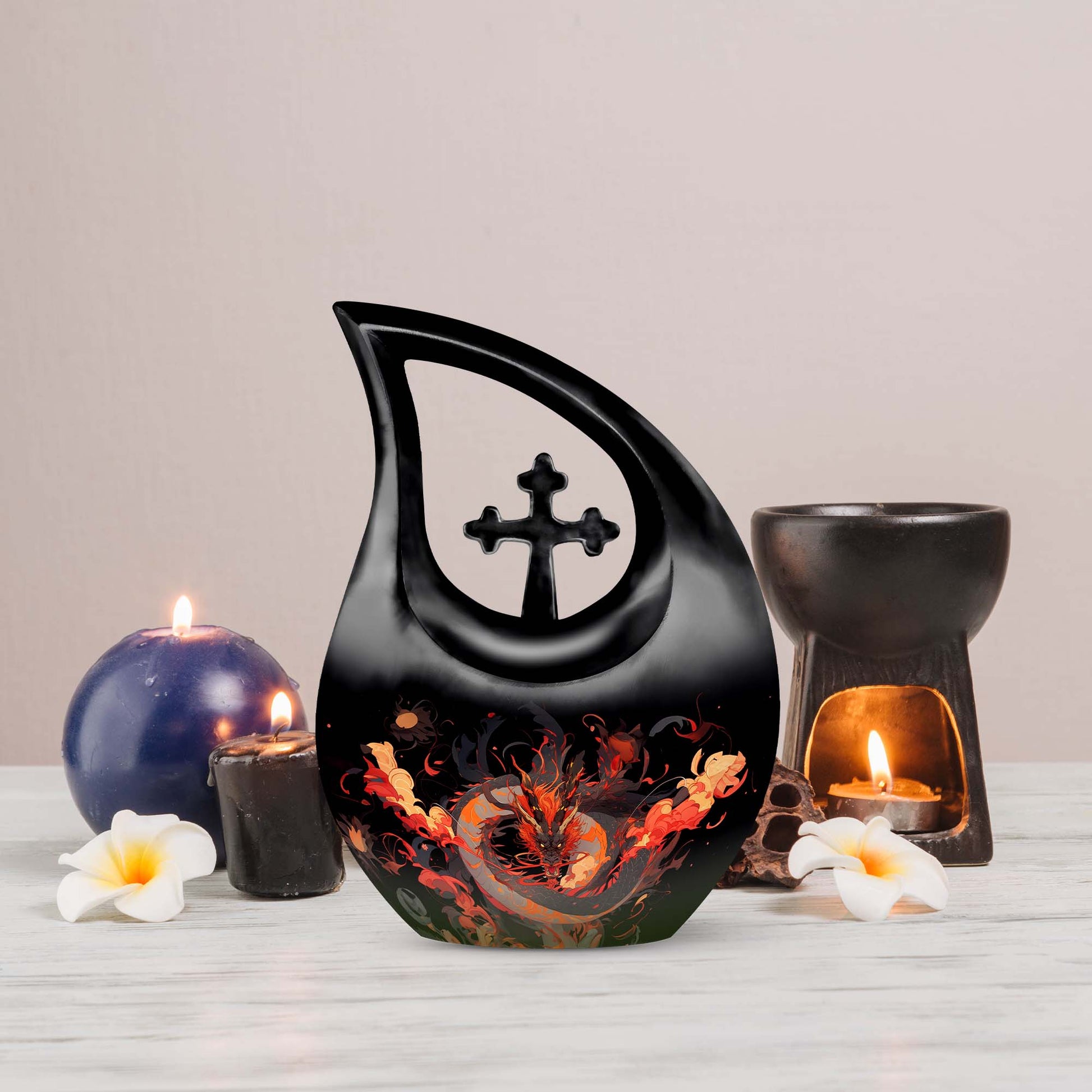 The Fire Dragon Memorial Cremation Urn provides a powerful and comforting way to honor the life of someone deeply cherished. Its fierce yet graceful design symbolizes courage, renewal, and everlasting protection—making it a meaningful choice for urns for ashes adult female, urns for adult female small, and families seeking a respectful urn for human ashes adult male.