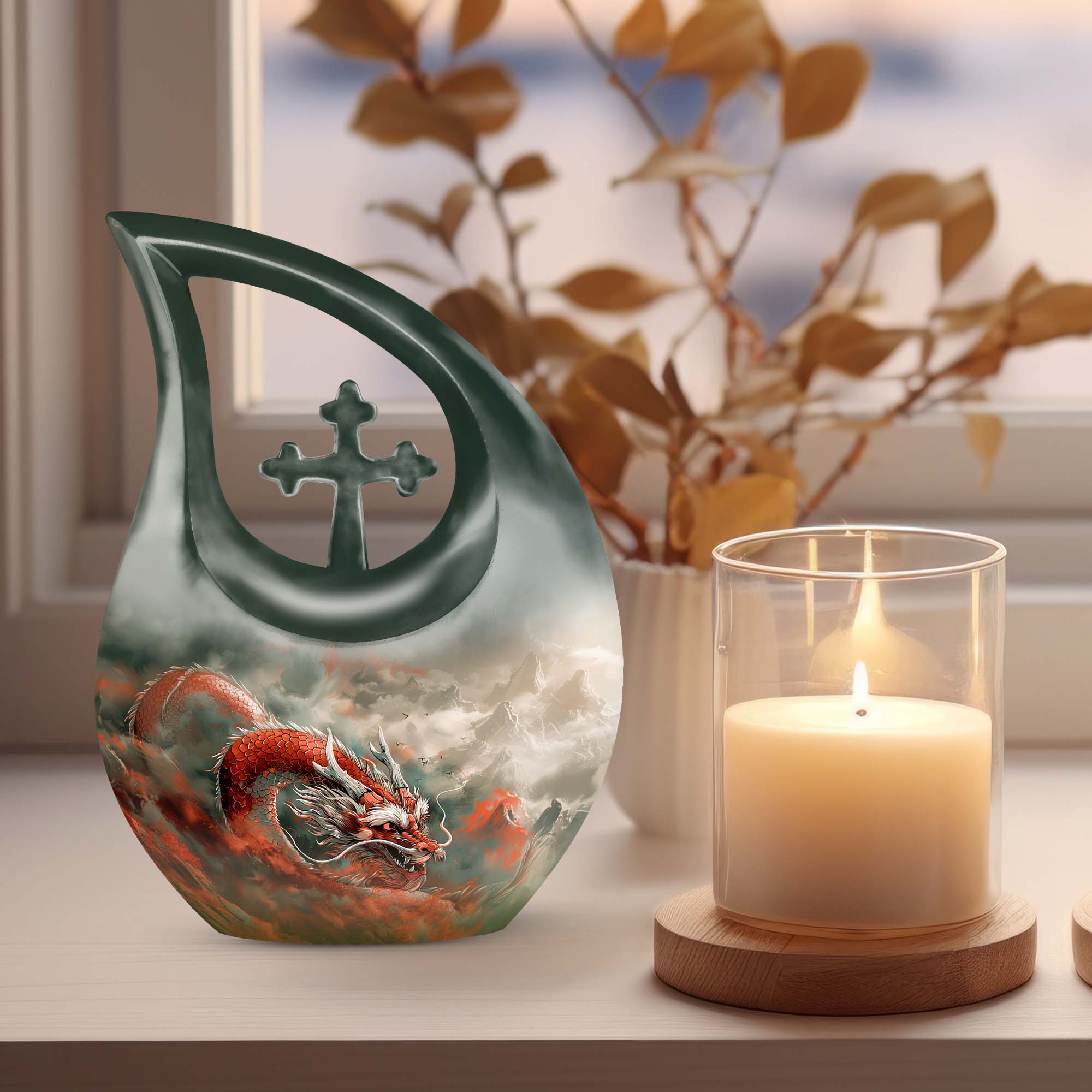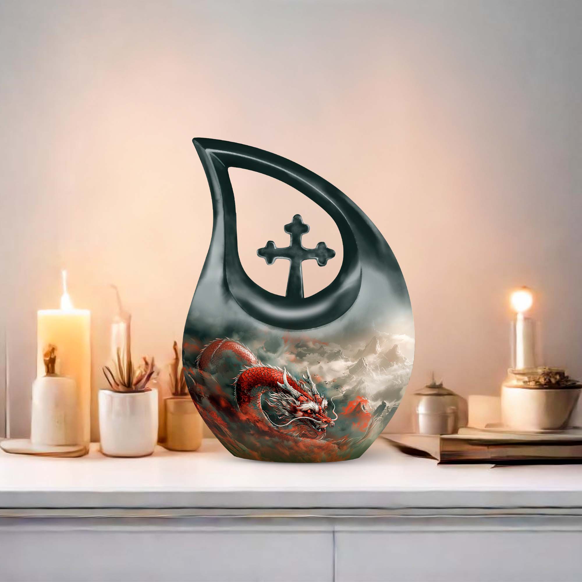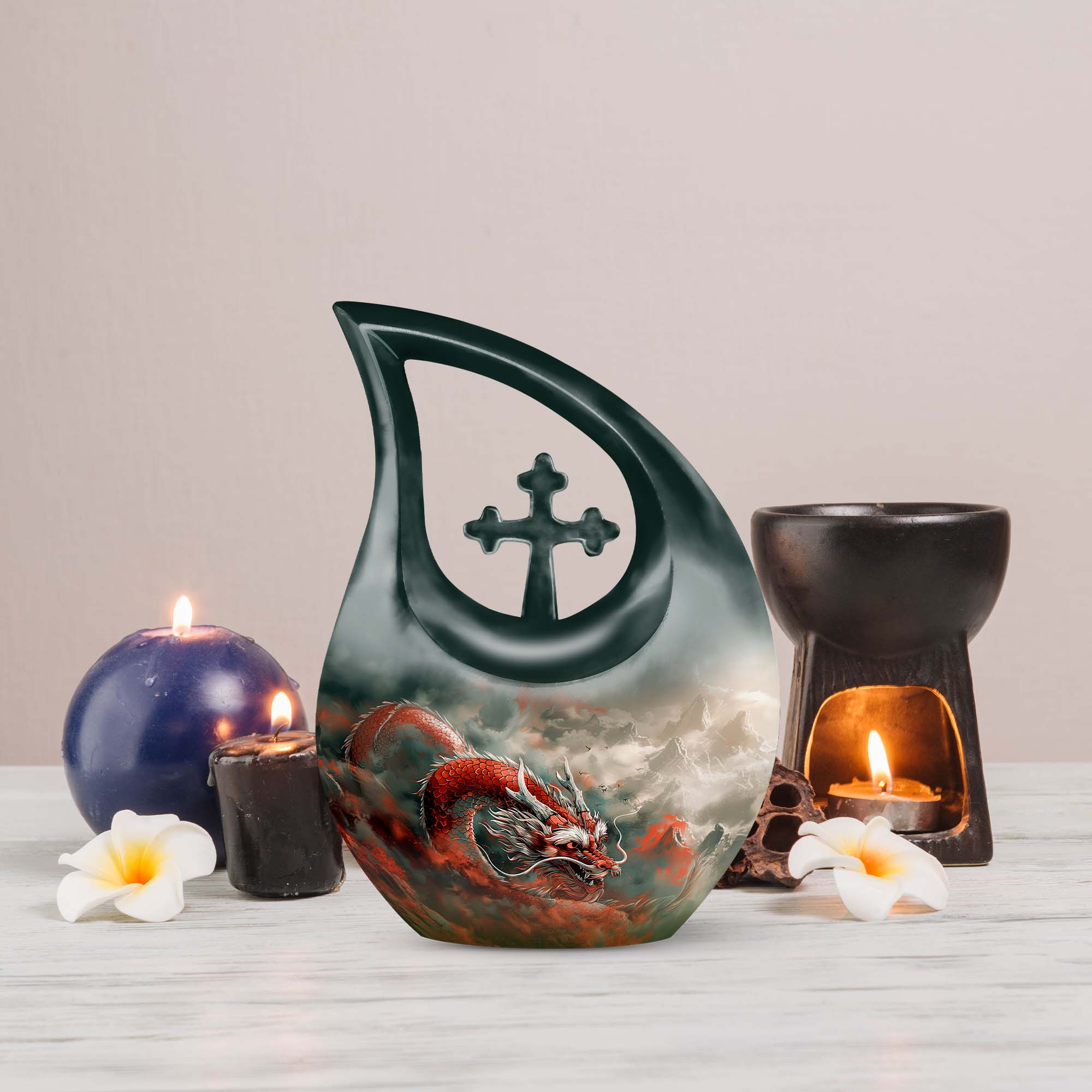 The Red Mythical Dragon Cremation Urn offers a bold and symbolic tribute for honoring a cherished life. Its deep crimson color and fierce dragon artwork represent strength, protection, and eternal remembrance—making it an ideal choice for urns for adults men or a meaningful burial urn urn for ashes for women.