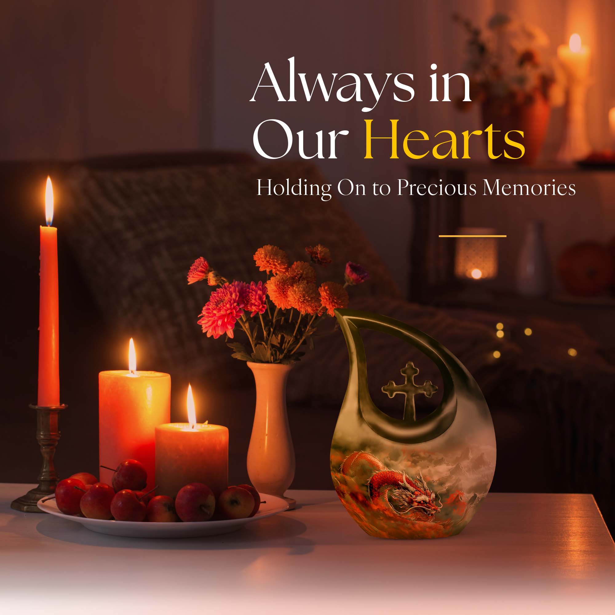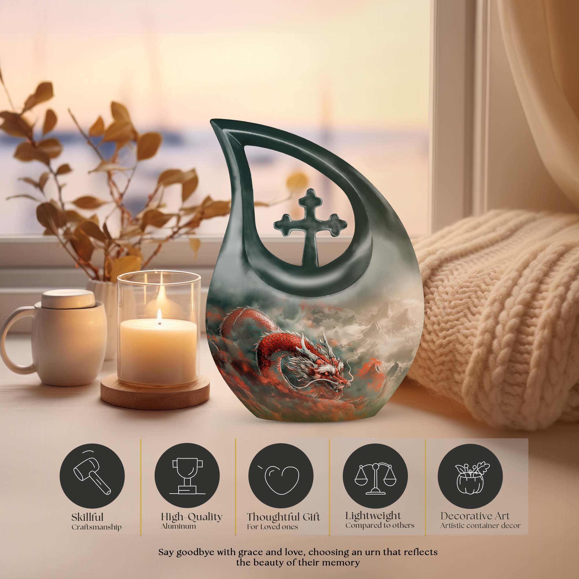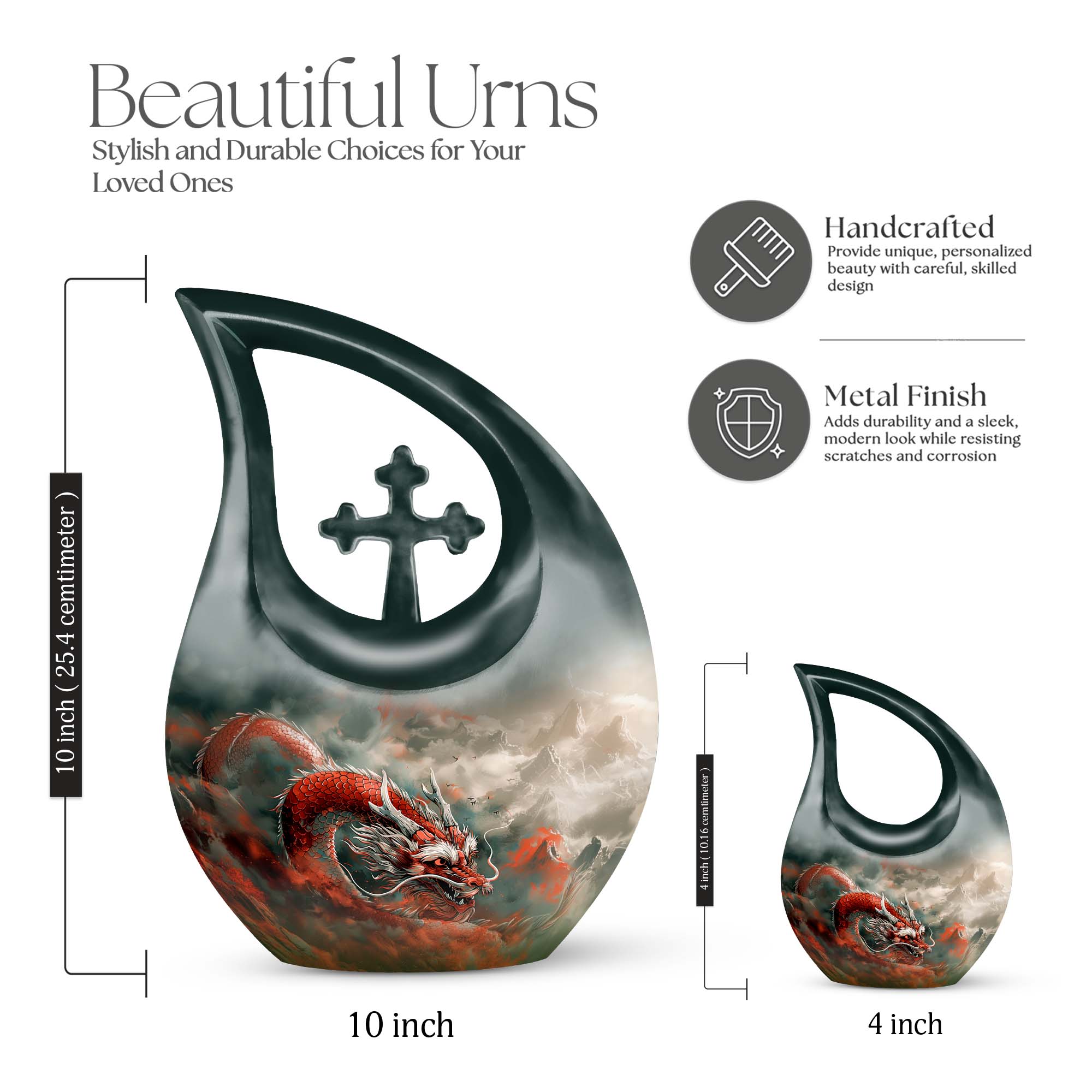 The Red Mythical Dragon Cremation Urn offers a bold and symbolic tribute for honoring a cherished life. Its deep crimson color and fierce dragon artwork represent strength, protection, and eternal remembrance—making it an ideal choice for urns for adults men or a meaningful burial urn urn for ashes for women.