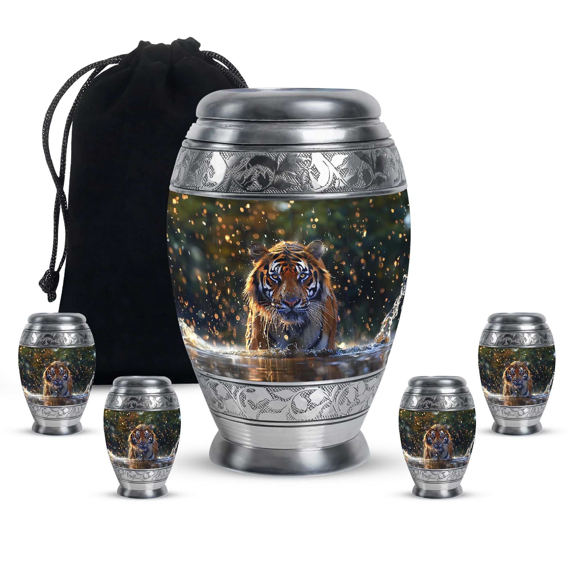Cherish and honor the memory of your loved one with this beautifully designed Tiger Cremation Urn. Thoughtfully created to provide a dignified resting place, this urn serves as a respectful tribute, making it ideal for urns for human ashes large adult or a funeral urn for human ashes adult.