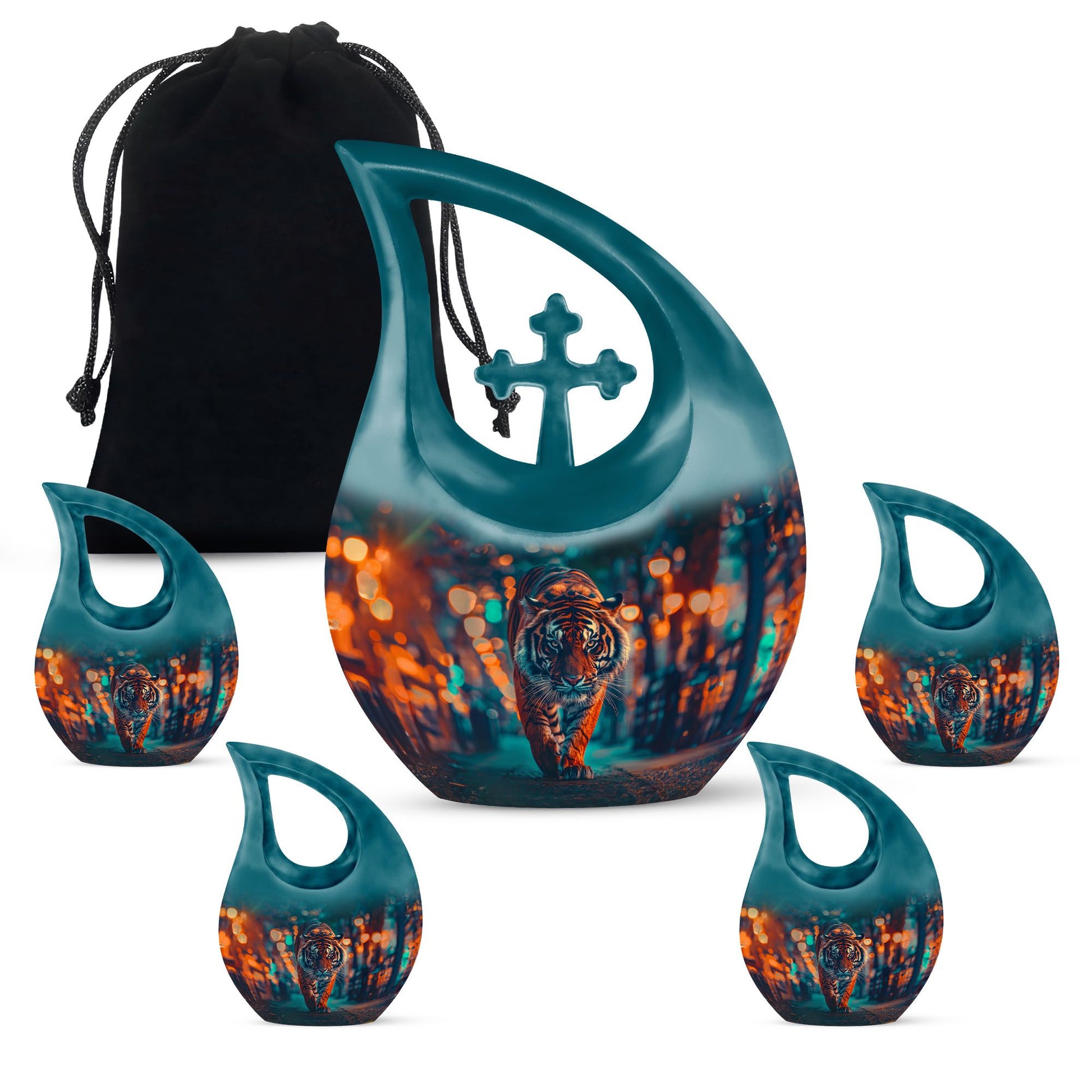 Crafted from premium-quality aluminum, this urn reflects durability and artistry in every detail. Unlike ordinary metal urns, its wilderness-inspired tiger design symbolizes power and protection. With a secure screw-top lid, this cremation vessel ensures ashes are kept safe. Whether chosen as one of your perfect memorials urns for ashes or used alongside keepsake cremation urns for family members, it offers timeless elegance and functionality.