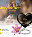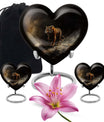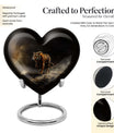Bereaved loved ones can honor the memory of deceased family members with our exquisite tiger urn. This larger-than-life 10-inch funeral cremation urn is meticulously crafted from high-quality aluminium and designed for women. It stands out with its heart-shaped theme adorned with delicate flowers, which uniquely represents an eternal bond of love and tranquillity. The urn has a capacity of 200 cubic inches, making it ideal for accommodating adult ashes securely. Our package also includes a soft velvet pouch for safeguarding the contained ashes during transit. The urn boasts a lightweight design, weighing only 3.3 pounds, that makes it easy to move or transport, if necessary. To add a personal touch, buyers are offered the option to personalize the urn with engraved names. This urn serves as a poignant symbol of remembrance, providing a fitting resting place for your beloved. Our tiger urn is not just a funeral cremation urn, but rather a memorial urn that keeps your loved one close to you even after their passing. Kindly note that the keyword phrases for the urn include 'memorial urns' and 'memorial large urns for ashes'. Other relevant search terms include 'ash urn', 'urn shaped' and 'funeral urns for adult ashes'.