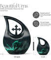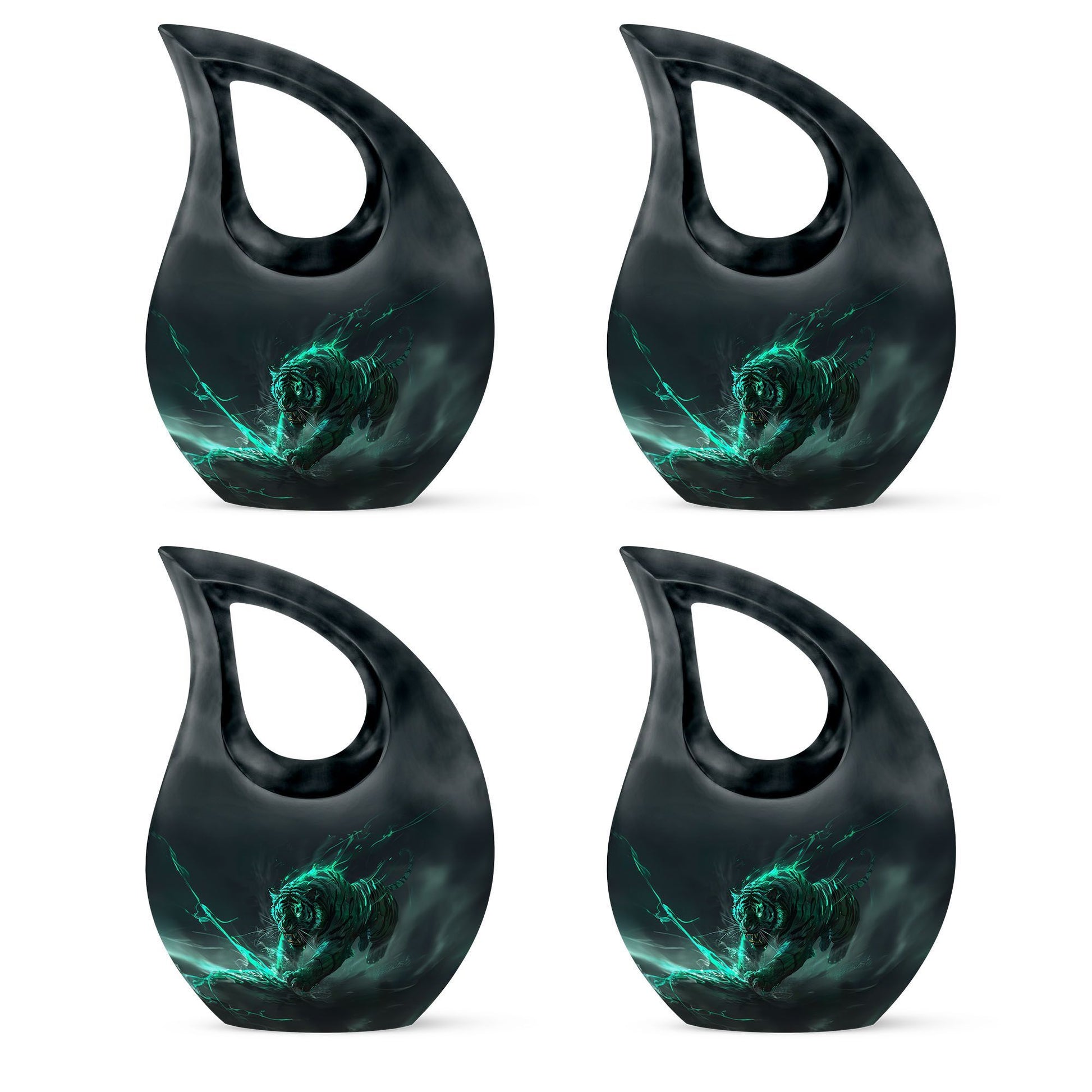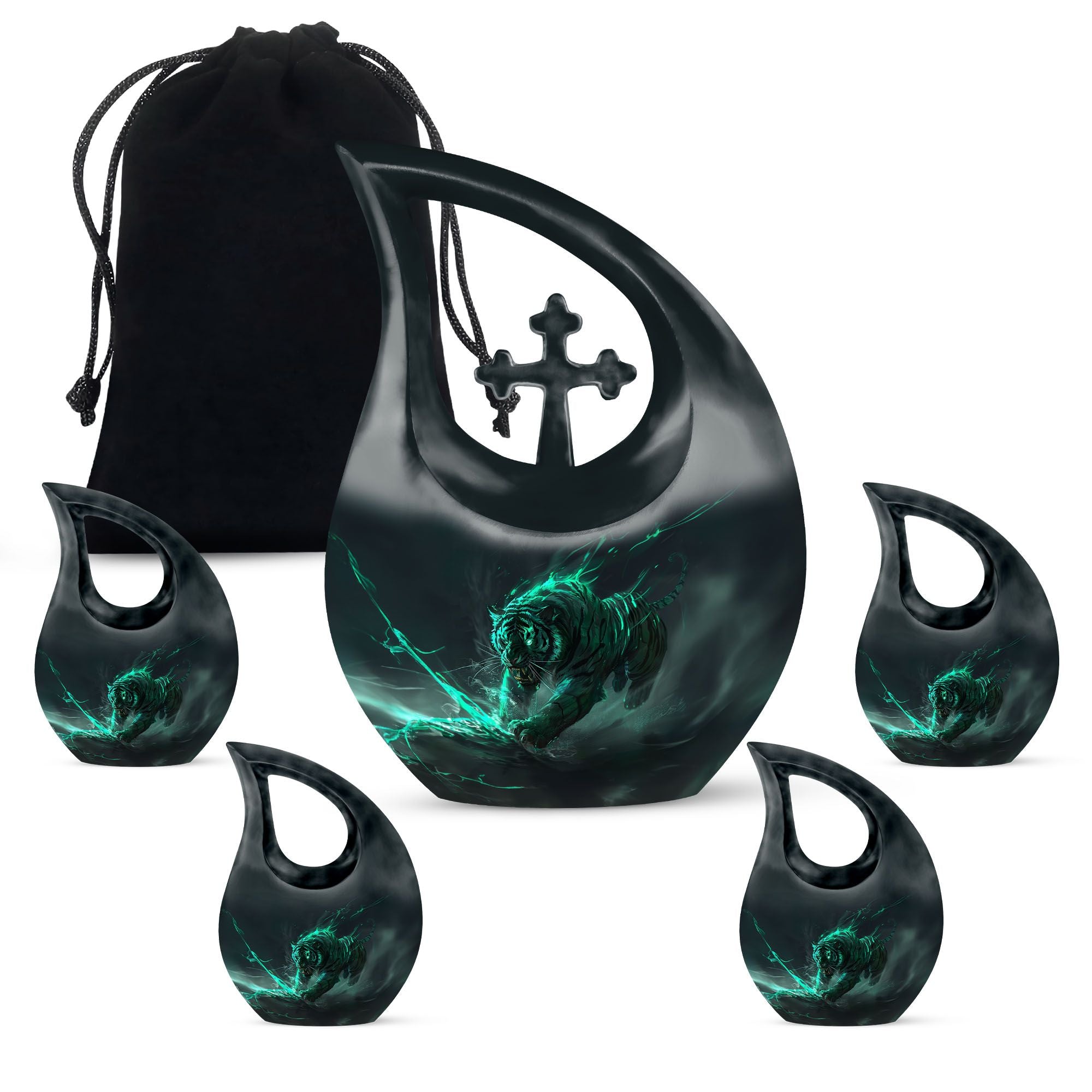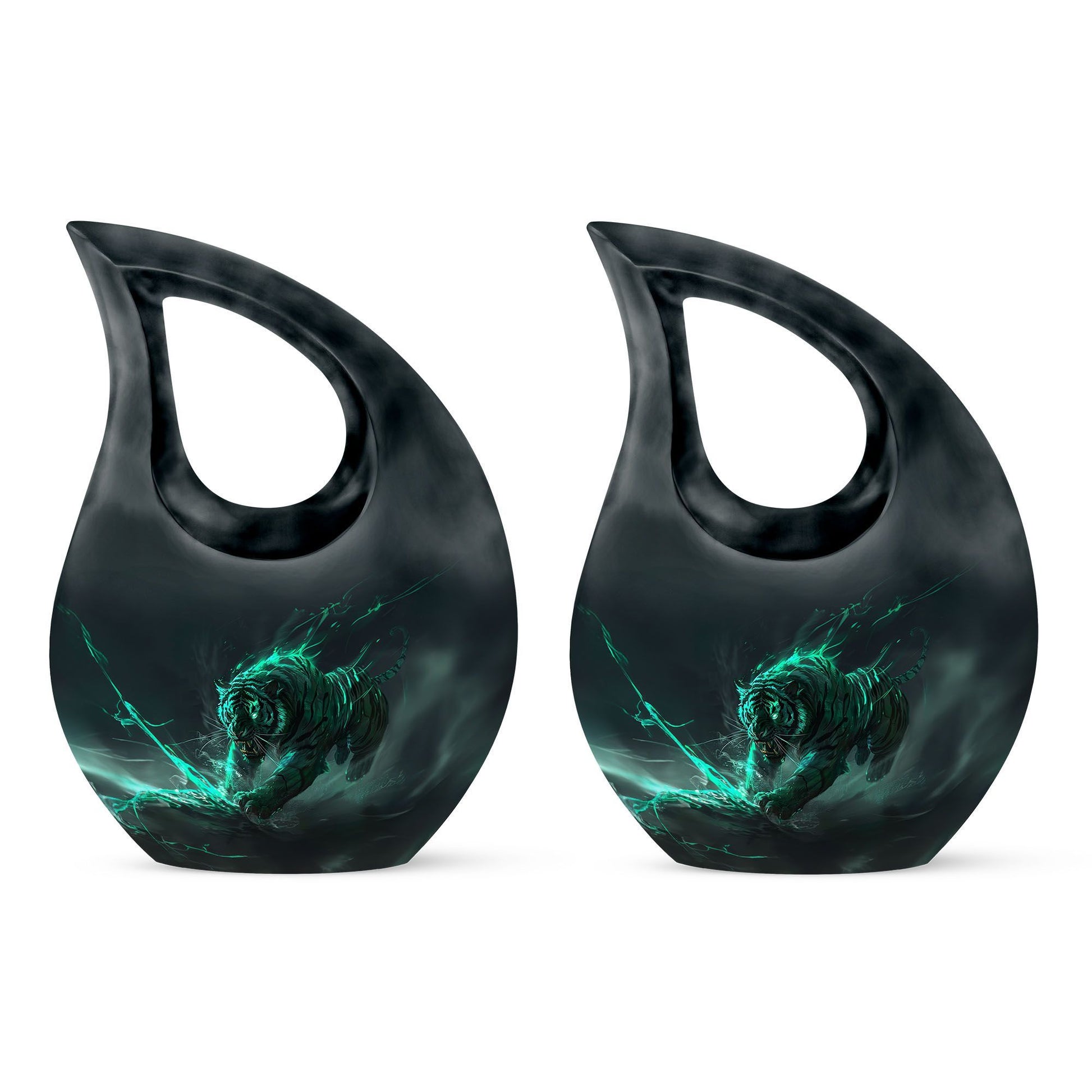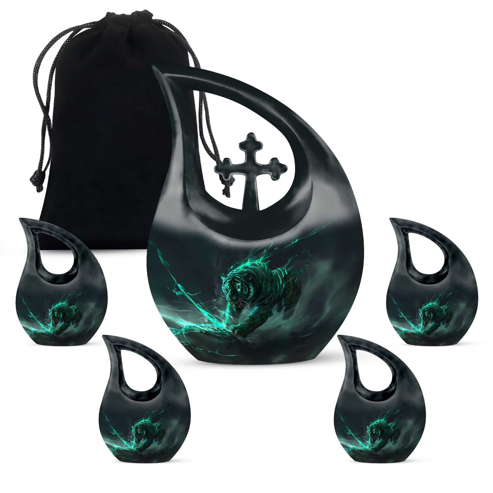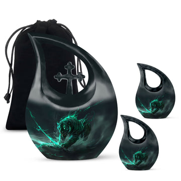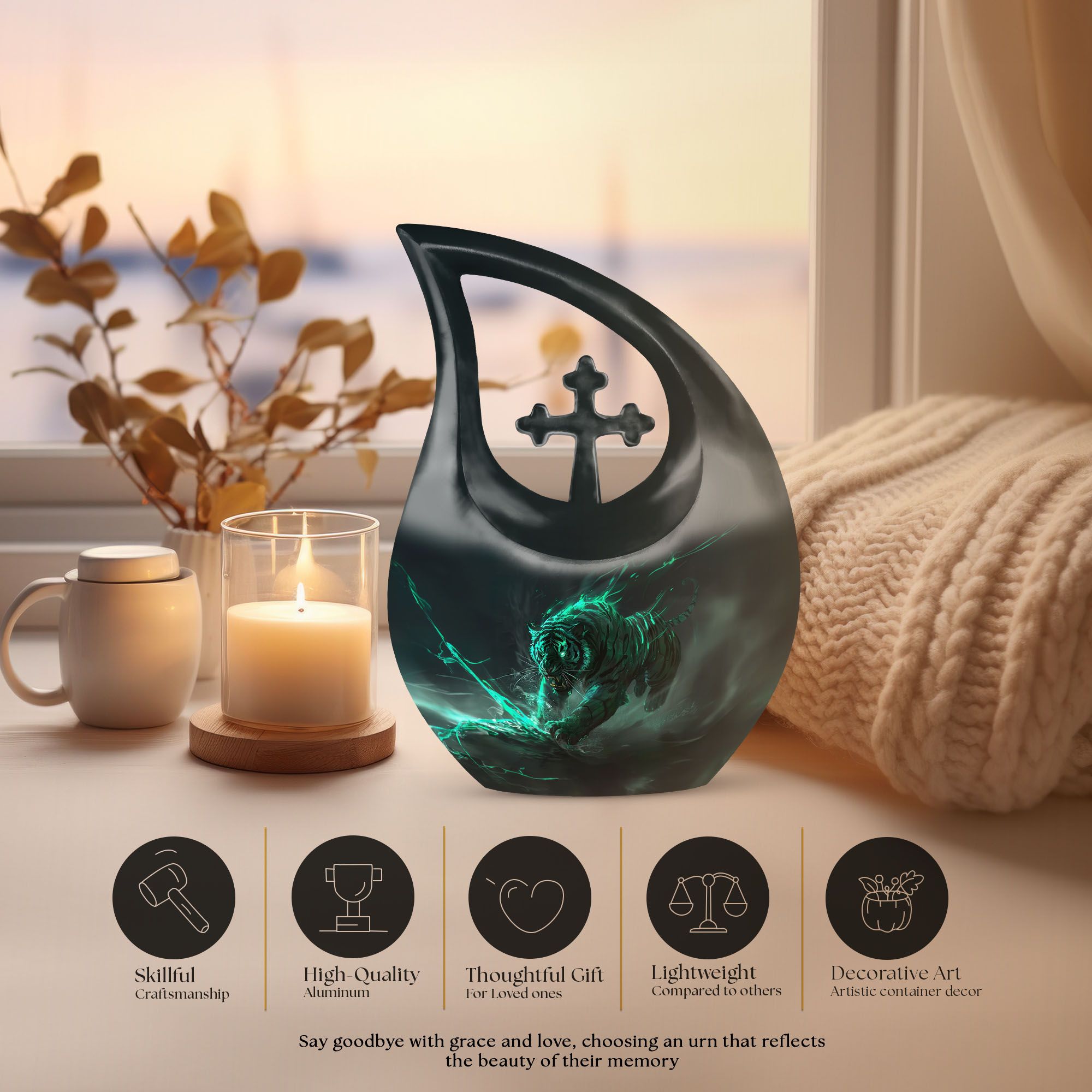 Honor a beloved dad with our exquisite Tiger urn, a uniquely designed memorial urn for the keepsake of your cherished one's ashes. This large urn is meticulously crafted from high-quality aluminum, ensuring sturdy, durable containment designed to last. Measuring 10 inches in height and weighing 3.3 pounds, this urn provides a capacity of 200 cubic inches; perfectly suitable for adults and seniors. The package comes with a delicate velvet pouch to securely house the ashes inside the urn. Special attention has been paid to the theme of the urn, depicting a compelling Tiger symbol, adding an emotional, symbolic touch. The urn allows for personalization, offering you the opportunity to engrave the names of your loved one. Our Cross Drop urn stands apart from conventional cremation containers, miniature urns, box urns for human ashes and small urns, offering a unique tribute to the life lived. Please note the urn design does not accommodate a 'Cross Drop' feature.