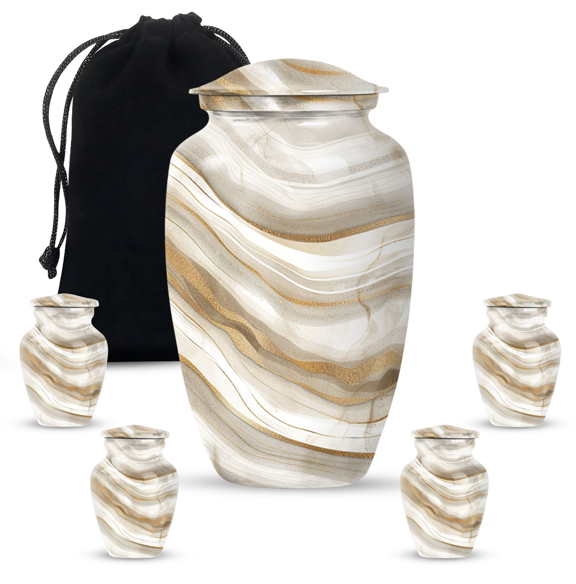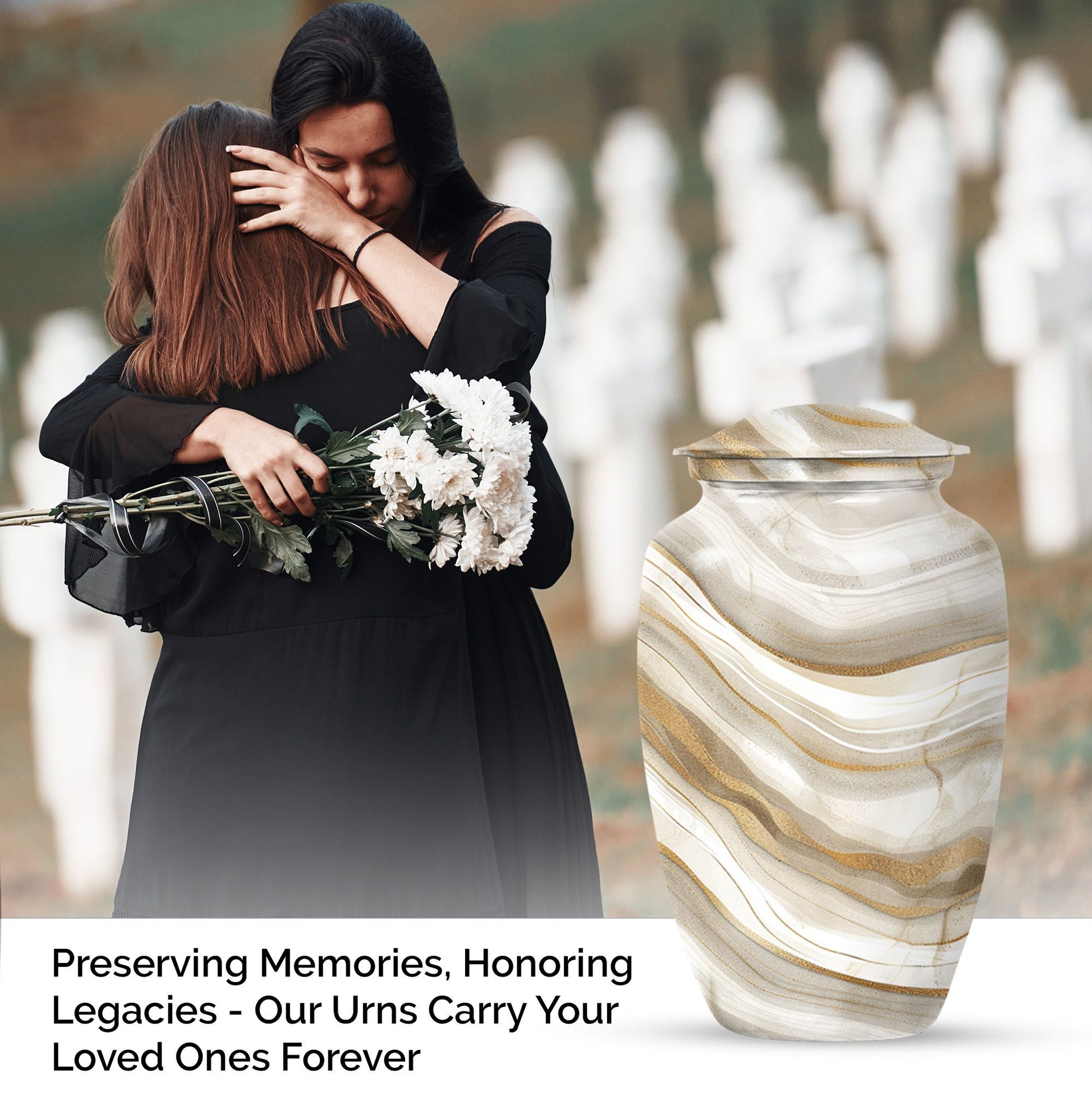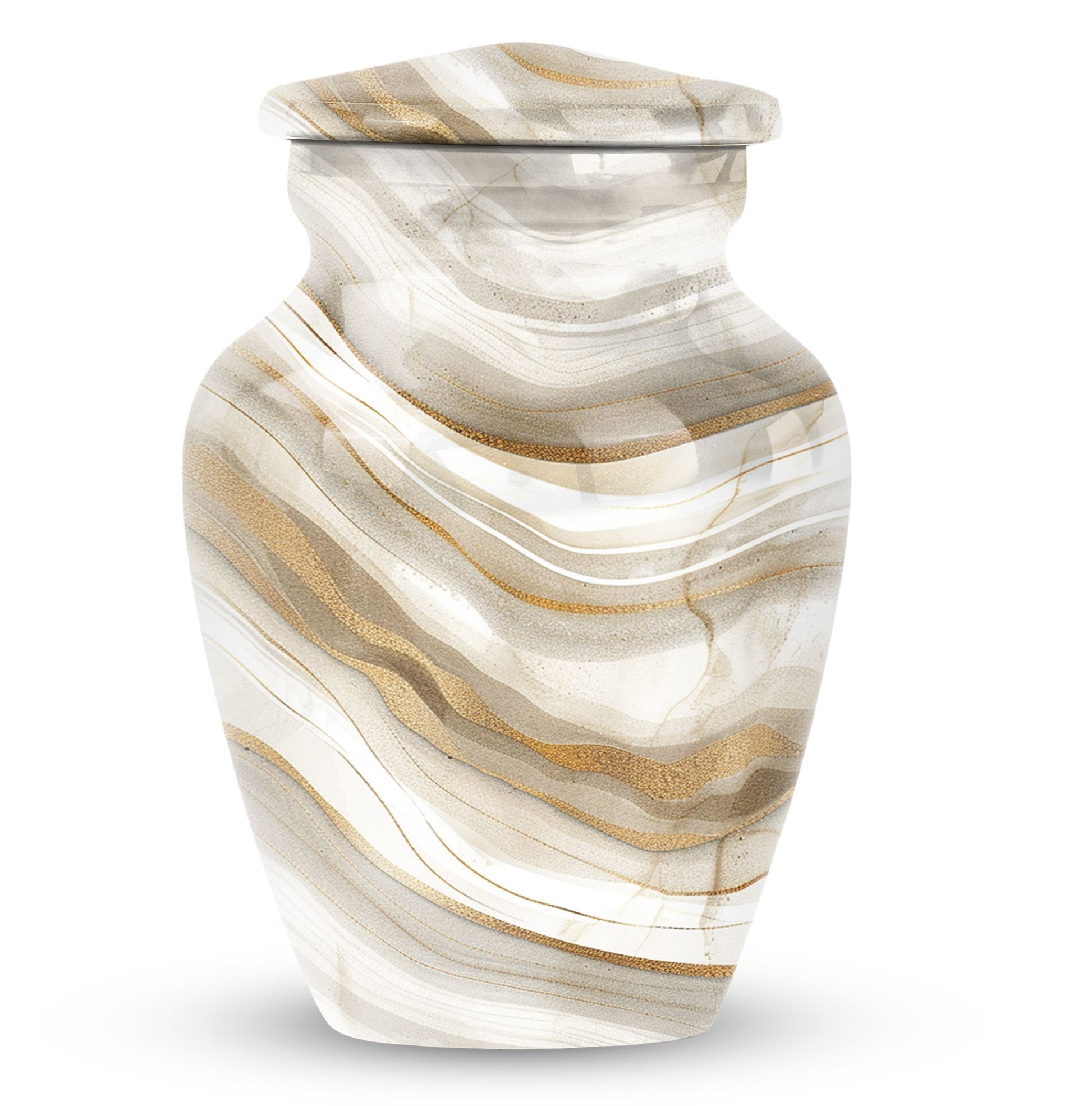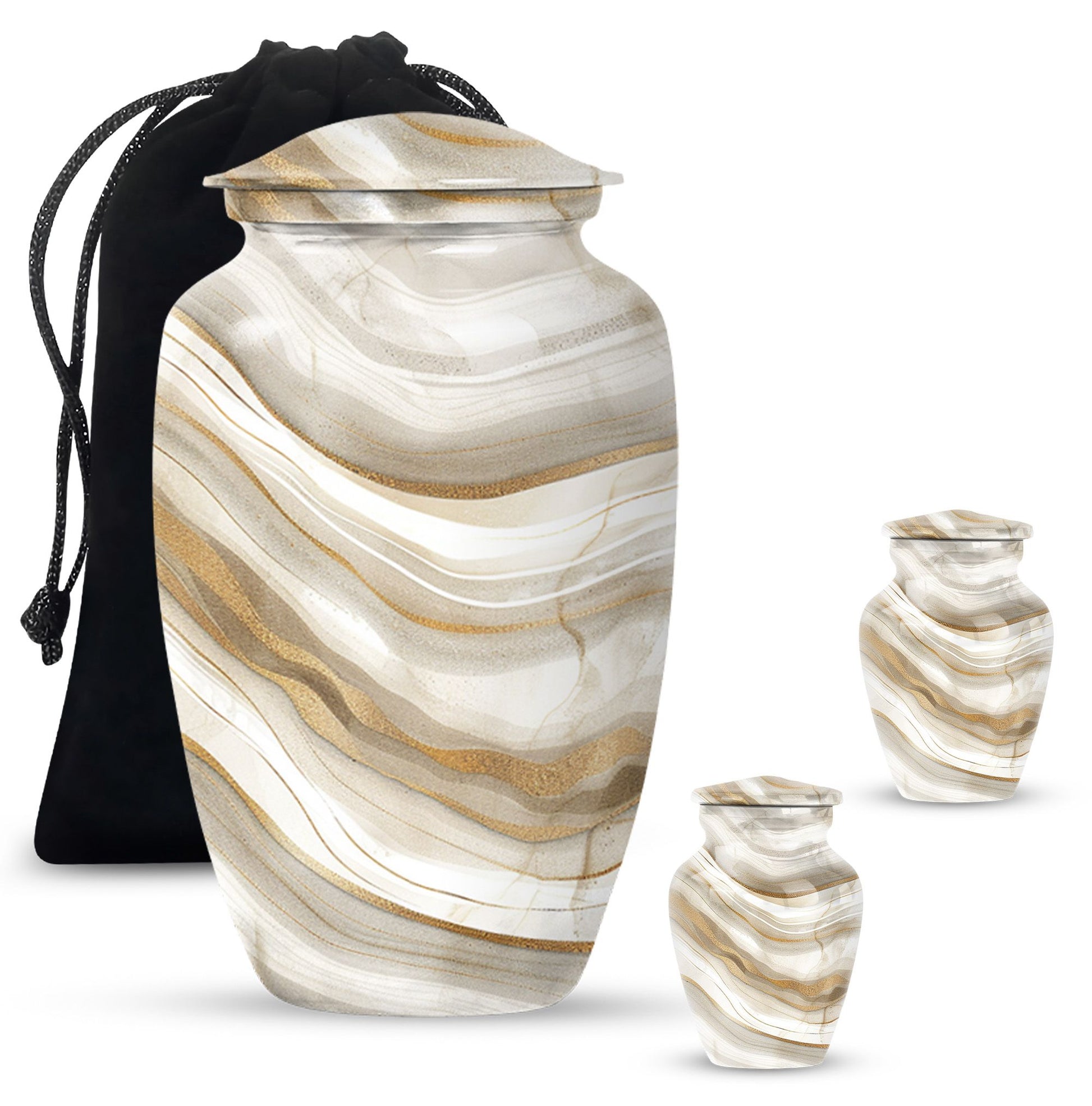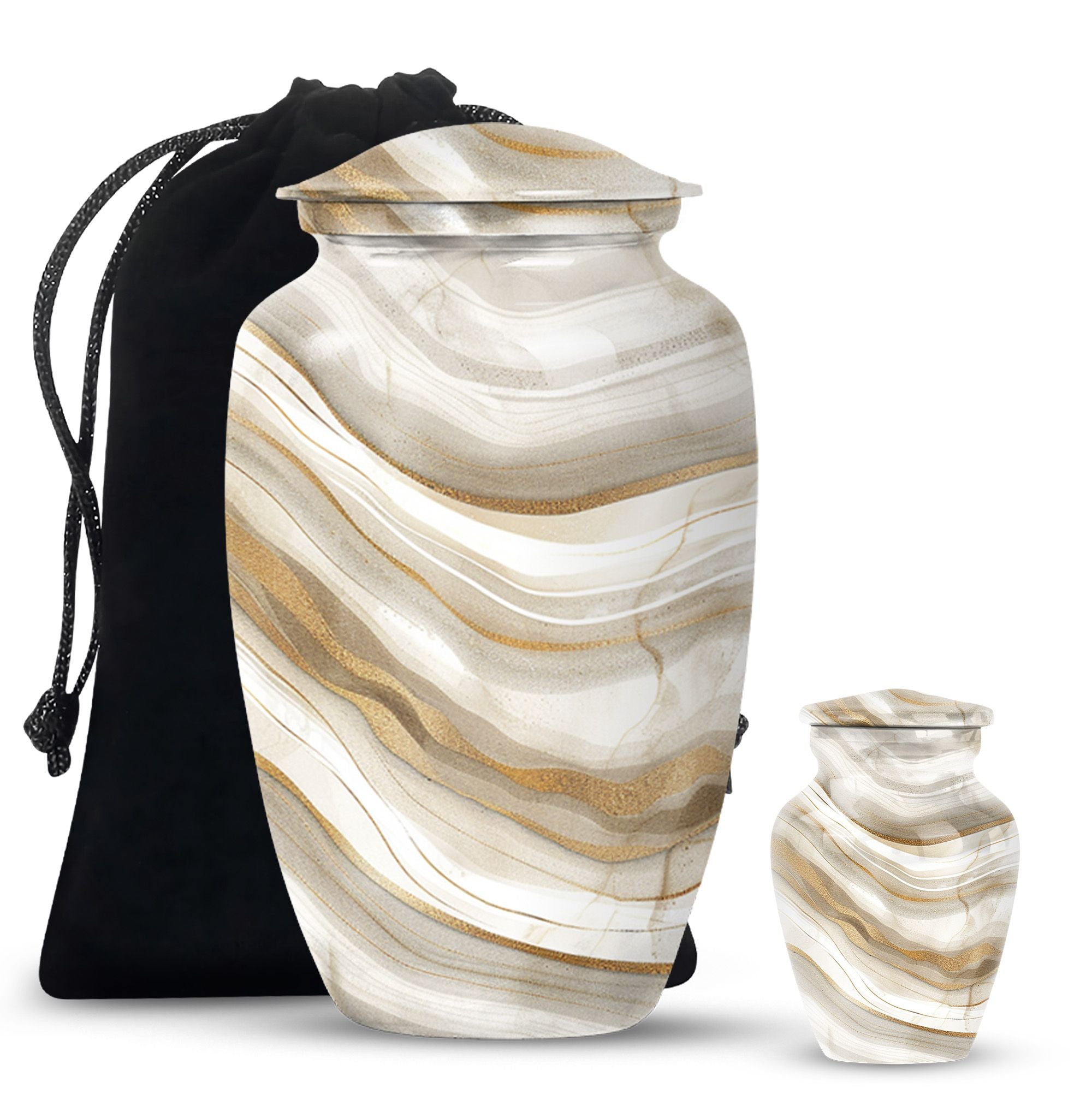 Express your reverence and honor your loved ones with this Abstract Urn, a truly unique tribute. This memorial urn for women ashes stands proud at 10 inches tall, with a robust weight of 3.3 pounds, and an ample capacity of 200 cubic inches. Every detail is meticulously crafted from top-quality Aluminium, making it both durable and timeless. The urn is not merely a container but a classic symbol of remembrance that radiates an aura of love and respect. The package comes complete with a velvet pouch, specifically designed for the containment of ashes, maintaining dignity and respect at all times. What truly sets this Large Urn apart is the opportunity for customization. Personalize this urn with engraved names, helping transform it into a unique memorial. Keywords include women urns, Urn for Ground Burial, urns for human ashes, and metal urns for adult female ashes. Cherish the memories with our Abstract Urn, a memorial urn tailored for individuals who appreciate sophistication and respect tradition.