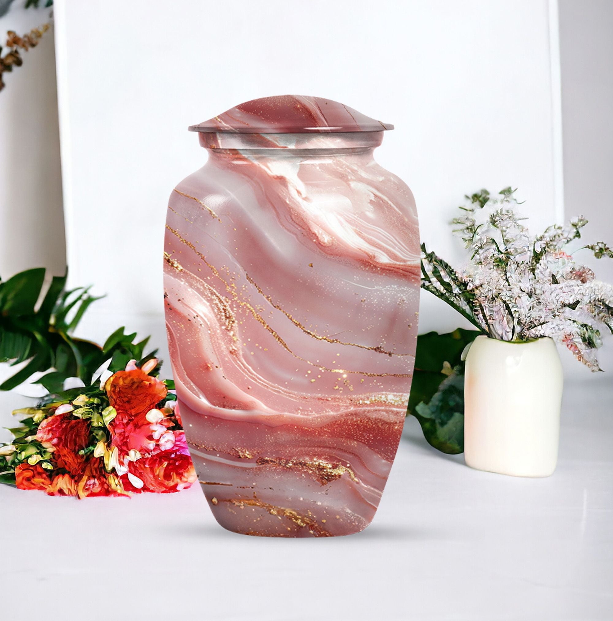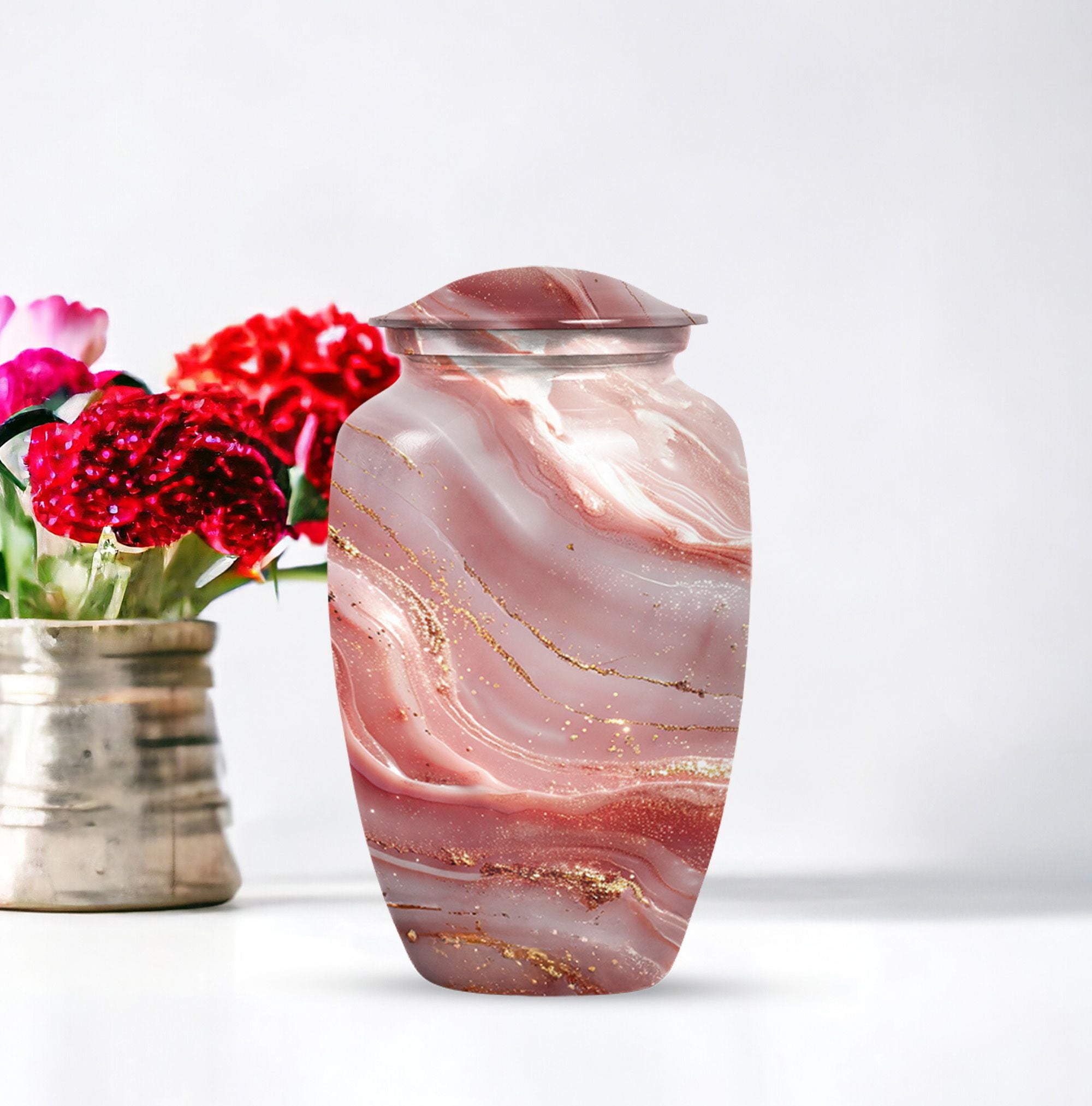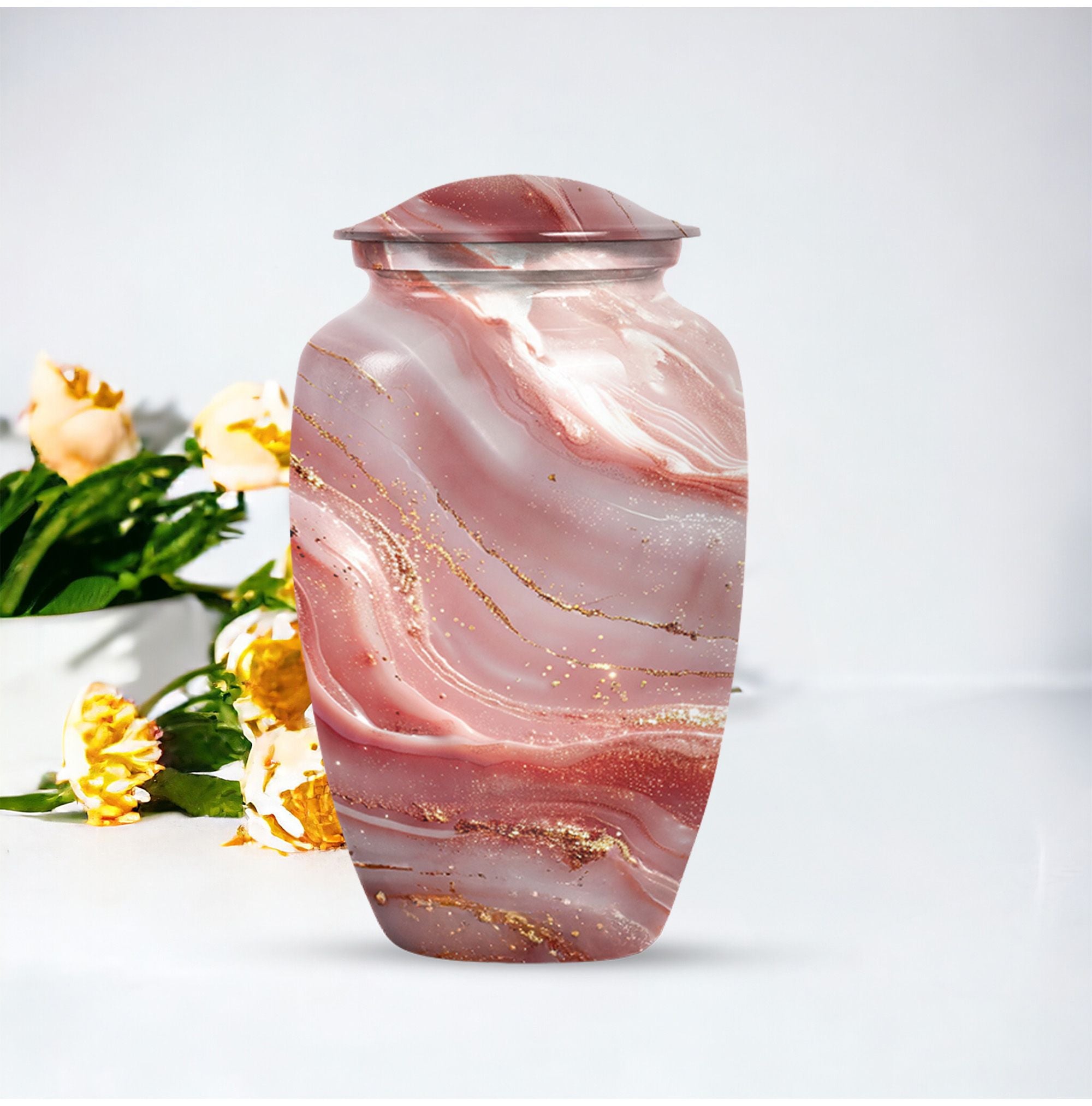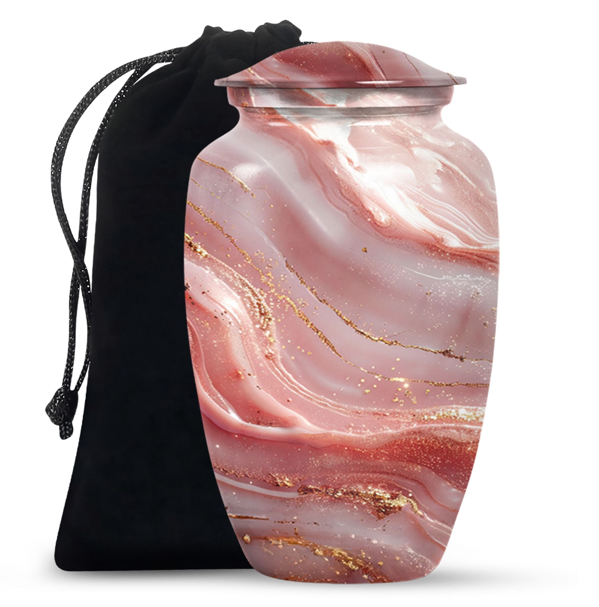 Brighten a loved one's final resting place with our mesmerising 'Colourful Swirl Urn', a prized item within our range of 'memorial ash urns'. Crafted with impeccable precision, this 10-inch 'Large urn', weighing a solid 3.3 pounds, offers an ample capacity of 200 cubic inches, sufficient to hold the ashes of an adult. This urn's abstract theme speaks volumes, adding a touch of uniqueness, while its aluminium composition serves for longevity and sturdiness. The urn comes with a plush velvet pouch, designed for the secure containment of ashes. As we understand the profound importance of personal, heartfelt memorials, this urn can be personalized with names engraved on it, allowing for a more significant and individualized tribute. As a 'cremation urn', it is a seamless blend of elegance and sentiment. Keywords to search for this product include 'Funeral urn for men's ashes', 'adult ashes men', and 'Elegant urns.' With this purchase, create an eternally shining memory for a dearly departed loved one.