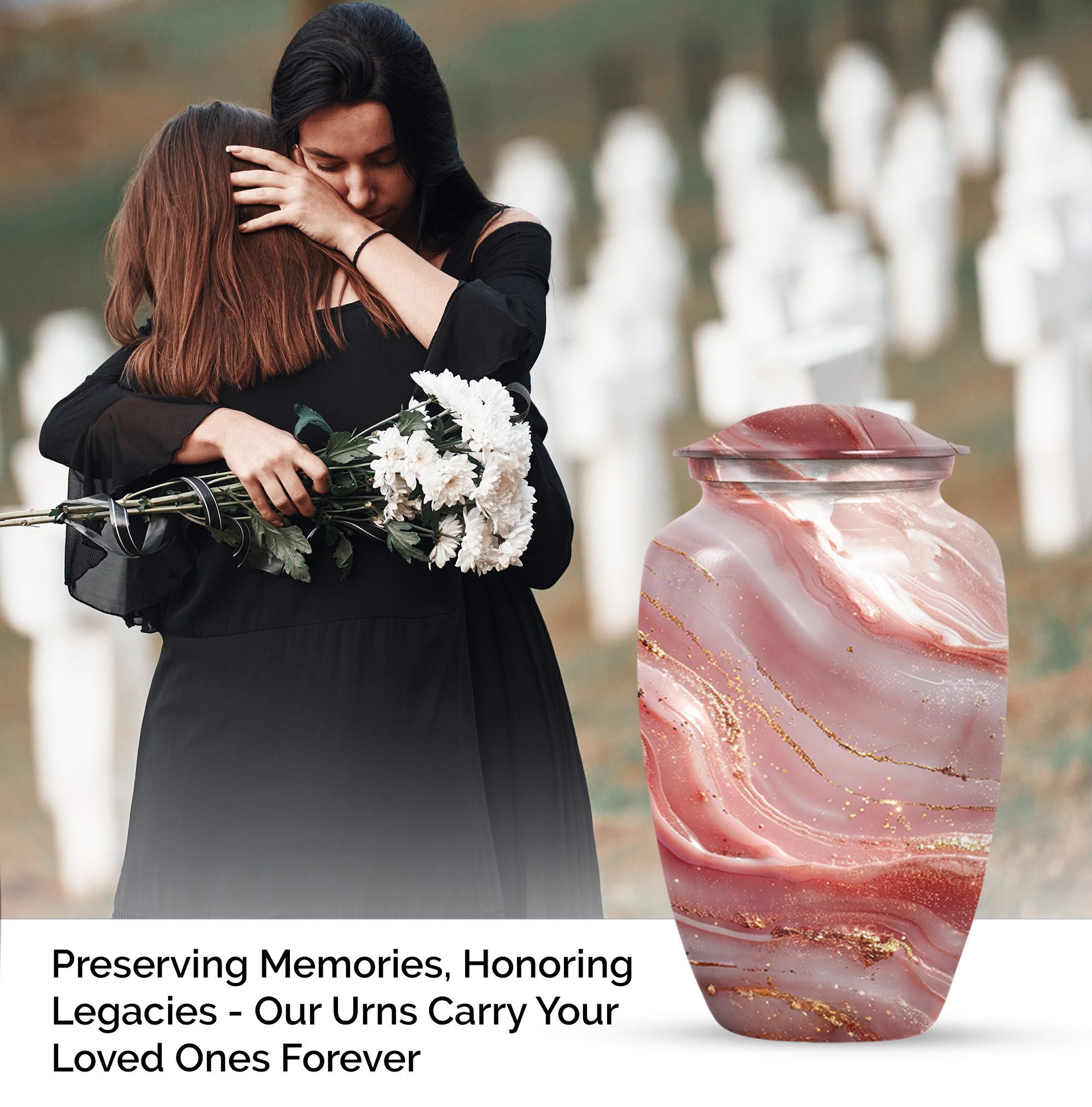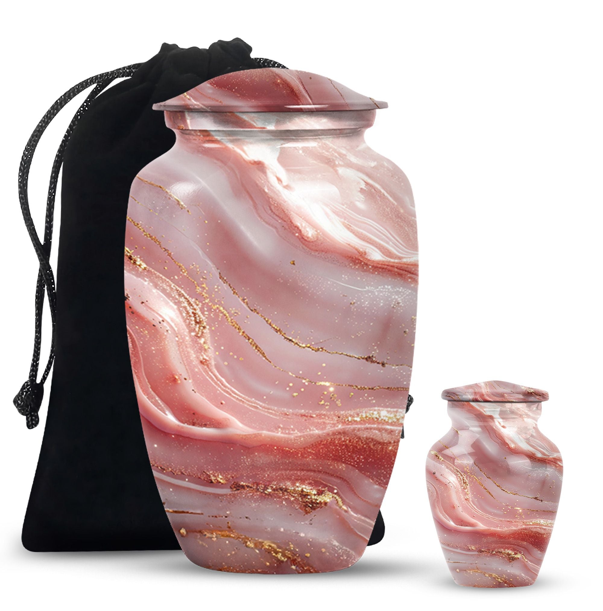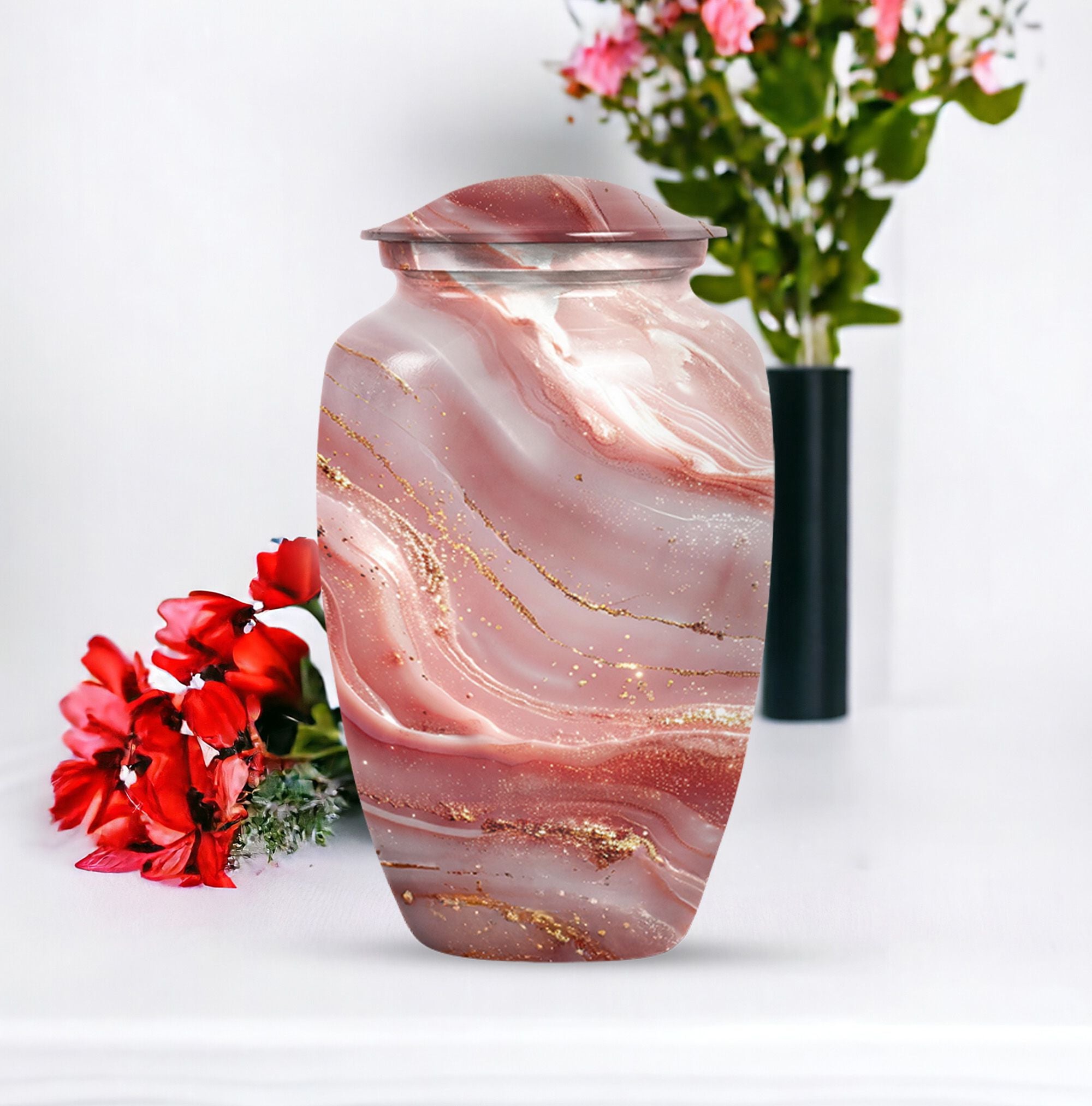 Brighten a loved one's final resting place with our mesmerising 'Colourful Swirl Urn', a prized item within our range of 'memorial ash urns'. Crafted with impeccable precision, this 10-inch 'Large urn', weighing a solid 3.3 pounds, offers an ample capacity of 200 cubic inches, sufficient to hold the ashes of an adult. This urn's abstract theme speaks volumes, adding a touch of uniqueness, while its aluminium composition serves for longevity and sturdiness. The urn comes with a plush velvet pouch, designed for the secure containment of ashes. As we understand the profound importance of personal, heartfelt memorials, this urn can be personalized with names engraved on it, allowing for a more significant and individualized tribute. As a 'cremation urn', it is a seamless blend of elegance and sentiment. Keywords to search for this product include 'Funeral urn for men's ashes', 'adult ashes men', and 'Elegant urns.' With this purchase, create an eternally shining memory for a dearly departed loved one.