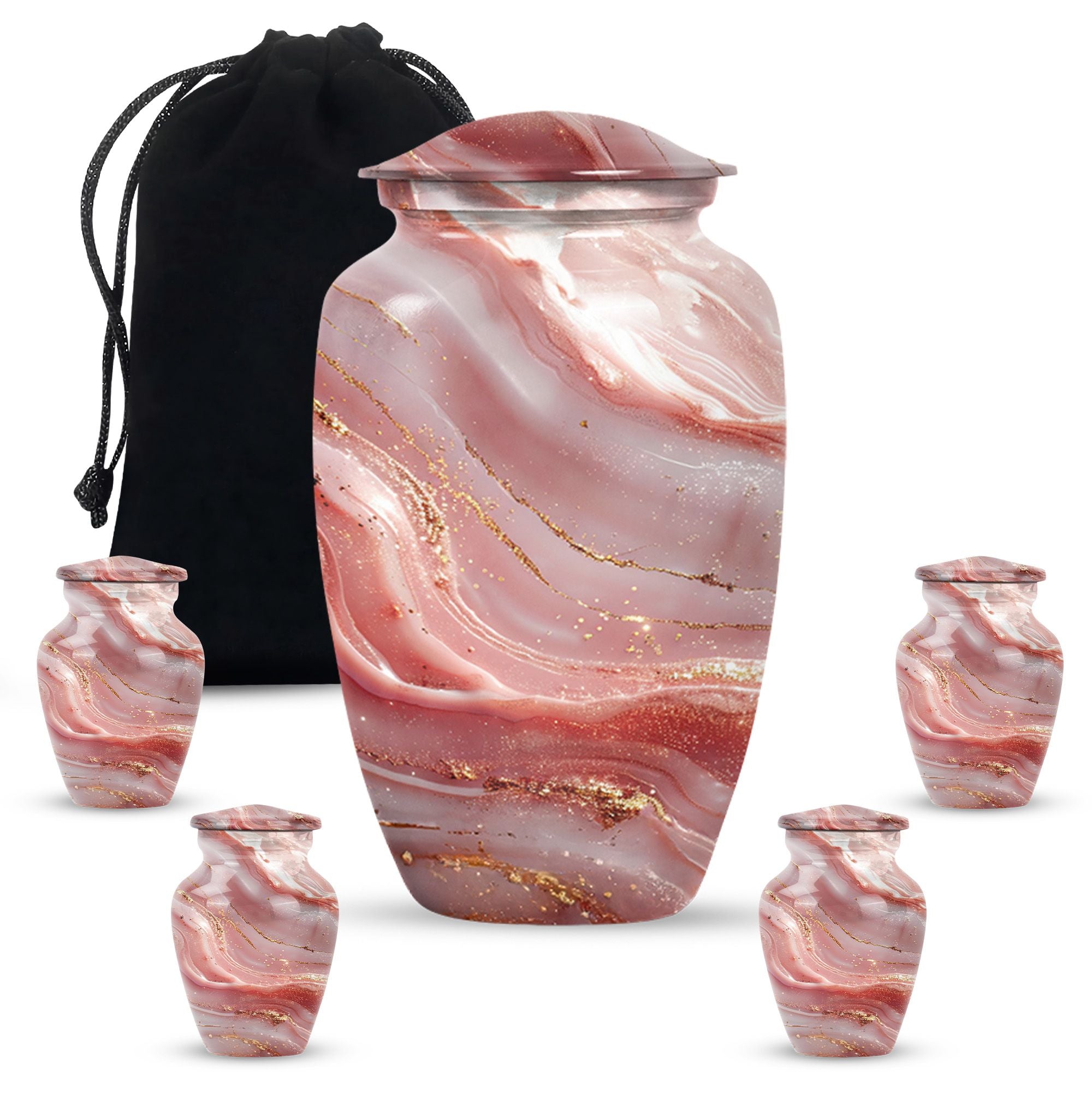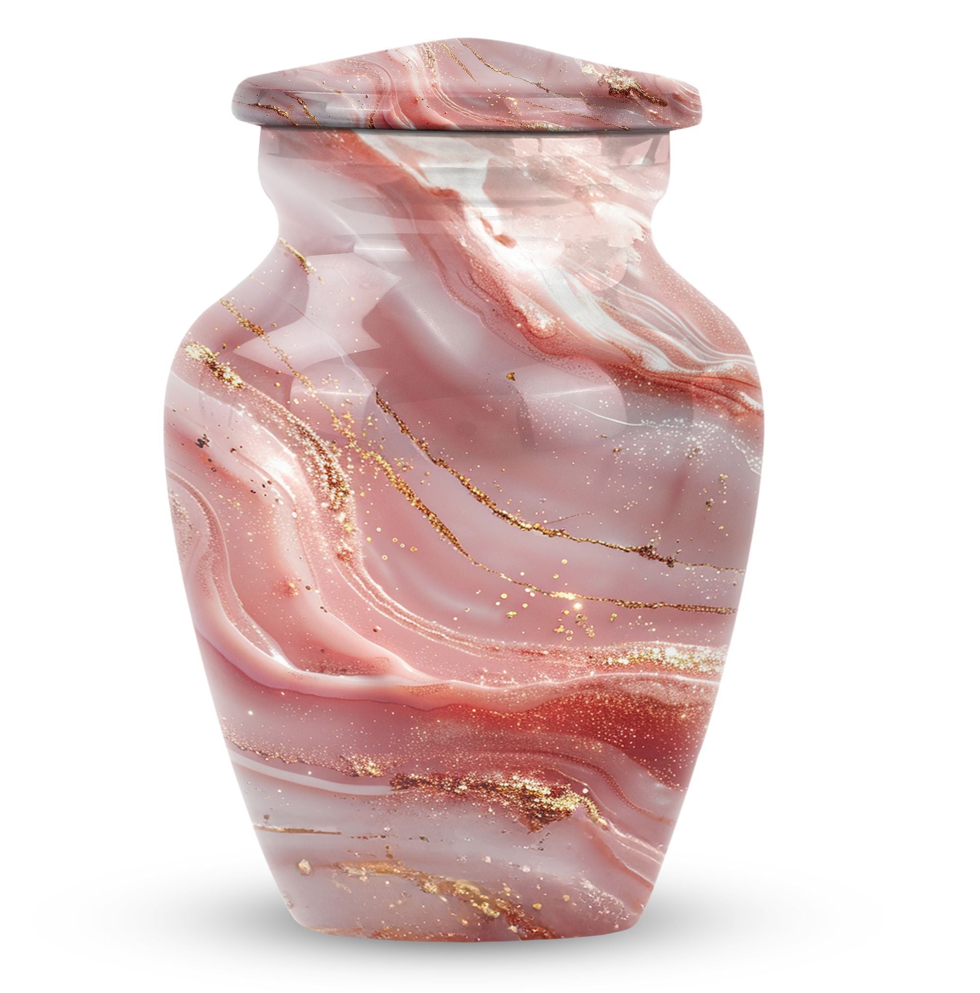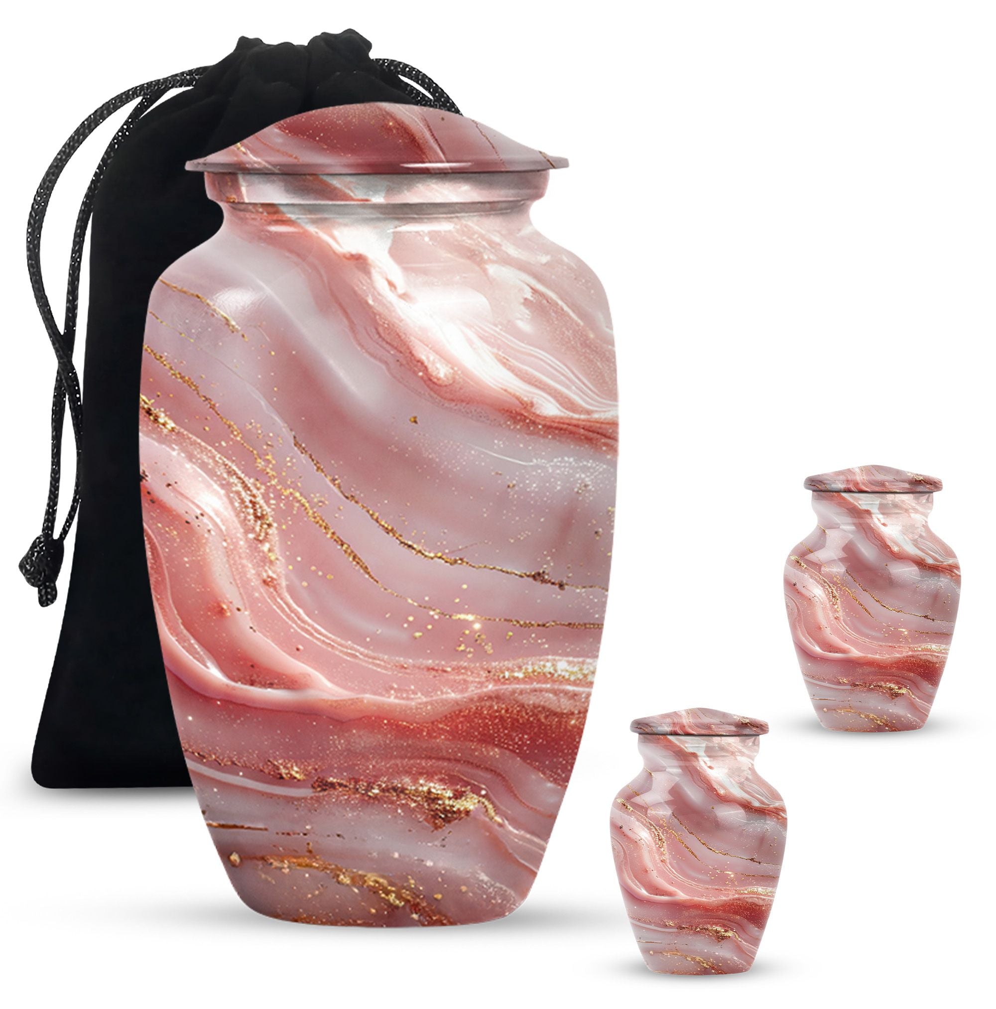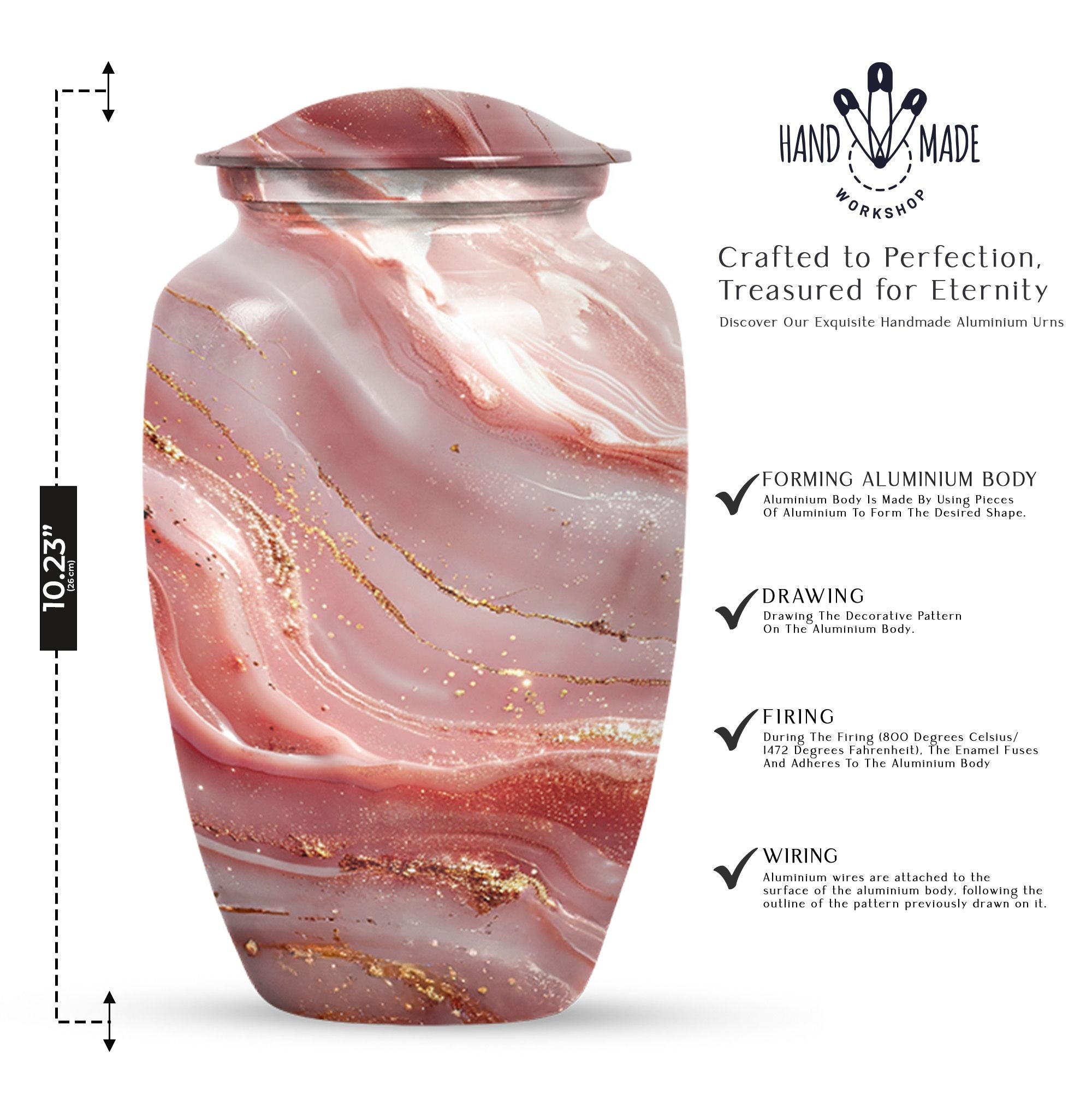 Brighten a loved one's final resting place with our mesmerising 'Colourful Swirl Urn', a prized item within our range of 'memorial ash urns'. Crafted with impeccable precision, this 10-inch 'Large urn', weighing a solid 3.3 pounds, offers an ample capacity of 200 cubic inches, sufficient to hold the ashes of an adult. This urn's abstract theme speaks volumes, adding a touch of uniqueness, while its aluminium composition serves for longevity and sturdiness. The urn comes with a plush velvet pouch, designed for the secure containment of ashes. As we understand the profound importance of personal, heartfelt memorials, this urn can be personalized with names engraved on it, allowing for a more significant and individualized tribute. As a 'cremation urn', it is a seamless blend of elegance and sentiment. Keywords to search for this product include 'Funeral urn for men's ashes', 'adult ashes men', and 'Elegant urns.' With this purchase, create an eternally shining memory for a dearly departed loved one.
