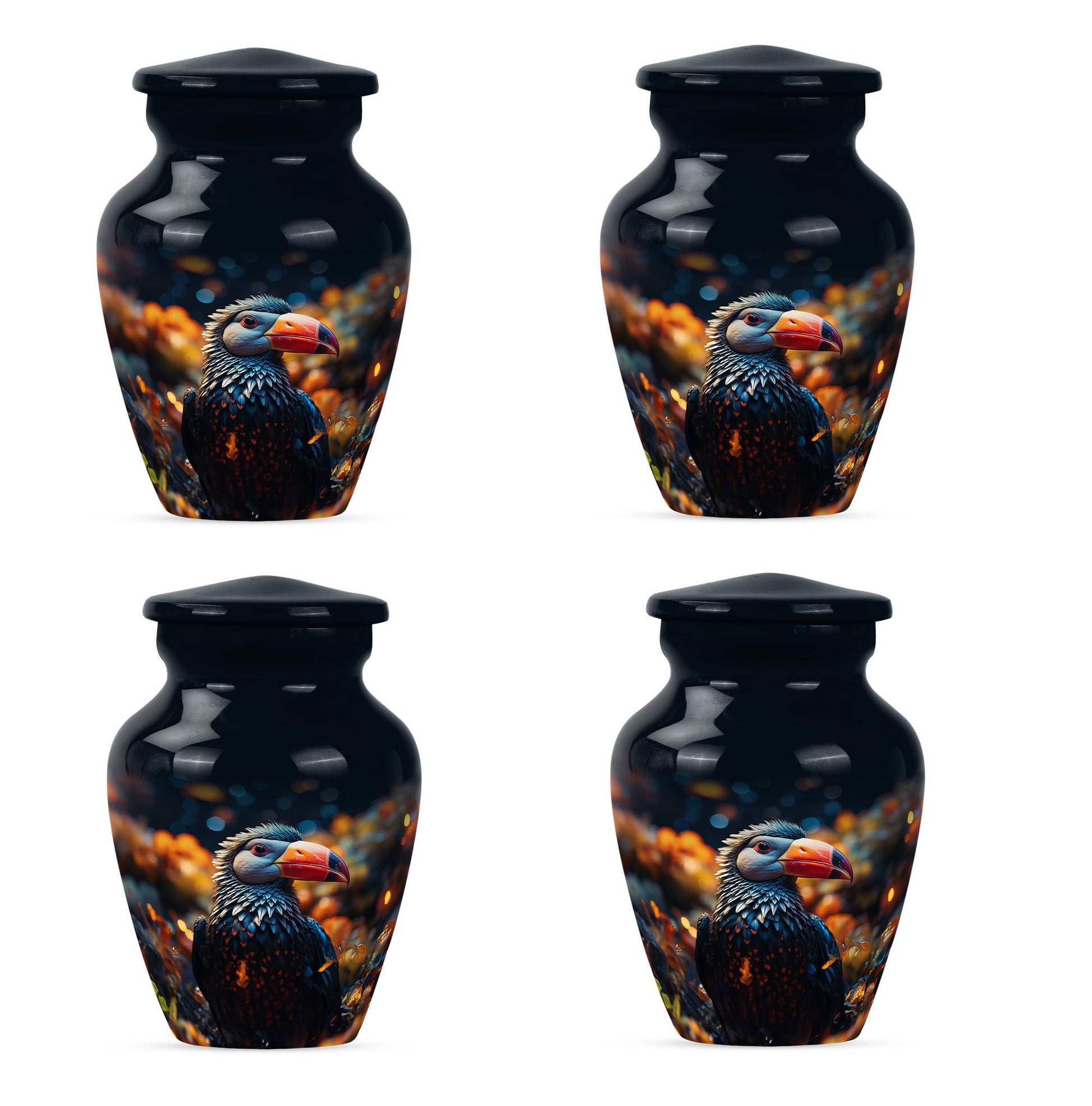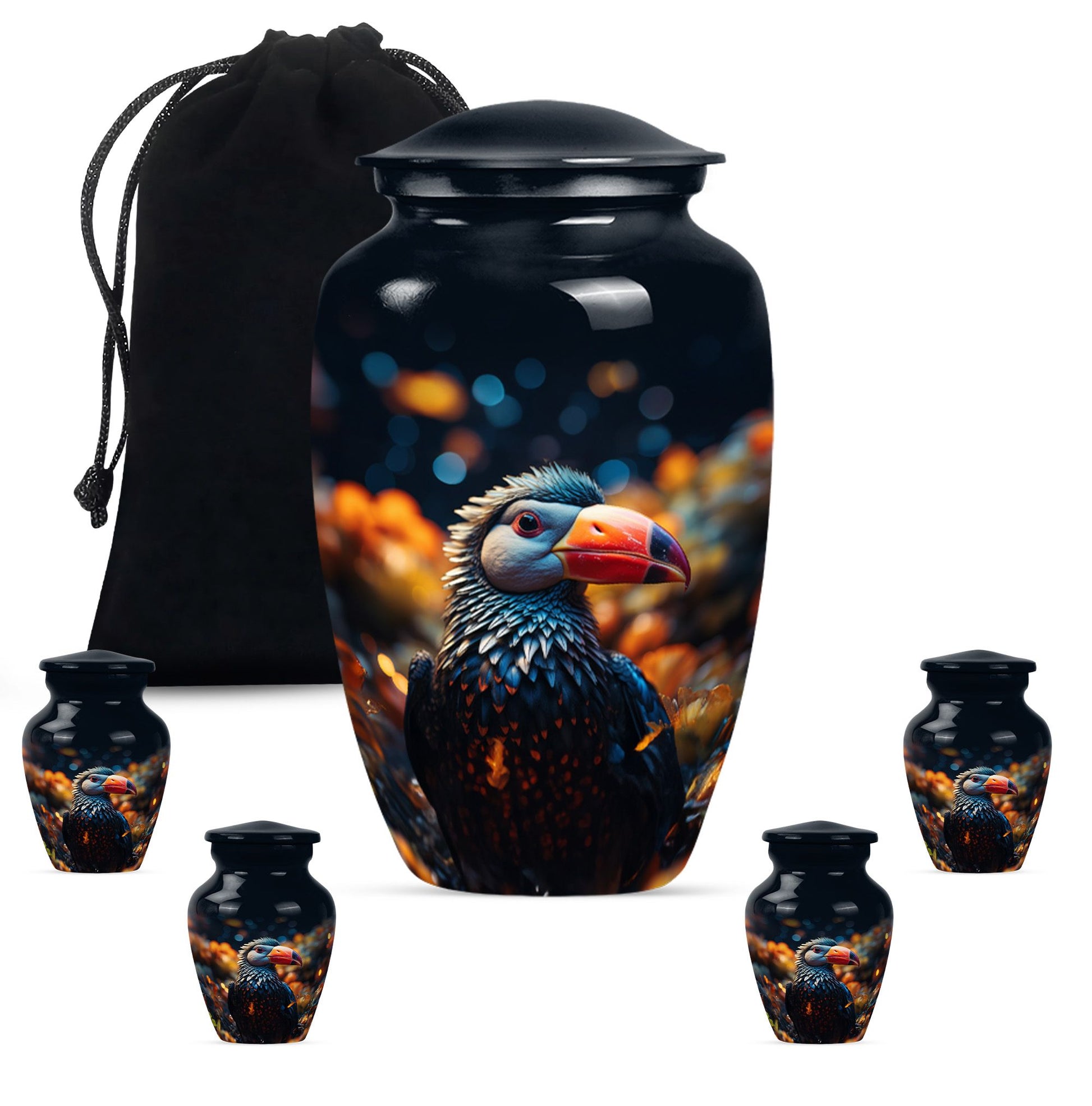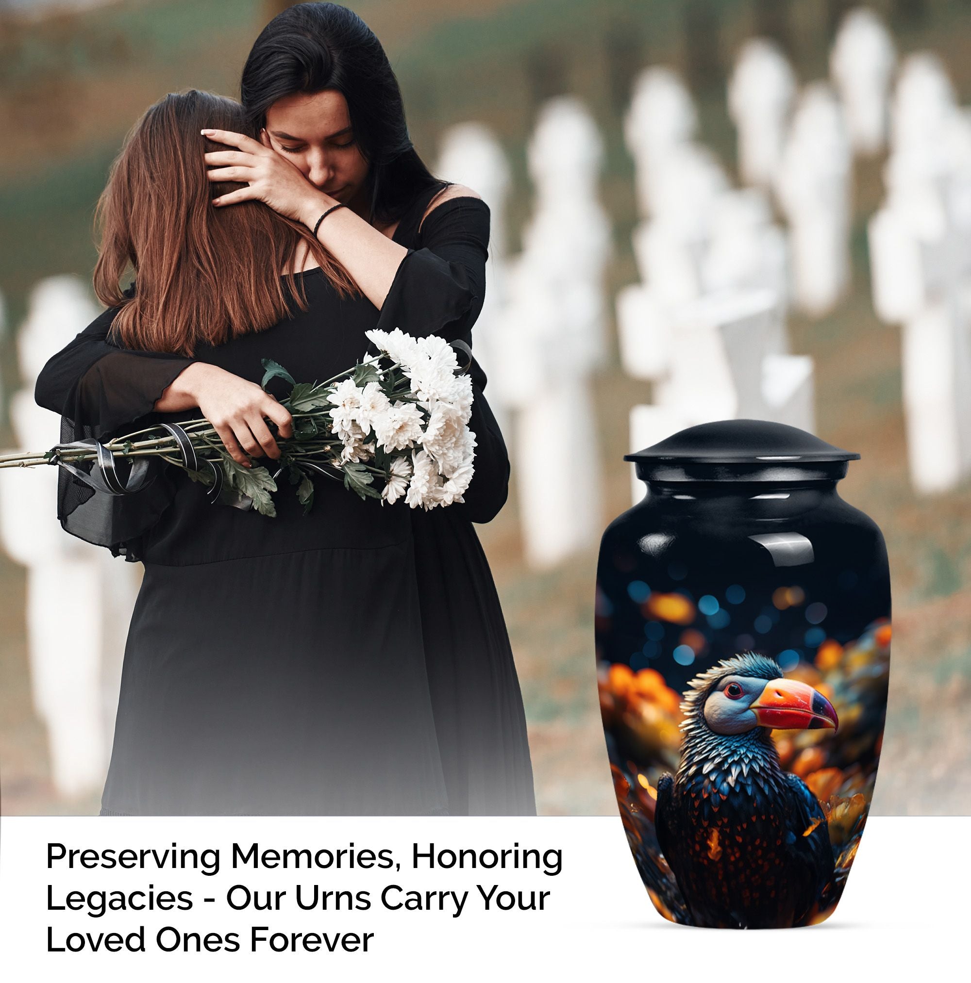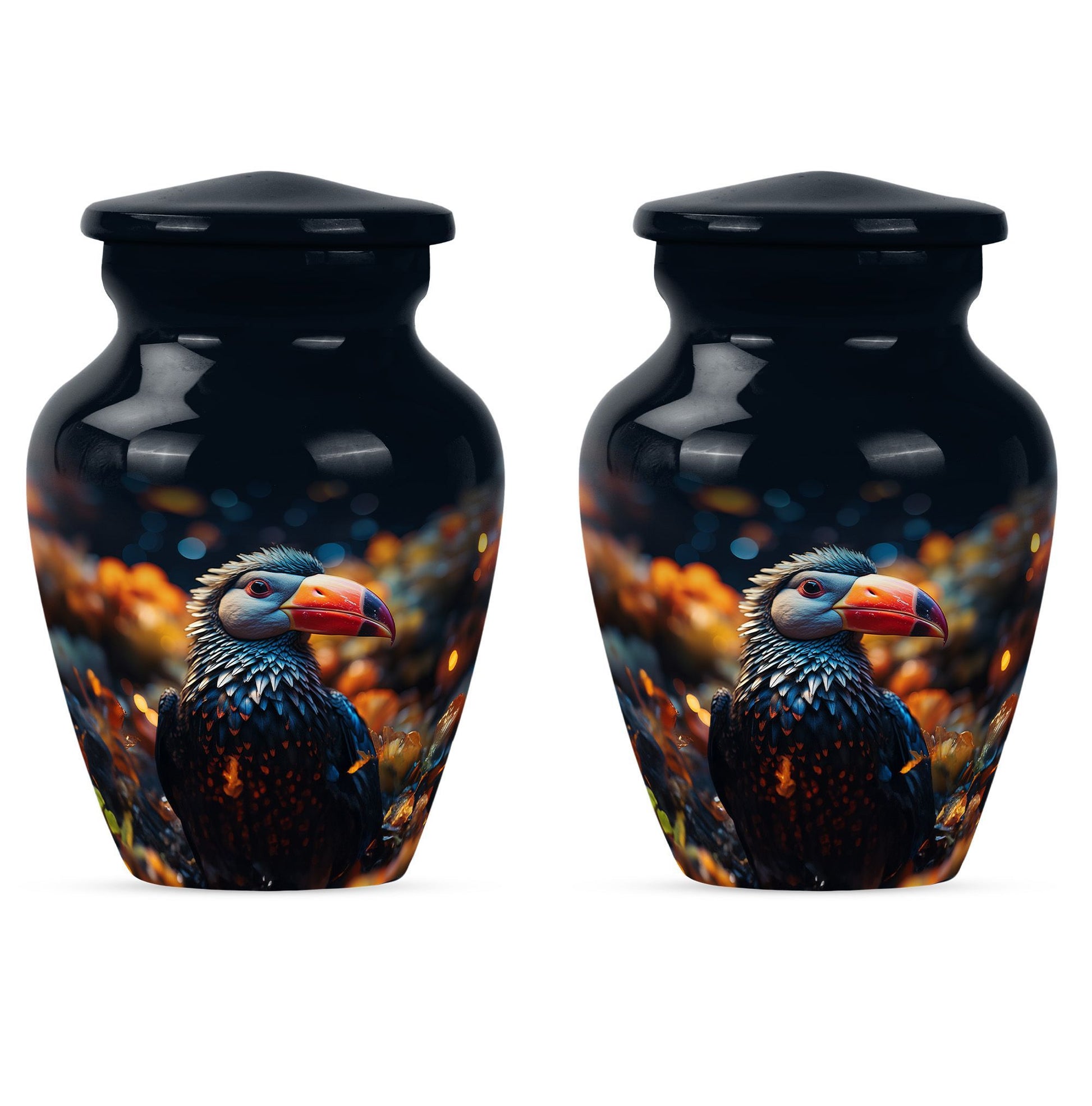Treasure the memories of your loved ones with our tactfully crafted Toucans Urn, a pronounced choice for 'funeral urns for mom'. The meticulously built 10-inch 'classic urn' is devised to secure your cherished memories while offering an engaging abstract theme. Made from durable aluminium, this urn weighs 3.3 pounds and stands 10 inches high, accommodating up to 200 cubic inches. Our large urn is not limited to mere functionality but also carries an aesthetic appeal suitable for 'memorial urns'. Each urn comes with a complimentary velvet pouch, adding an extra layer of protection for the containment of ashes. To make it truly special and unique, we offer personalization, where names can be intricately engraved. This 'unique urn for ashes' is a perfect fit for those perusing 'metal urns for burial in ground', further catering to searches for 'urns for female' and 'personalized memorial urns'. Elevate your memorial sentiment with our Toucans Urn that combines timeless design, quality and charm.