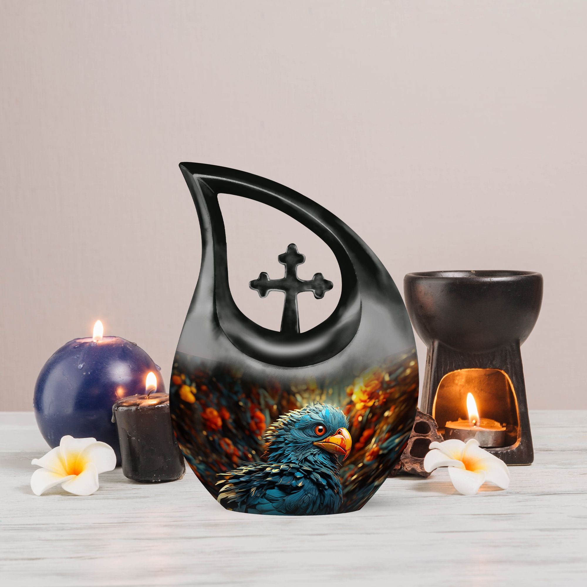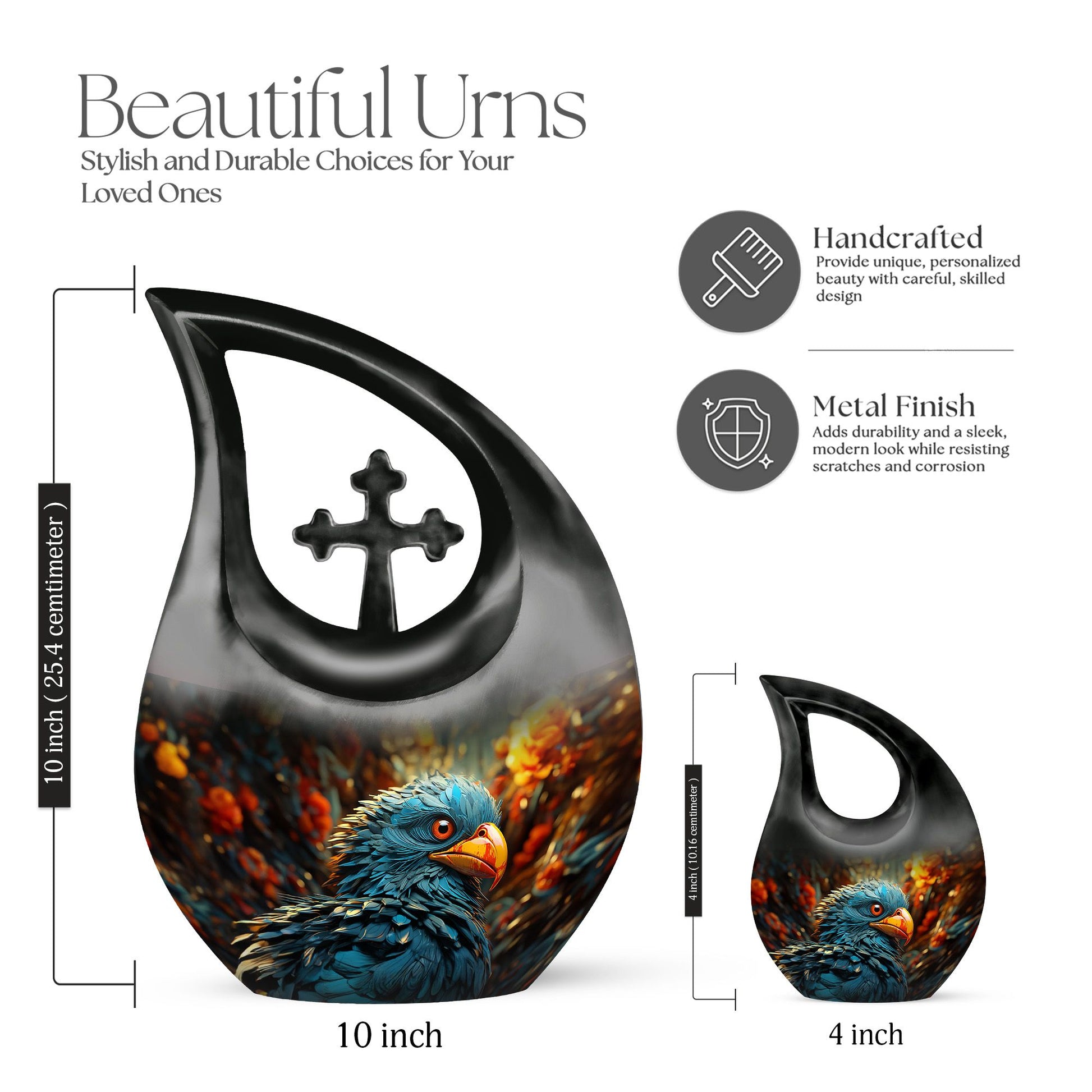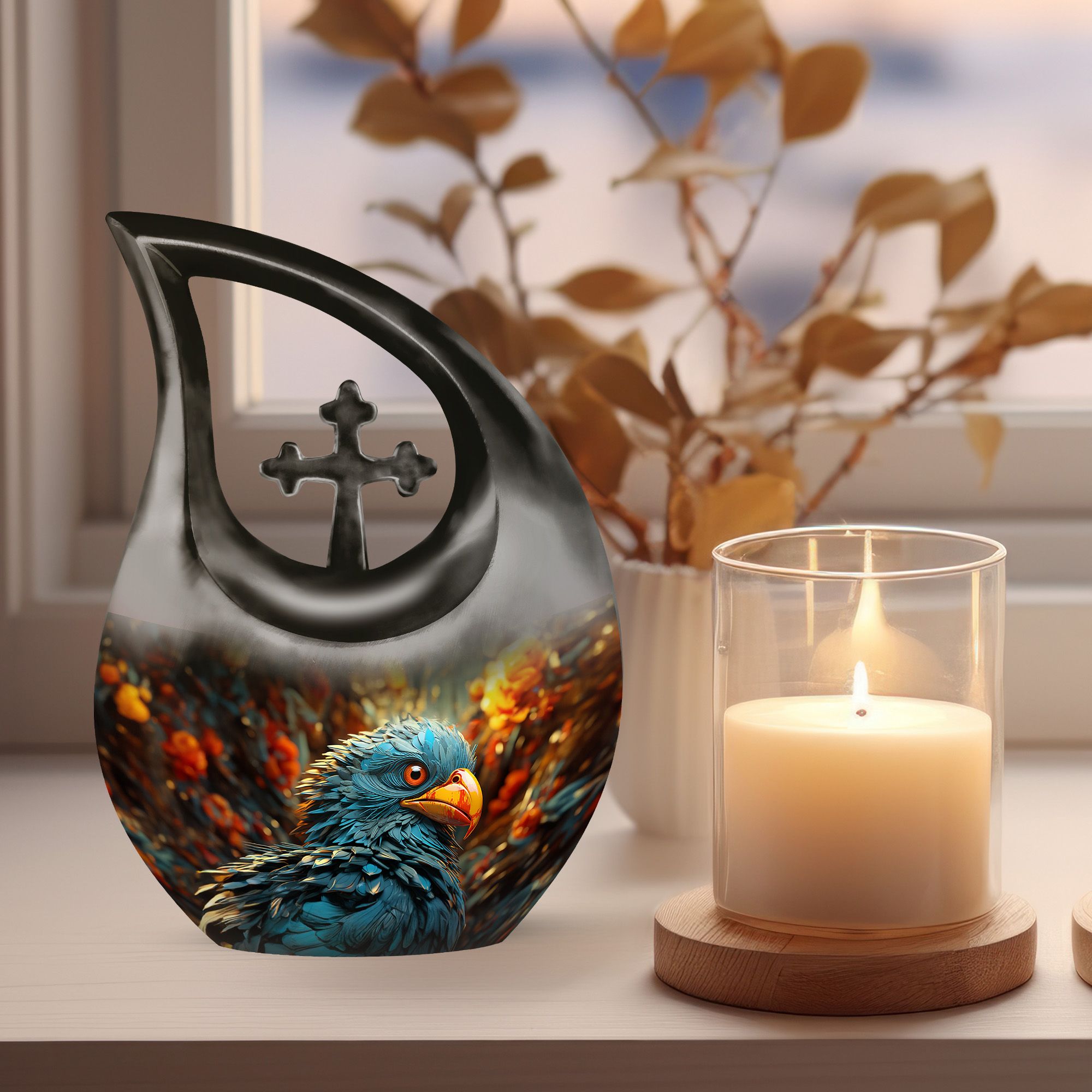 Crafted from durable aluminium, this 10 inch urn blends artistry with strength. The colorful toucan motif adds a unique, nature-inspired touch, making it suitable for families seeking large cremation urns or thoughtfully designed urns for ashes adult male large. Its secure construction and ample 200 cubic-inch capacity make it ideal for those needing a large urn for ashes for women, large human ashes urn designs, or large urns for human ashes adult female options. Each detail reflects careful craftsmanship and long-lasting beauty.