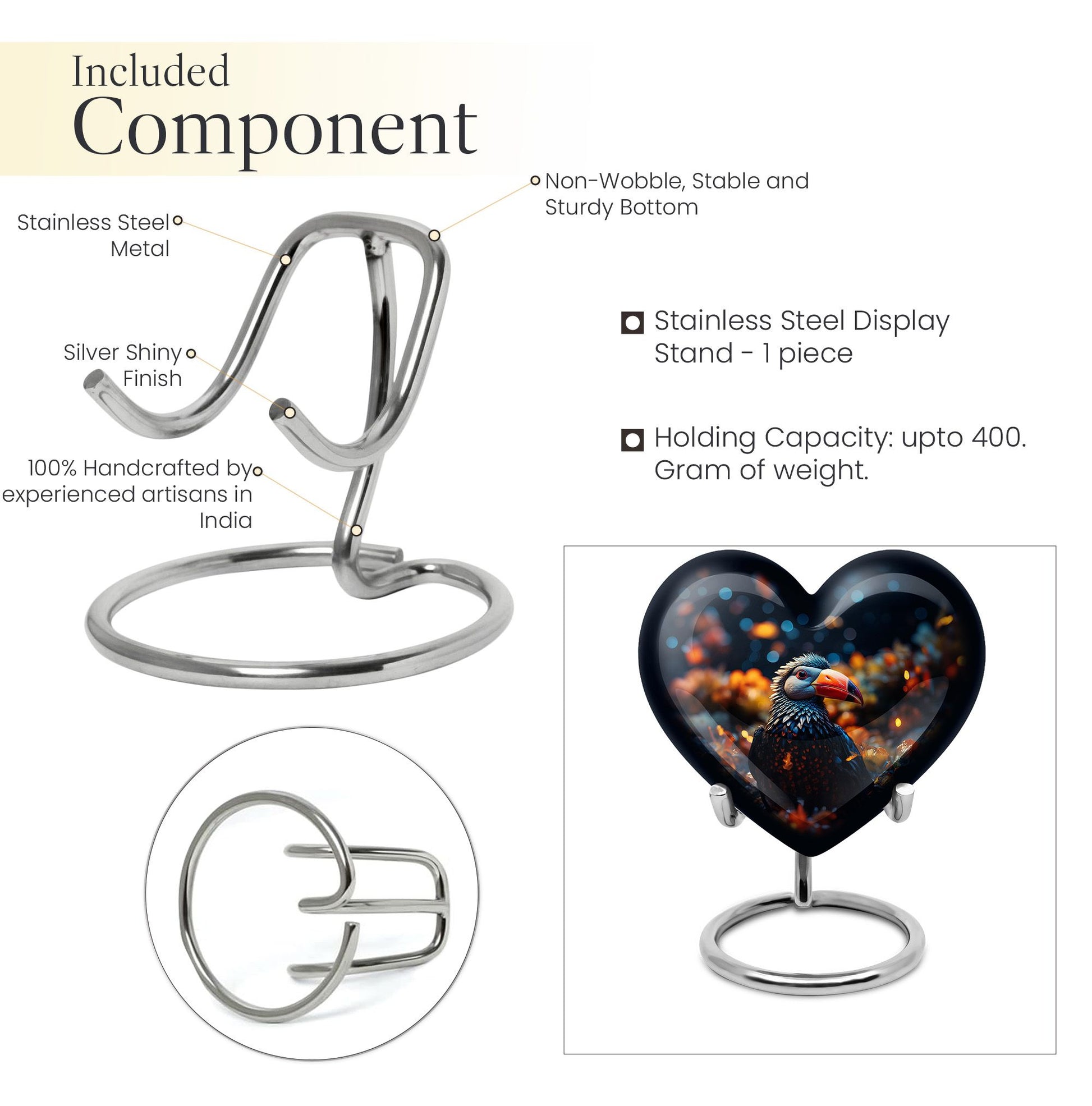 With an exquisite blend of style and remembrance, our 'Toucans Urn' is tailored for those who desire uniqueness and value significance. Carrying an eye-catching abstract theme, this large funeral urn is meticulously crafted from superior quality aluminium blend; it delicately balances durability with finesse. The heart design embedded in our urn demonstrates a deep sense of love and honor towards your departed loved ones and serves as a tangible reminder of cherished memories. Sized impeccably at 10 inches and with a capacity holding up to 200 cubic inches of remains, this urn embodies the perfect resting sanctuary for your precious one. This metal urn comes alongside a sublime velvet pouch for discreet containment of cremated ashes. Adding a personalized touch is our uniqueness; with the 'Toucans Urn', you are privileged to engrave preferred names, making the urn all the more intimate. Explore our collection of uniquely tailored memorial urns for mom or any cherished female figure; you are sure to find a memorial that resonates. Personalize your journey of remembrance with our stunning selection of funeral urns and find solace in honoring your beloved's legacy.