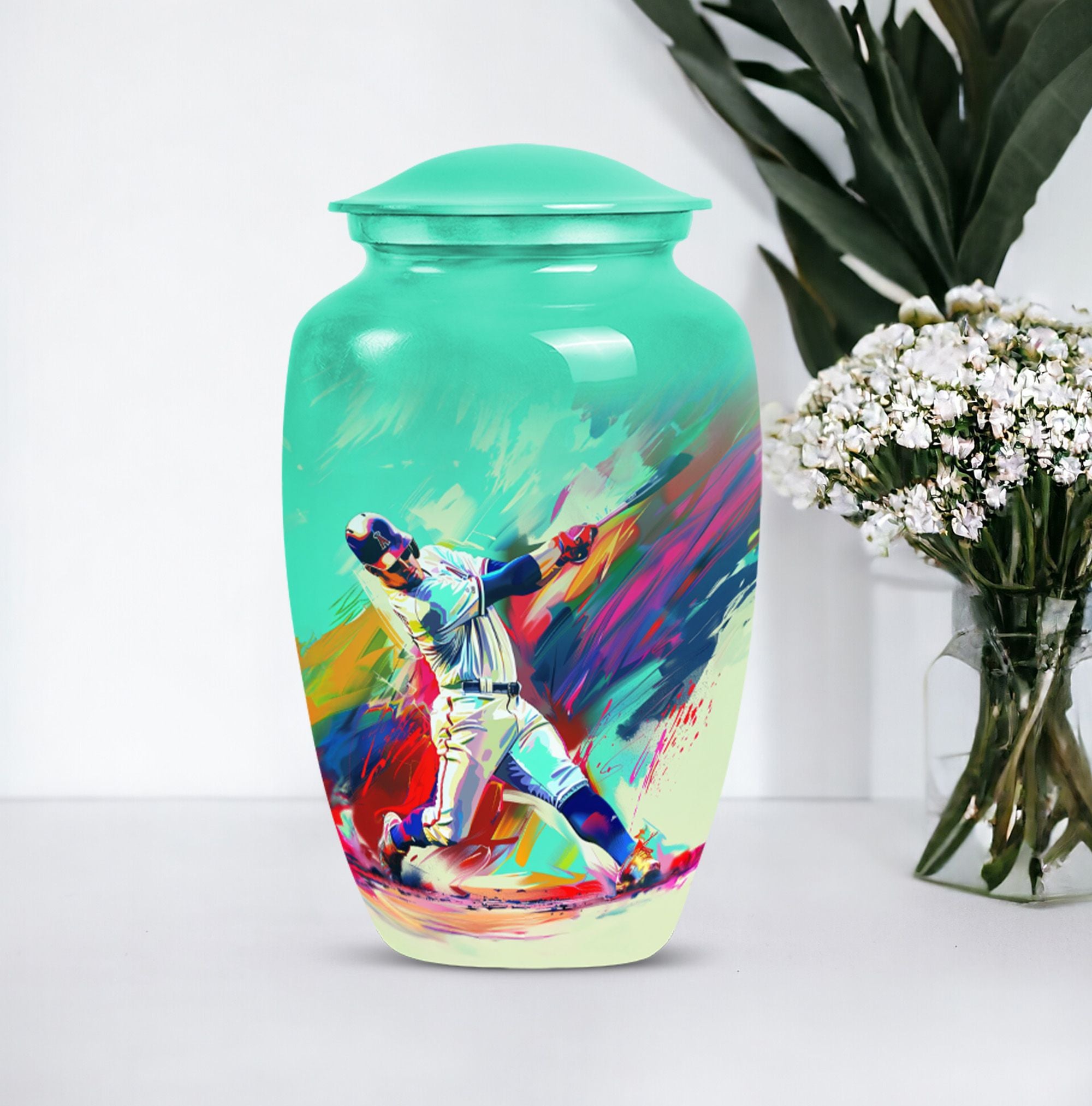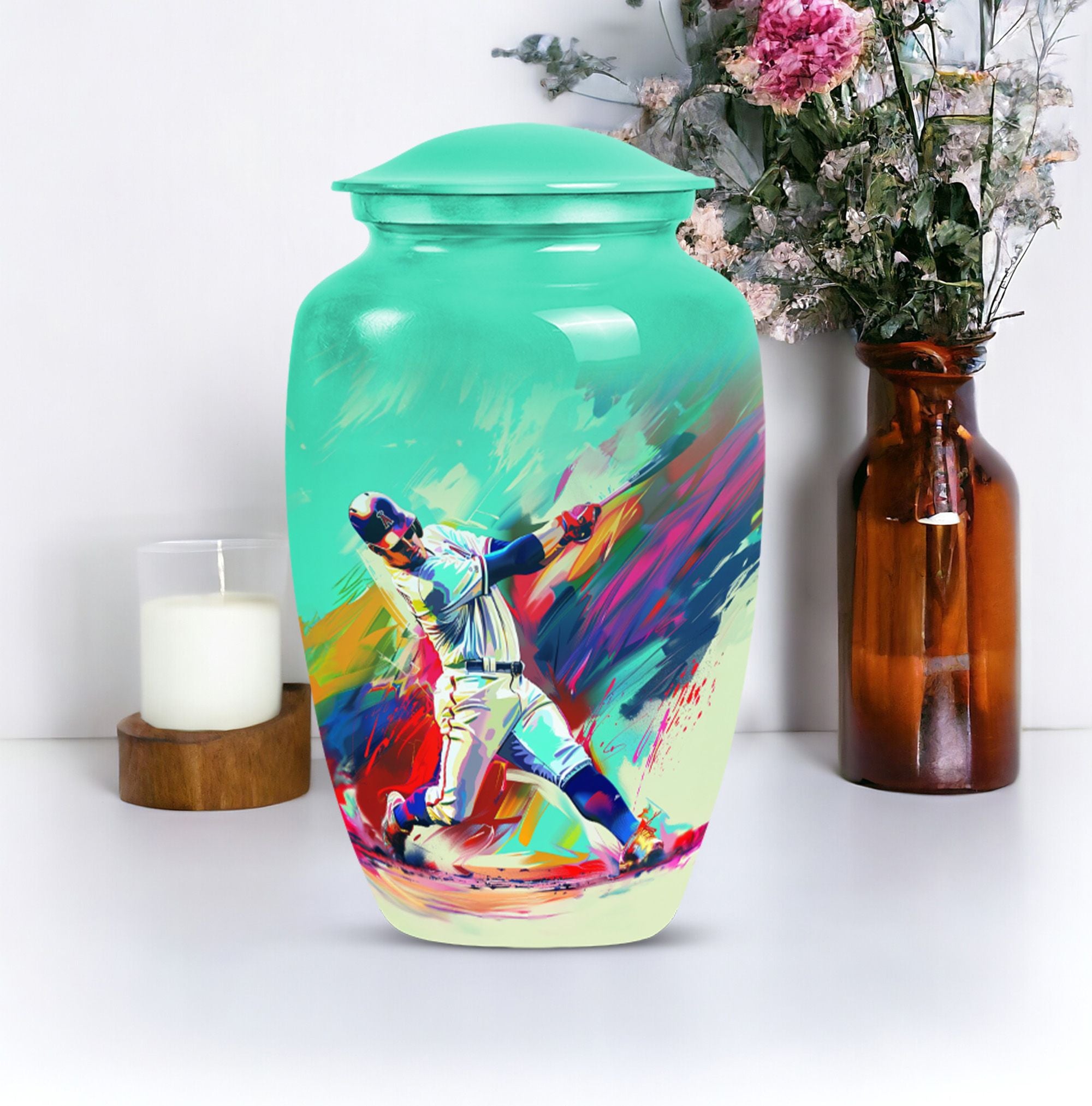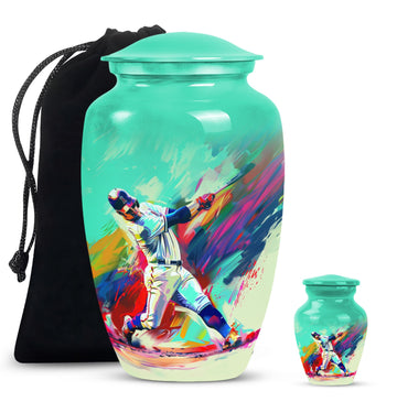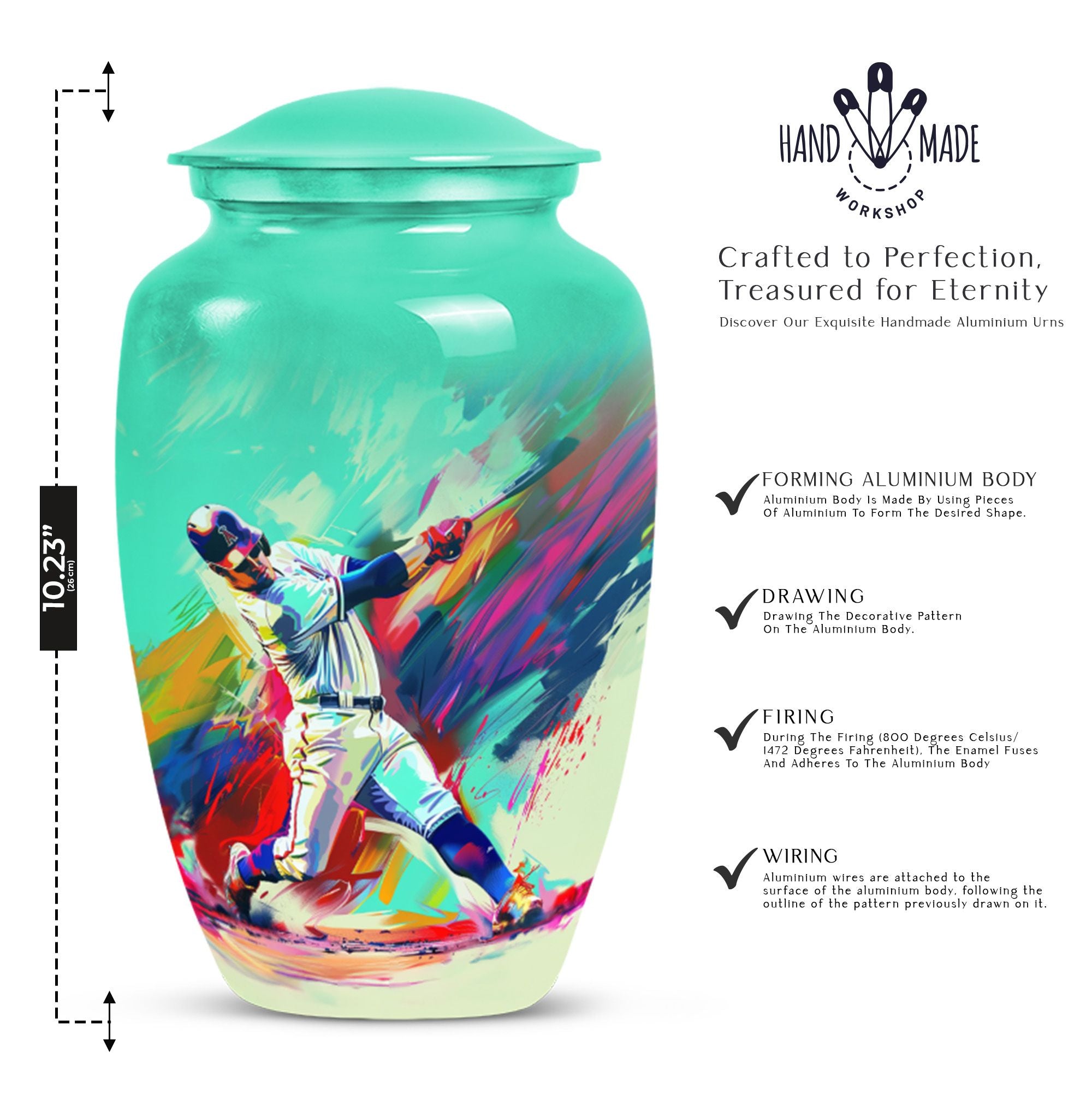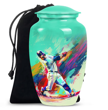 Our 10-inch 'Classic Urn' is a perfect commemoration, beautifully crafted from Aluminium and carrying a sophisticated abstract theme. The urn weighs 3.3 pounds and boasts the dimensions of 10 inches in height, appreciating the space for about 200 cubic inches capacity. This large urn is not just a cremation urn, but it encloses a touching tribute, holding onto the precious ashes within a complimentary velvet pouch. Developed to fit in the category of 'baseball urn', this funeral urn for adult ashes stands out by its multipurpose usage enhancing the emotional connection with the engraved names personalization option. Whether you're seeking burial urn for cremation or a shape urn, this product with multipurpose usage meets your sensitive needs. With its modest design, this cremation urn magnifies the homage and fond remembrance of your loved ones.