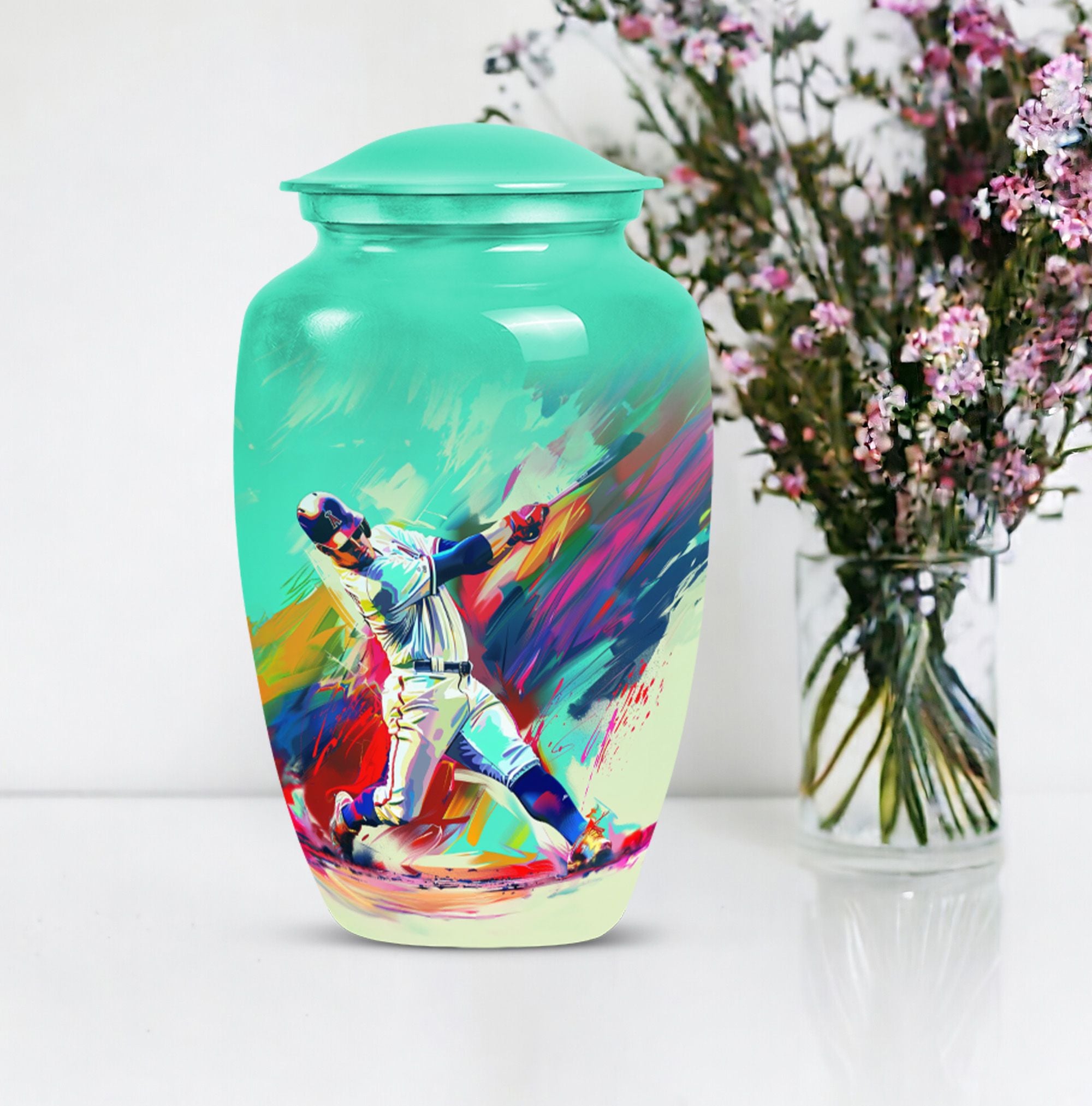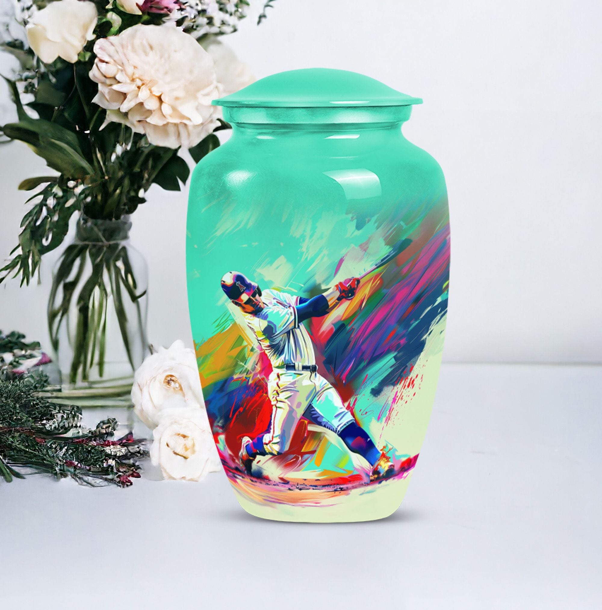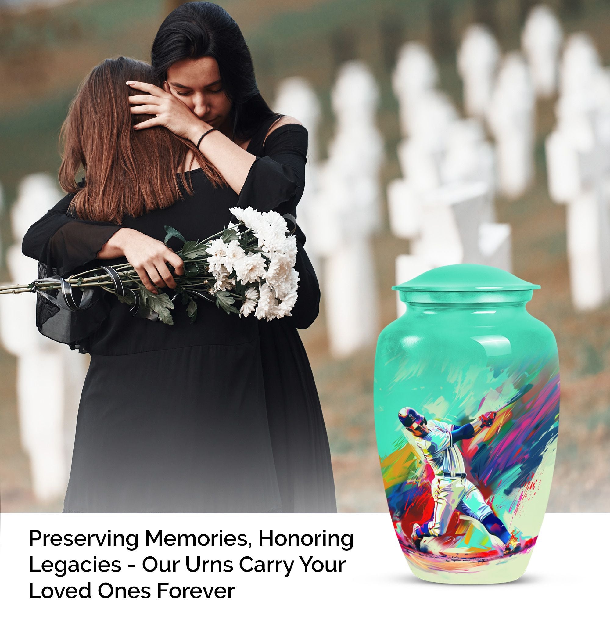 Our 10-inch 'Classic Urn' is a perfect commemoration, beautifully crafted from Aluminium and carrying a sophisticated abstract theme. The urn weighs 3.3 pounds and boasts the dimensions of 10 inches in height, appreciating the space for about 200 cubic inches capacity. This large urn is not just a cremation urn, but it encloses a touching tribute, holding onto the precious ashes within a complimentary velvet pouch. Developed to fit in the category of 'baseball urn', this funeral urn for adult ashes stands out by its multipurpose usage enhancing the emotional connection with the engraved names personalization option. Whether you're seeking burial urn for cremation or a shape urn, this product with multipurpose usage meets your sensitive needs. With its modest design, this cremation urn magnifies the homage and fond remembrance of your loved ones.