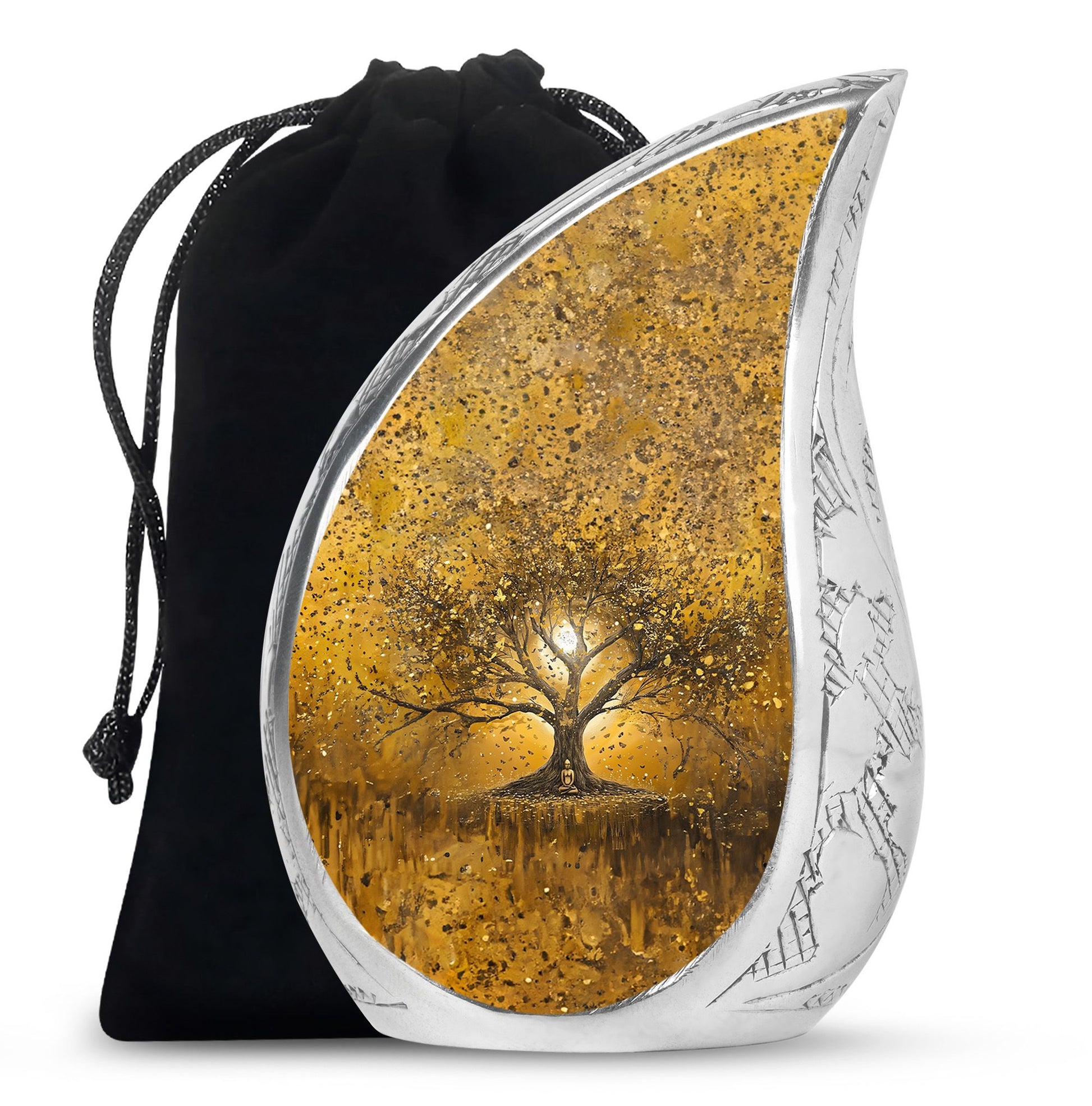 This **cremation urn for human ashes** features **a detailed Tree of Life engraving, representing strength, unity, and the eternal journey of the soul**.