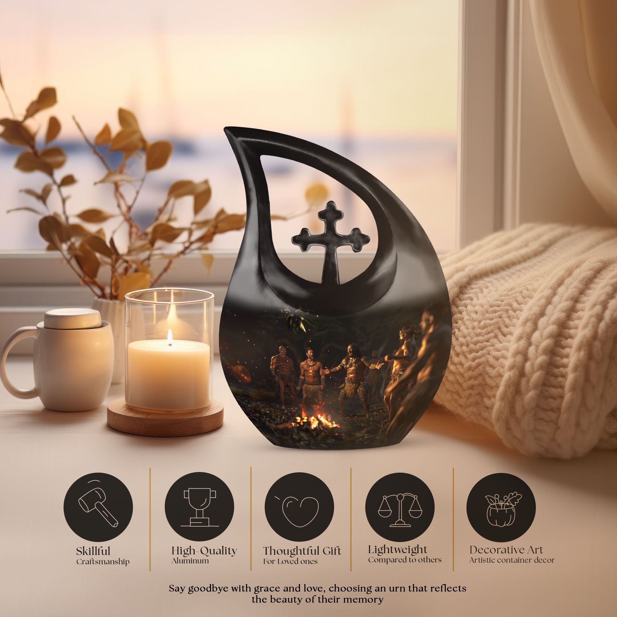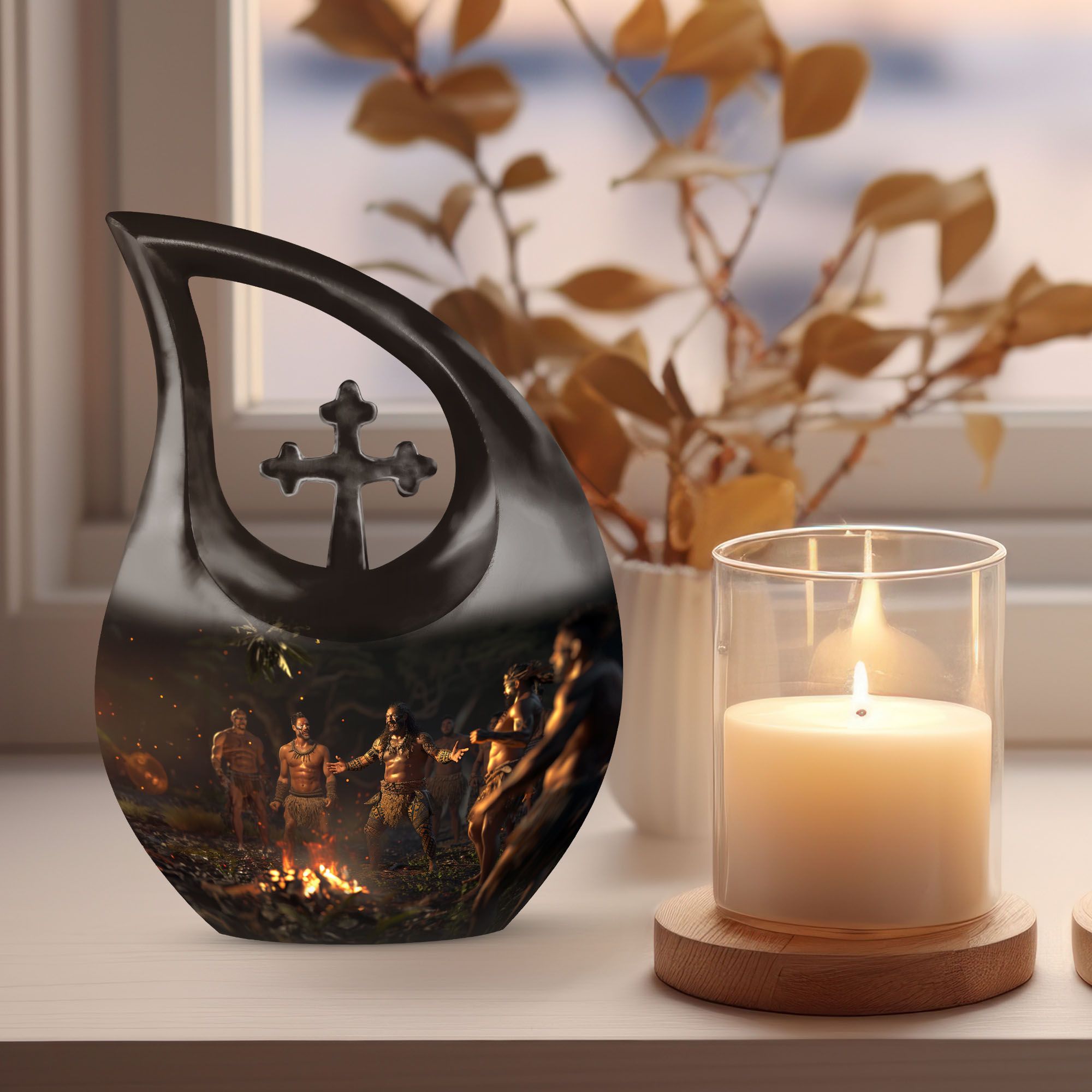 The Tribe Man Memorial Urn offers a powerful and symbolic tribute for honoring the memory of a beloved mother, father, or family member. Designed with a meaningful tribal motif representing heritage, unity, and eternal strength, it brings comfort to families seeking burial urns for adult human ashes or a heartfelt ashes memorial keepsake to honor their loved one’s legacy.