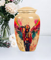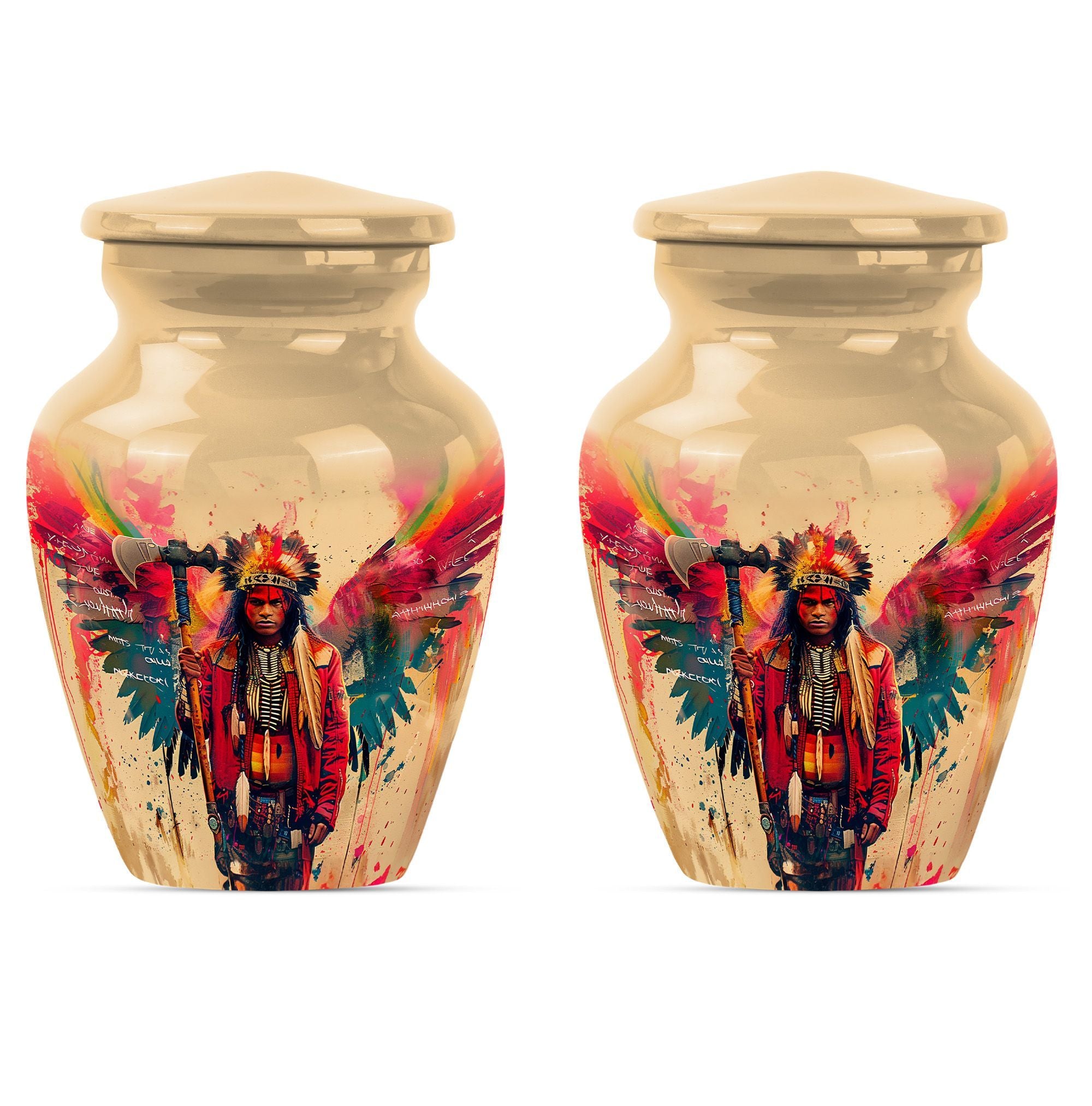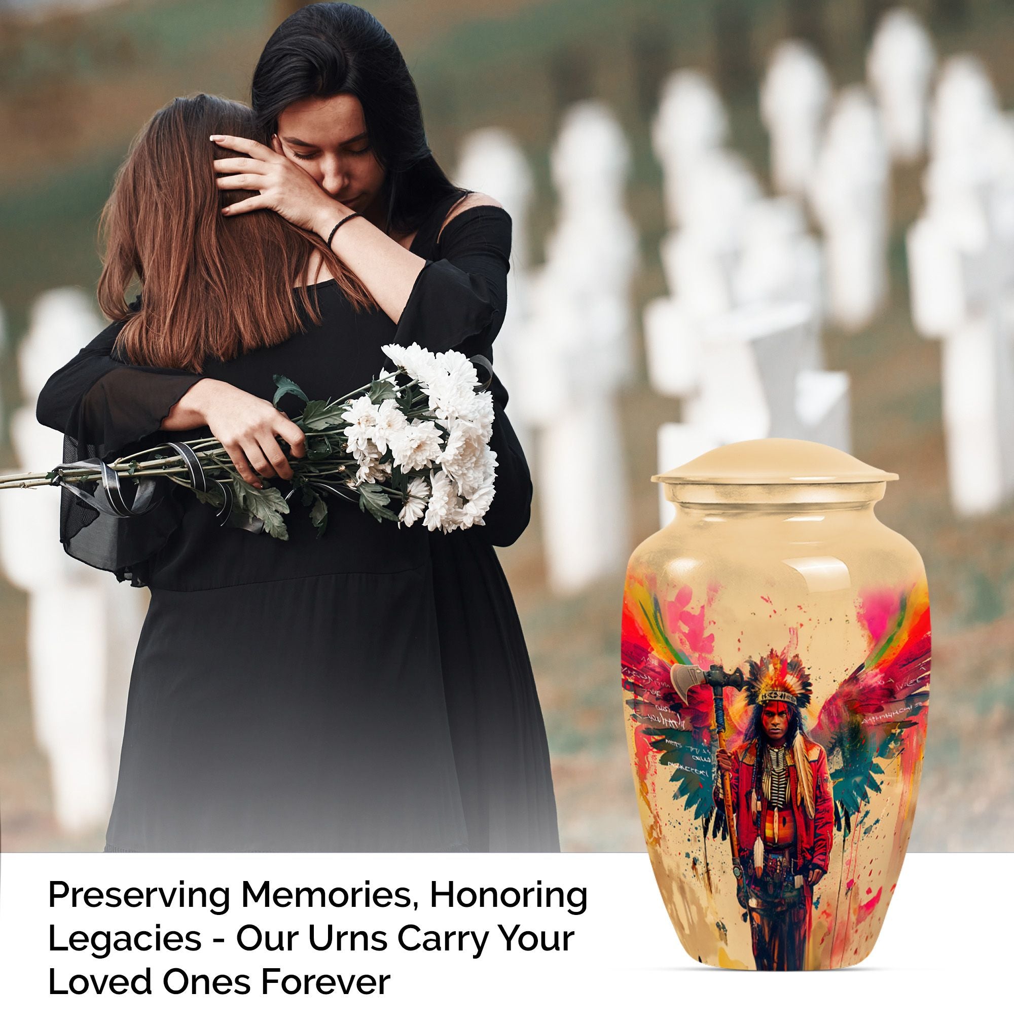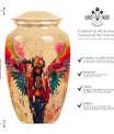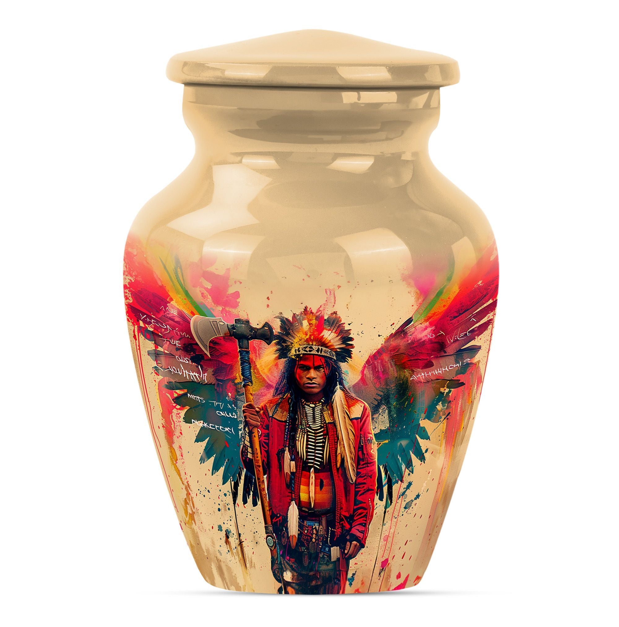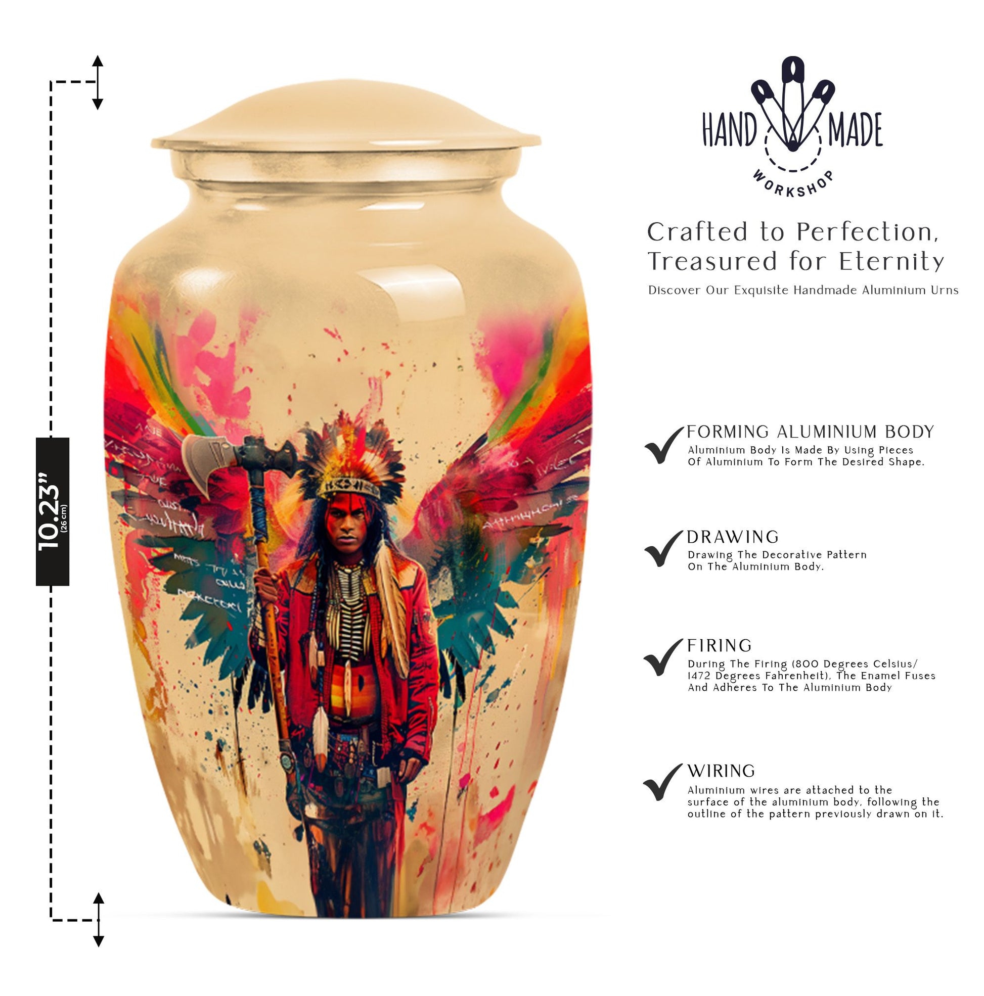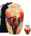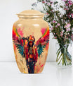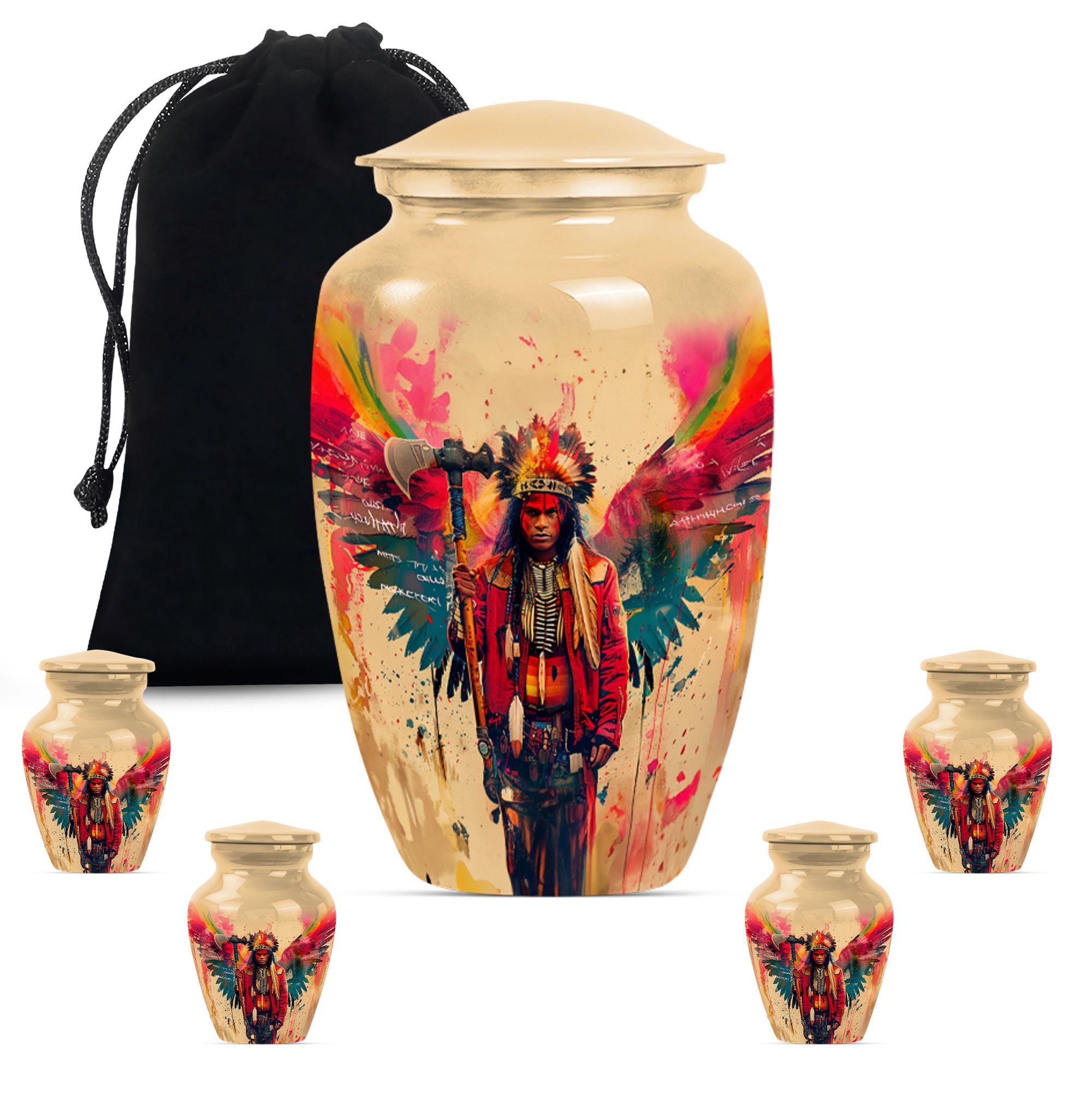Perpetuate the memory of your departed loved one with our Tribe Man Urn. This large urn features an alluring Wolf Howling theme, to evoke the spirit of nature and freedom. Constructed with the highest quality aluminium, the urn stands 10 inches in height -- perfect for display in your home or a ceremonial venue. Designed to hold up to 200 cubic inches of ashes, this product strikes the right balance between aesthetic charm and functional value. The urn's weight is 3.3 pounds -- solid and sturdy but not overly weighty -- making it easy to handle during memorial ceremonies. To add a personal touch, we offer the option to personalize this tribute piece with engraved names. Each purchase also includes a velvet pouch for tasteful and discreet containment of the ashes. Not your typical memorial item, this urn is a unique addition to our Memorial Ceremony Supplies category. Key search terms for this product include 'tribe man urn', 'funeral urn for men's ashes', 'adult ashes men', 'elegant urns', and 'memorial urns'.