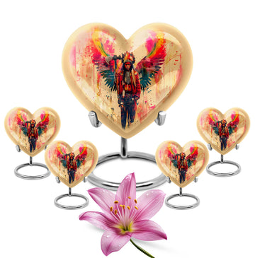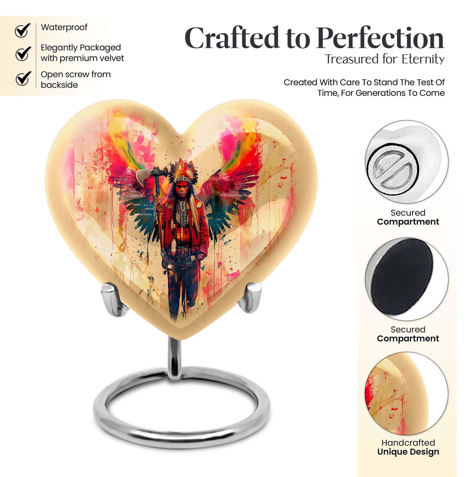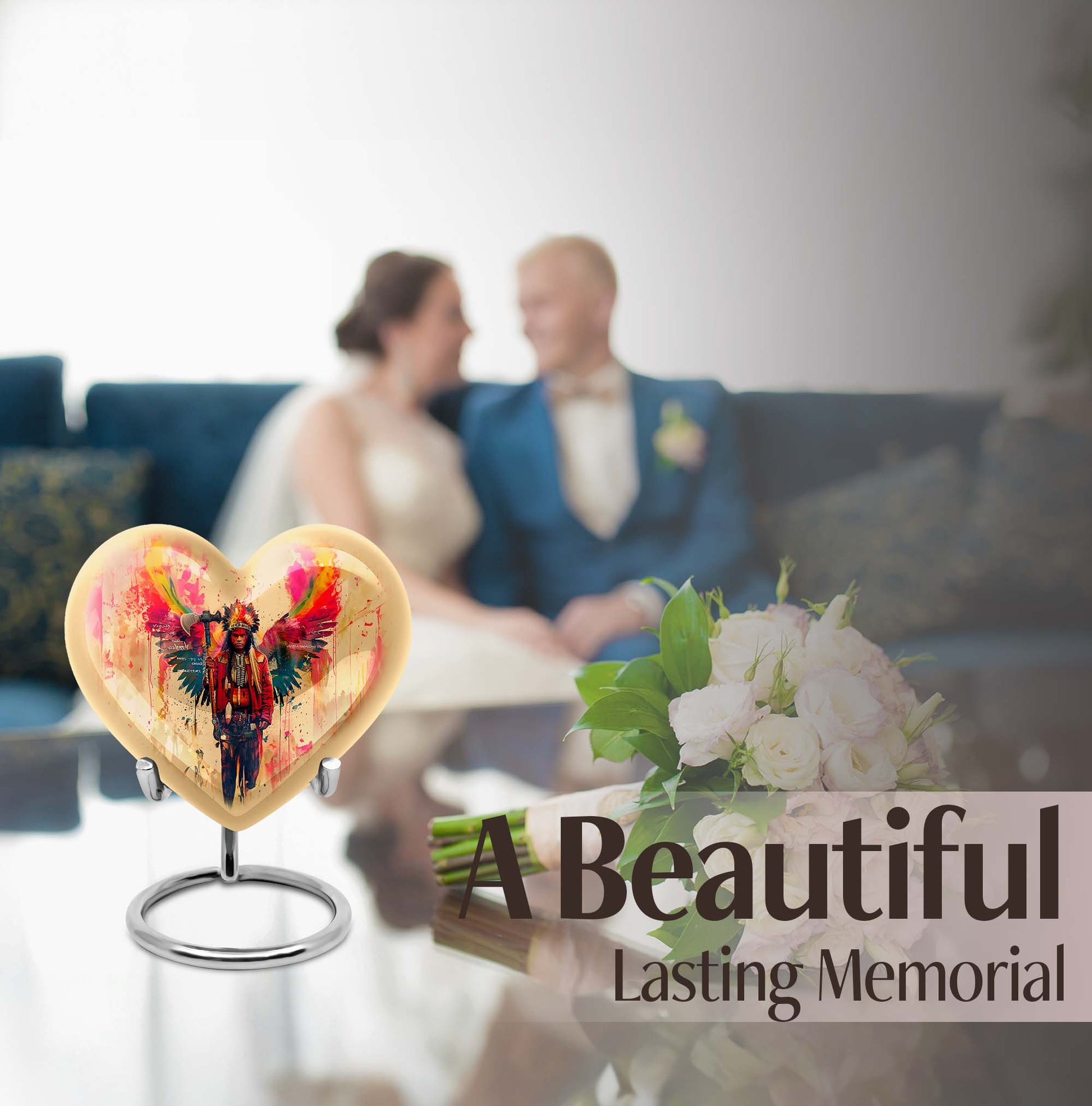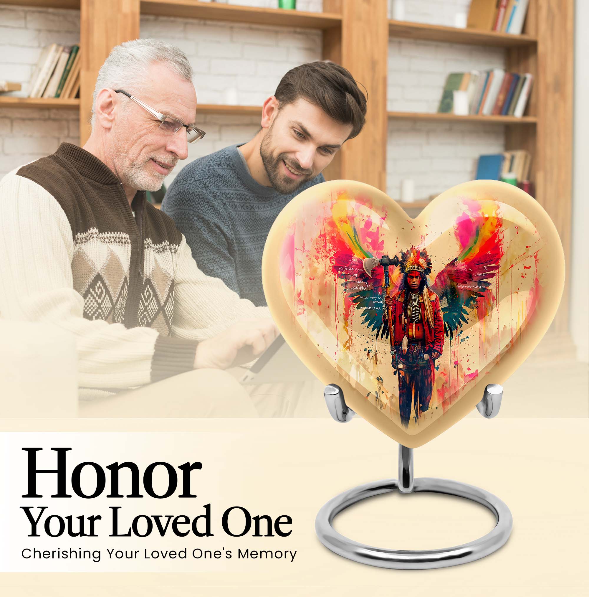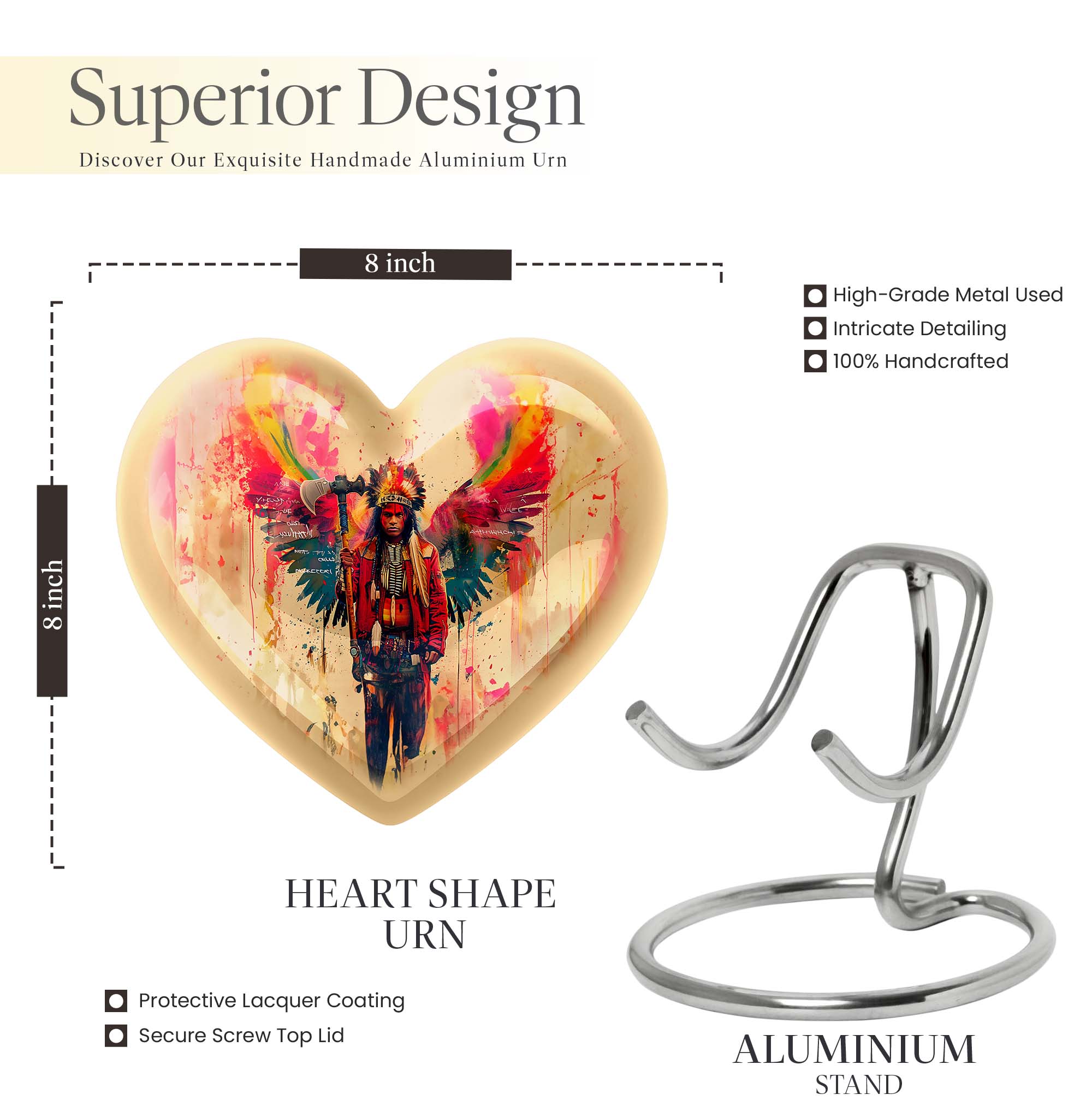 Each life is unique, and it deserves an equally unique and captivating remembrance. Honour your loved one's memory with our Tribe Man Urn, a grand 10-inch memorial urn intricately crafted from durable aluminium, capturing the poignant theme of a Wolf Howling. This large urn is prepared to safe-keep 200 cubic inches of ash, epitomizing the magnitude of the love and memories you shared. It weighs a substantial 3.3 pounds, underscoring its quality and durability. Contributing to the urn's distinct appeal is the opportunity for personal customization. Honor the departed by engraving their name and creating a singular piece of memorial object. The urn's extraordinary heart design is discreetly harbored in a velvet pouch, ensuring the containment of ashes in a dignified and respectful manner. The Tribe Man Urn, a fusion of elegance and sentiment, is an auspicious choice for memorial urns or funeral urns for men's ashes. Its unmatched sophistication will bring comfort to adults and seniors striving to preserve the memory of their beloved departed.