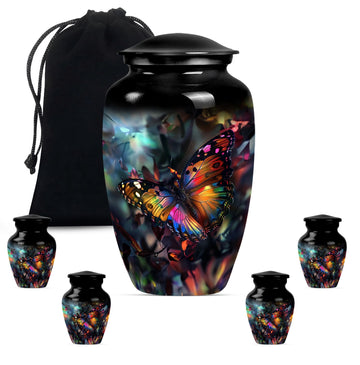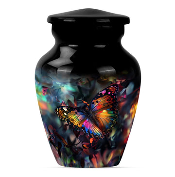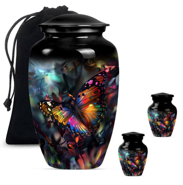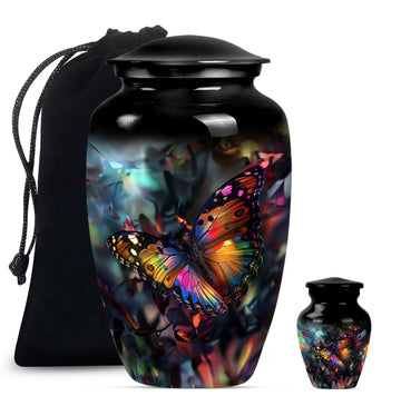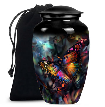Honor your loved ones with the stunning Butterfly Urn, a timeless memorial medium urn crafted from high-quality aluminium. Sized elegantly at 10 inches, this piece provides a fitting tribute for cherished remembrances. With a substantial weight of 3.3 pounds, this large urn exhibits a profound presence. It features a classic urn design with a unique Wolf Howling theme, beautifully encapsulating the eternal bond. Its impressive capacity of 200 cubic inches guarantees substantial containment. Each product comes packaged with a luxurious velvet pouch, ensuring the safekeeping of the ashes. Add a personal touch to this burial treasure with the option of engraved names, lending more depth to its meaning. This cremation urn resonates with the grieving process, serving as a comforting memorial element. A seamlessly designed funeral urn for adult human ashes, it finds a delicate balance between style and sentiment, making it a standout in the realm of cremation urns for human ashes.