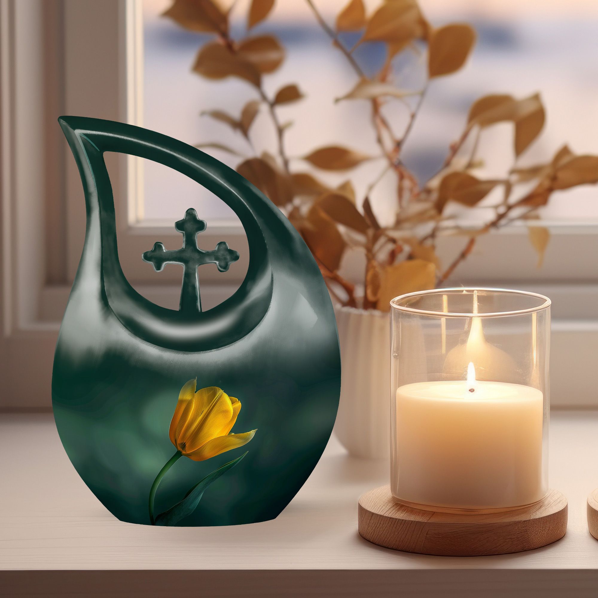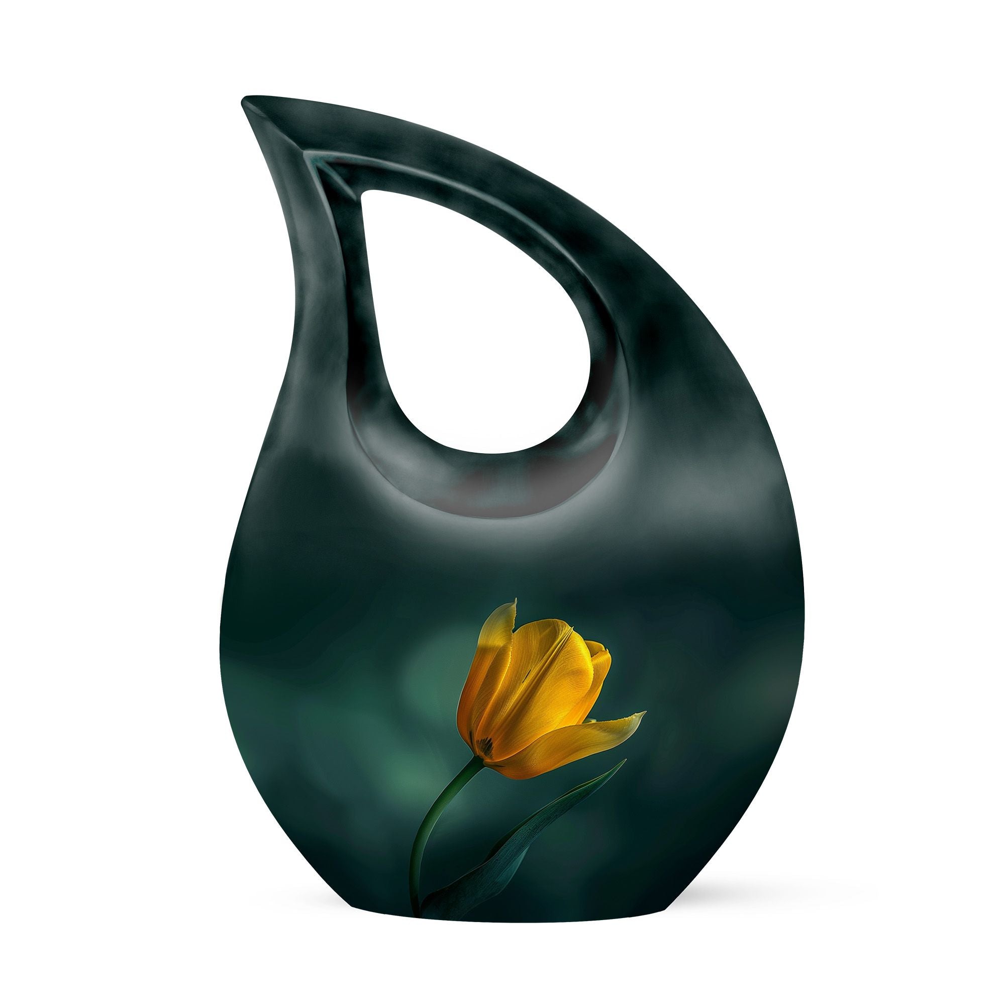 The Yellow Tulip Flower Cremation Urn is a heartfelt tribute to a life filled with warmth, love, and grace. Designed with thoughtful craftsmanship, this urn represents renewal and remembrance — a perfect choice for families seeking funeral urns for adult ashes men or adult urns for human ashes women that blend elegance with meaning. The vibrant yellow tulip symbolizes hope and eternal connection, bringing comfort to every memorial space.