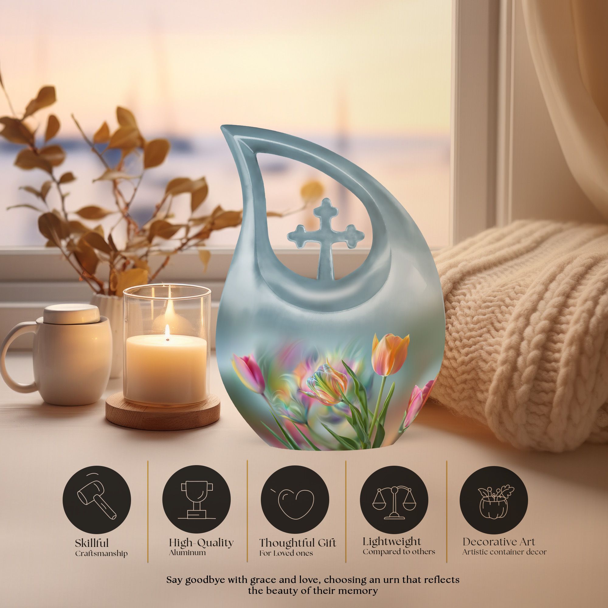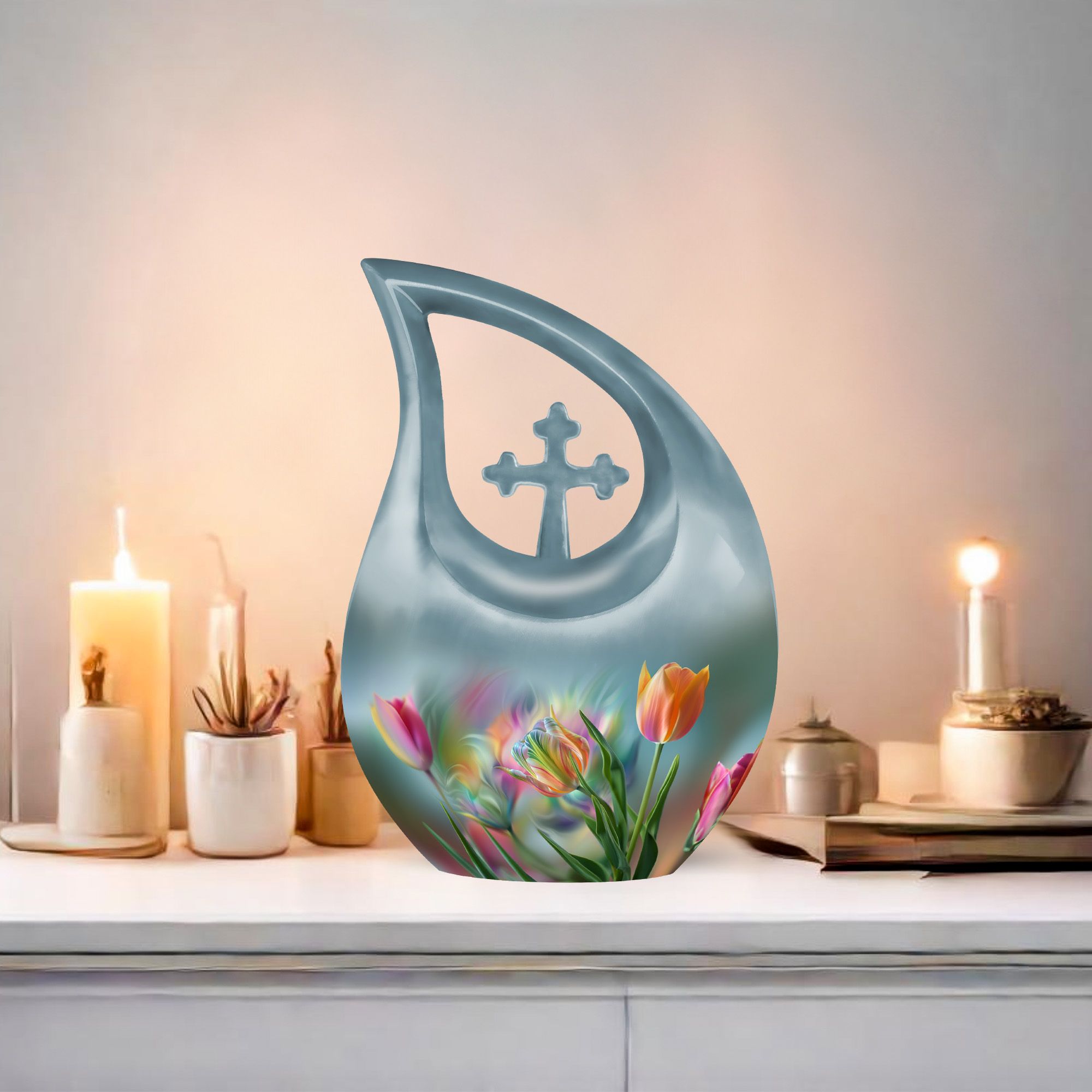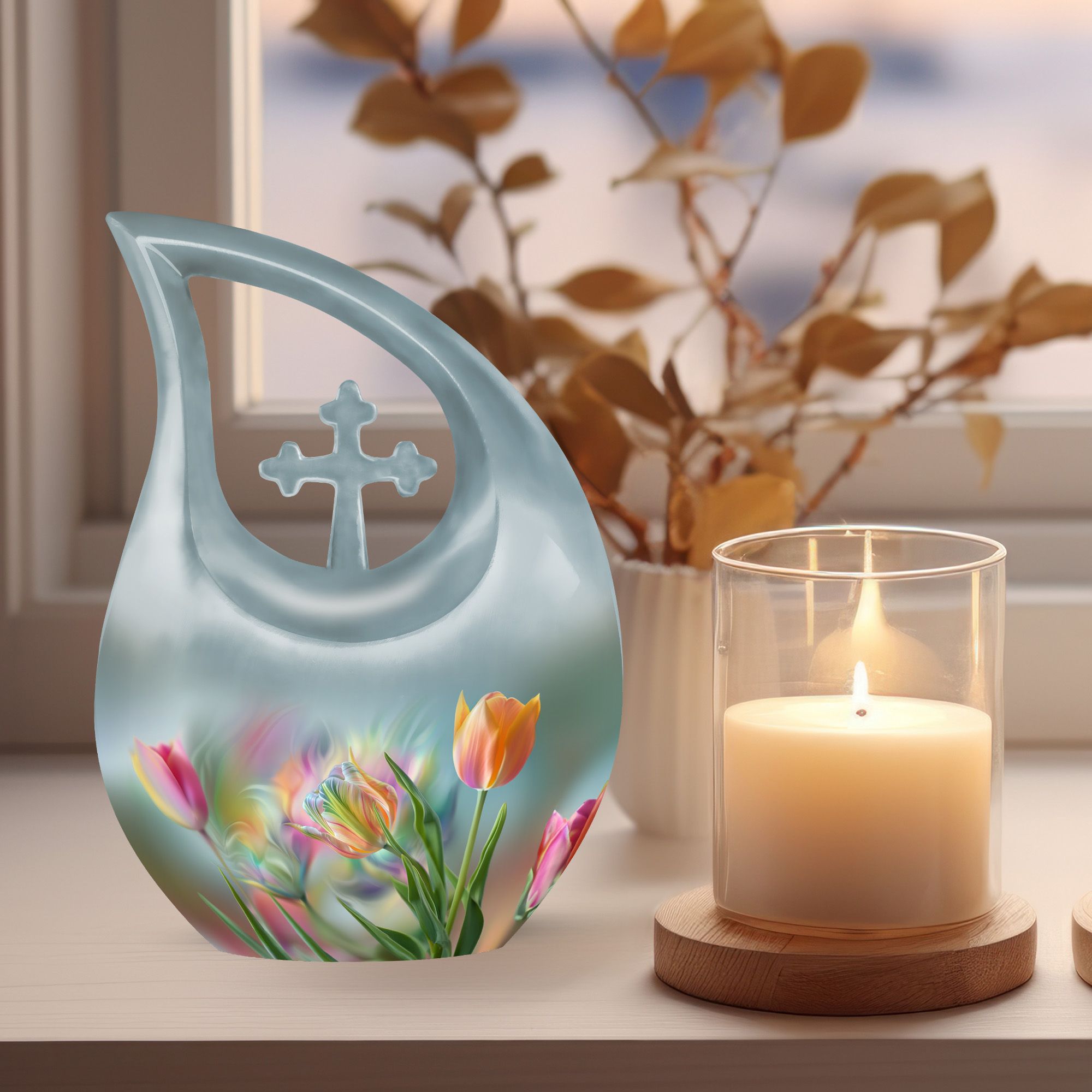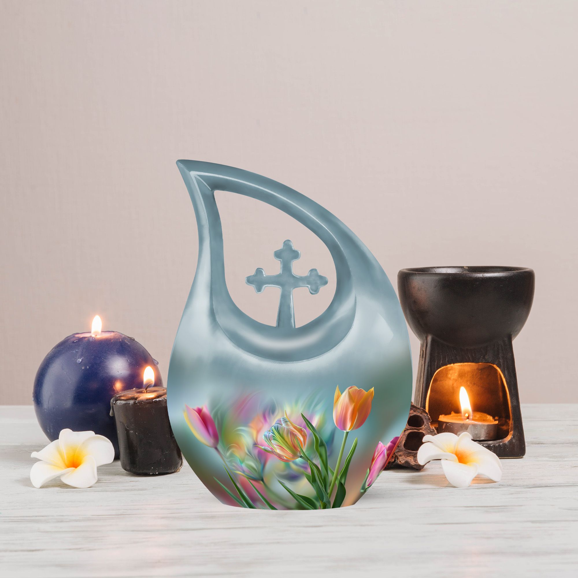 Selecting a resting place is an act of deep love, and this Pastel Tulip Cremation Urn offers a gentle, comforting tribute. With its soothing blue tones and floral symbolism, it is ideal for families seeking adult cremation urns, cremation urns for ashes, or a meaningful cremation keepsake urn to honor cherished memories.