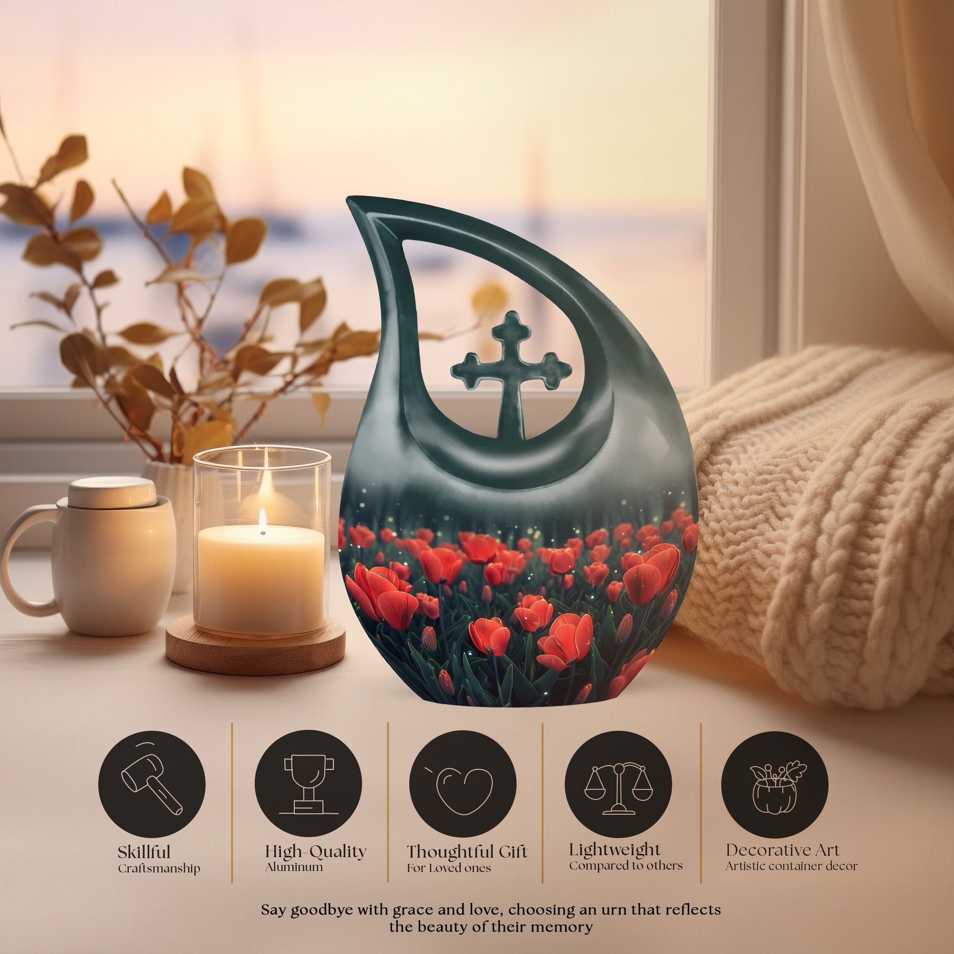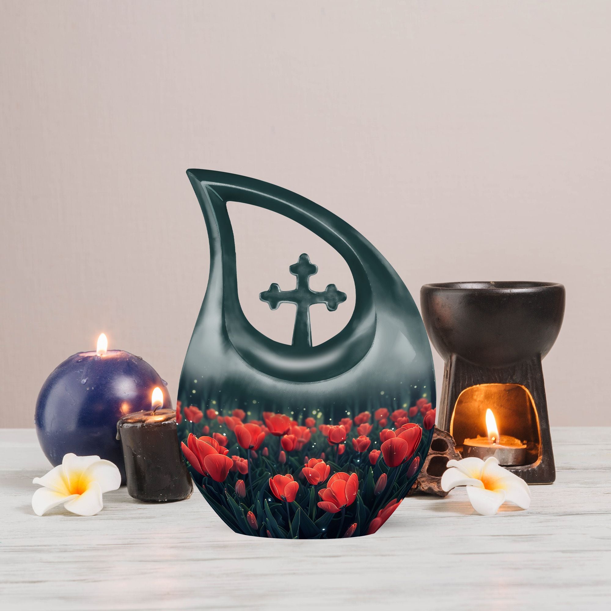 The Red Tulip Funeral Urn embodies grace, love, and everlasting remembrance. Crafted for those wishing to cherish a life filled with warmth and devotion, this urn offers a heartfelt tribute to your loved one. The deep red tulip design represents enduring affection, making it a meaningful choice for families seeking large urns for human ashes adult female or urns for ashes adult male large that express love beyond words.