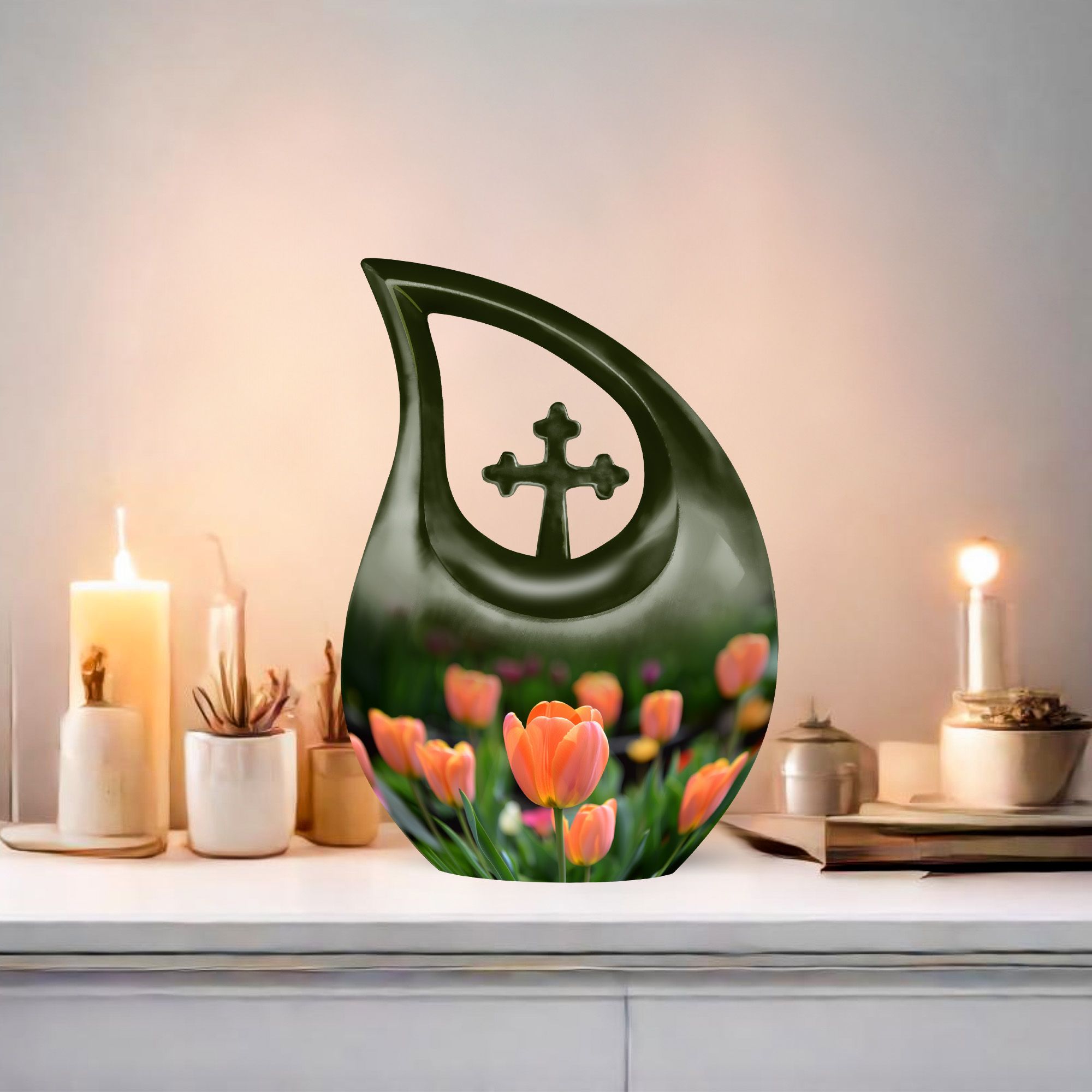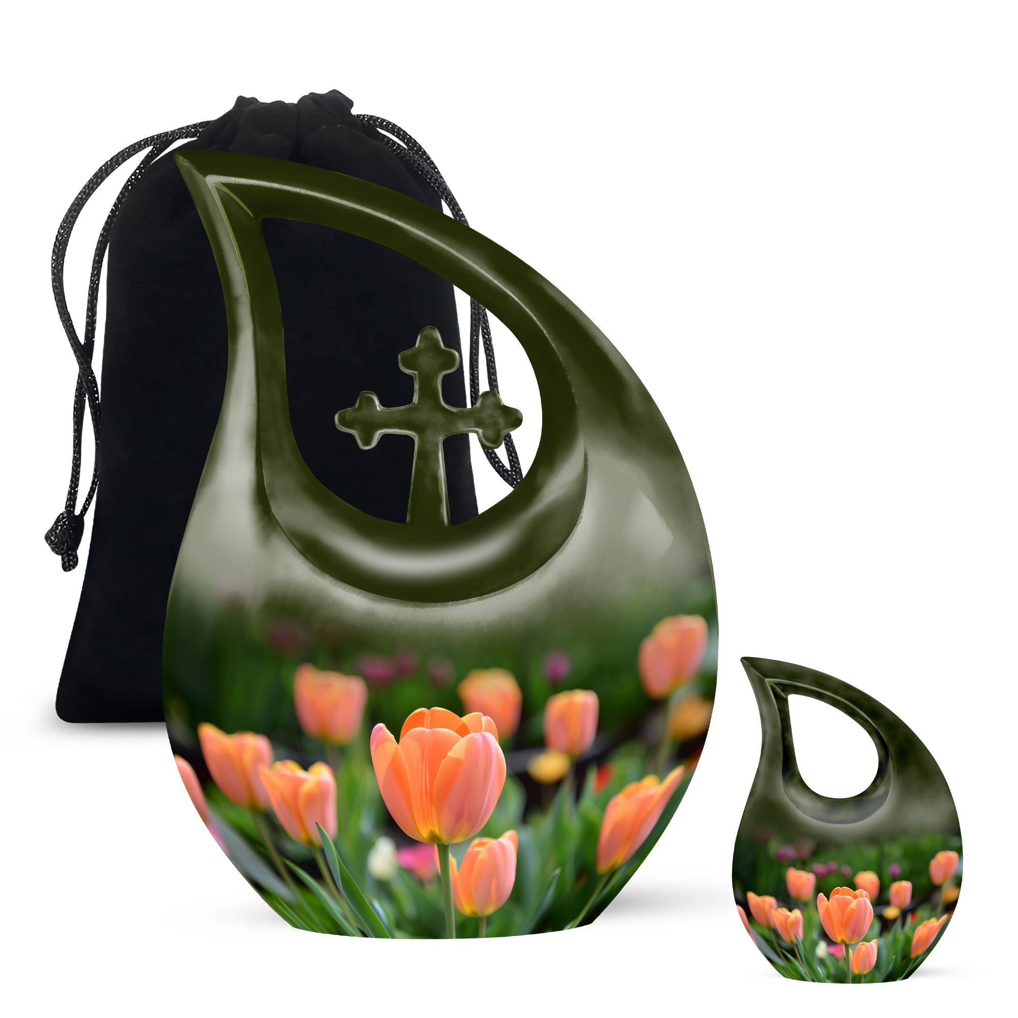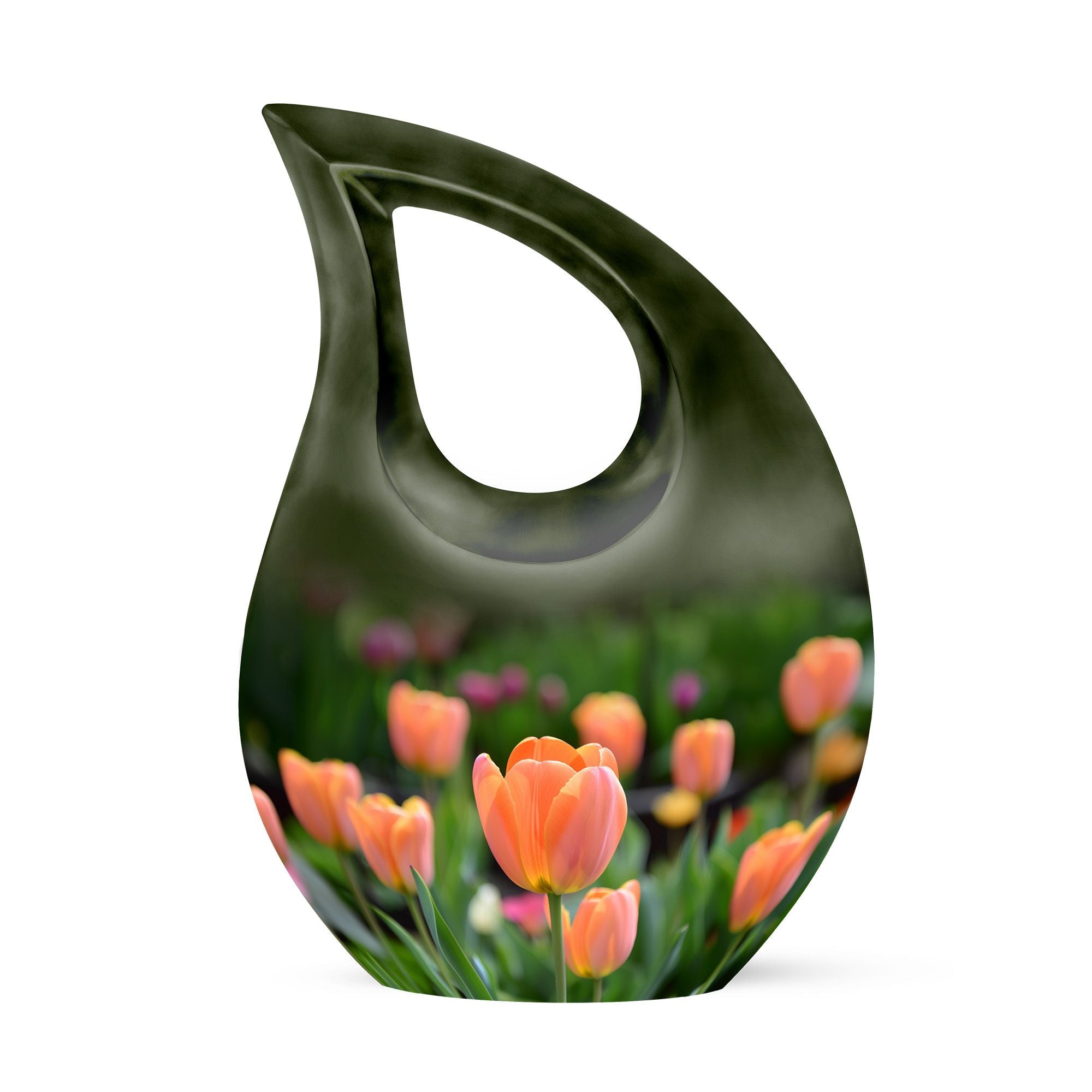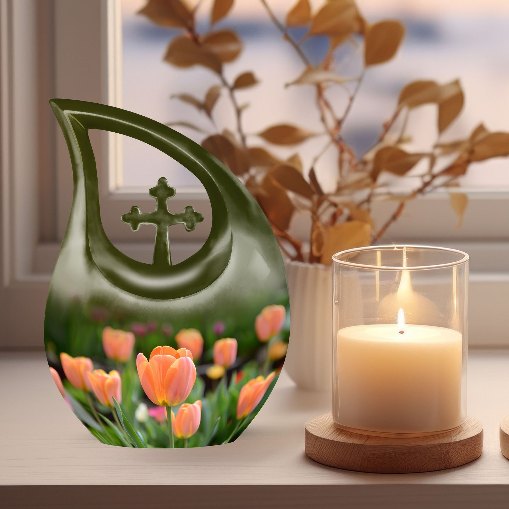 The Orange Tulip Cremation Urn is a heartfelt tribute to a life filled with warmth, beauty, and compassion. Designed to represent renewal and eternal love, this elegant cremation urn for ashes small offers a meaningful way to keep memories close. With its graceful tulip design and rich olive green finish, it brings comfort and serenity to every remembrance space.