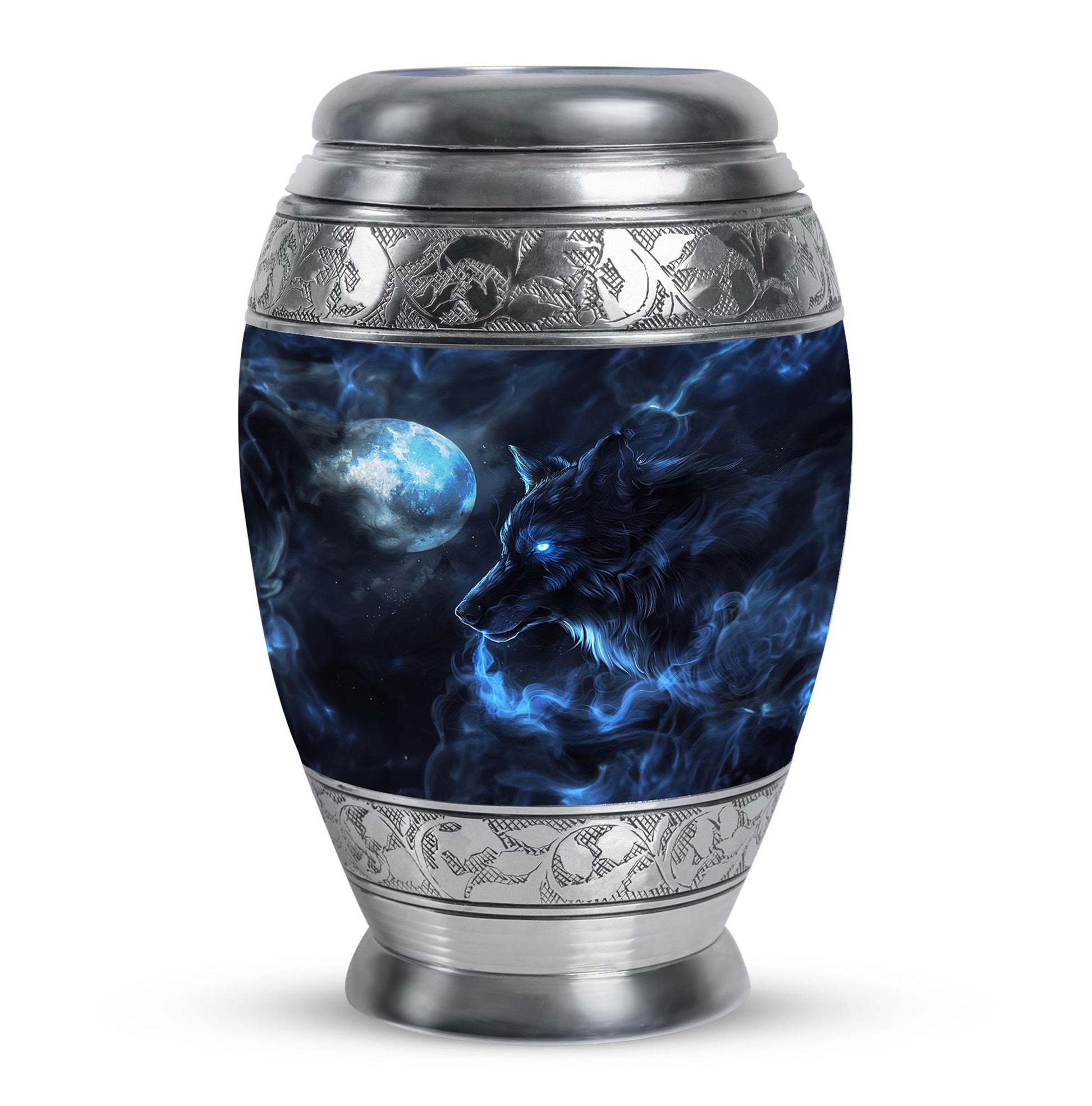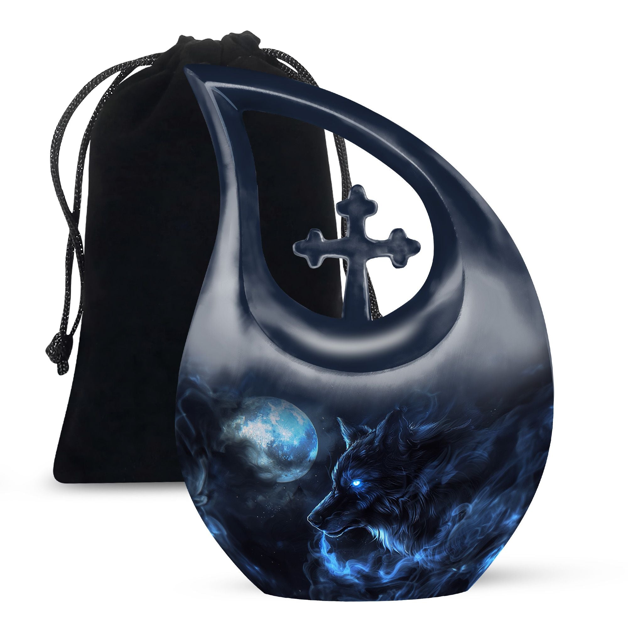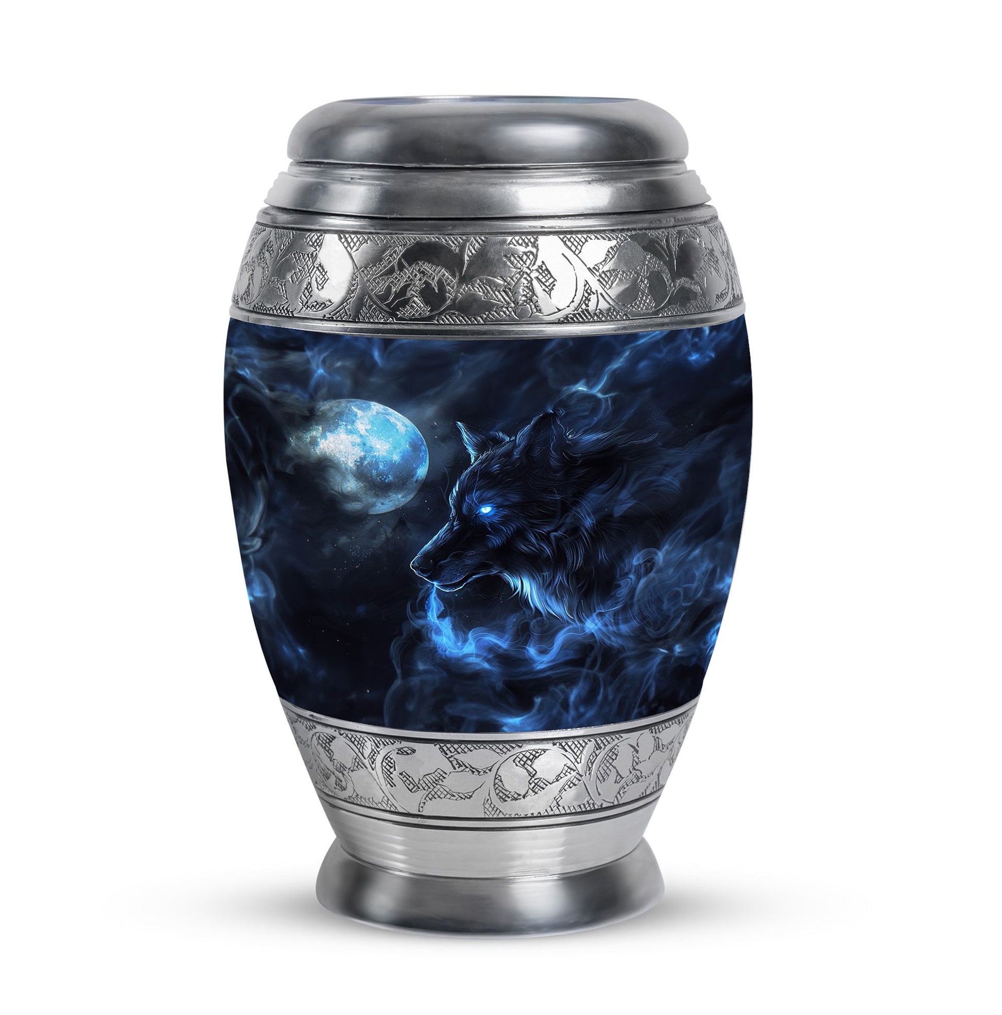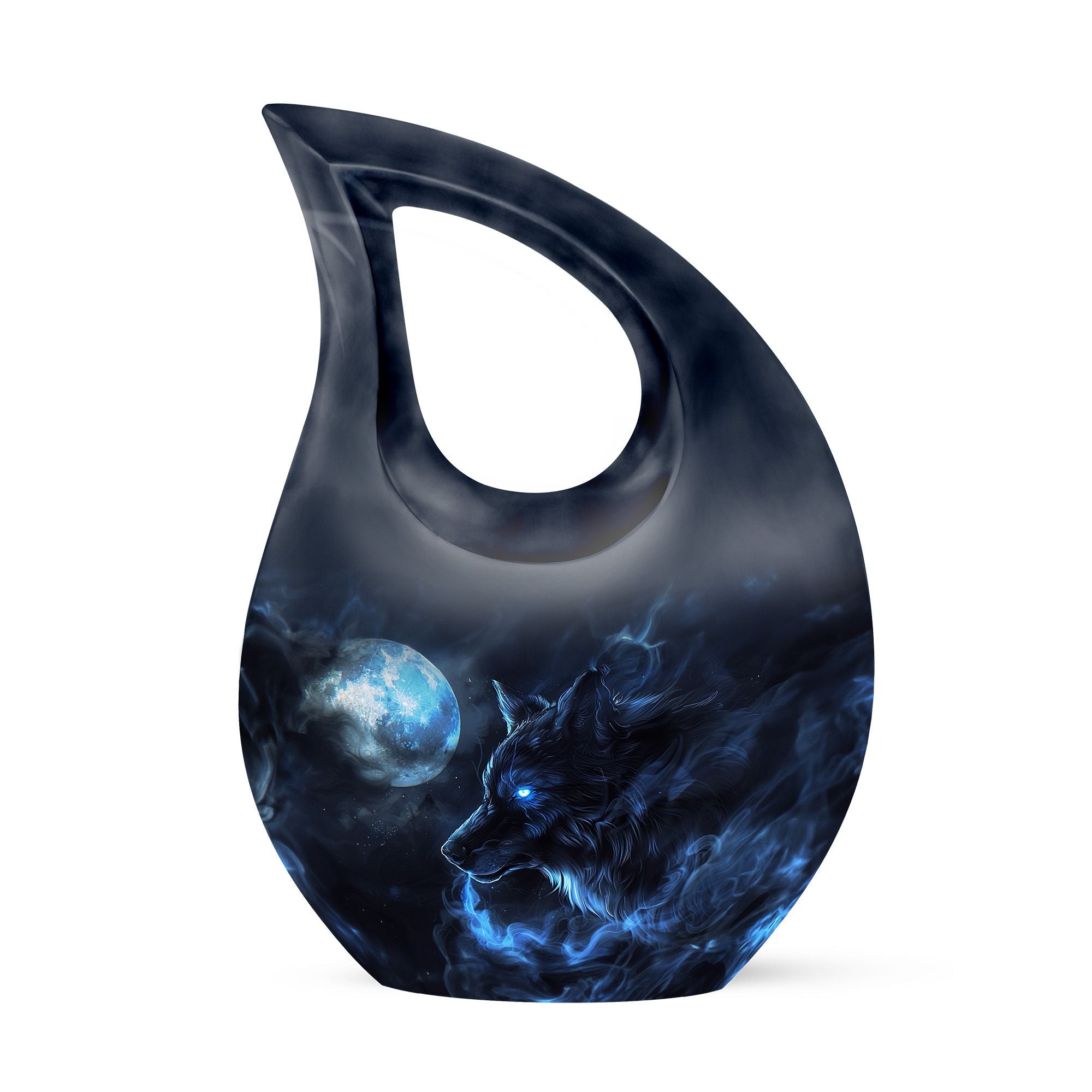 Men may be honored with its design as cremation urns for ashes for men, crafted with detailed artistry that speaks of loyalty, guidance, and courage. The wolf howling urn theme enhances its spiritual resonance, offering a unique and meaningful alternative to traditional urns.