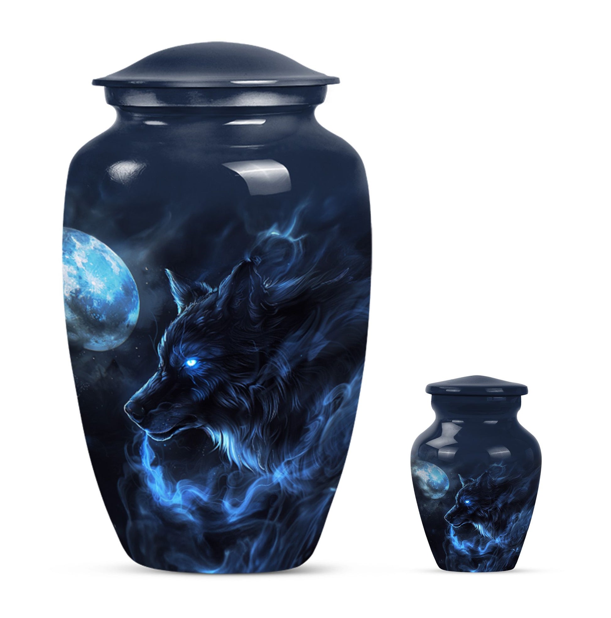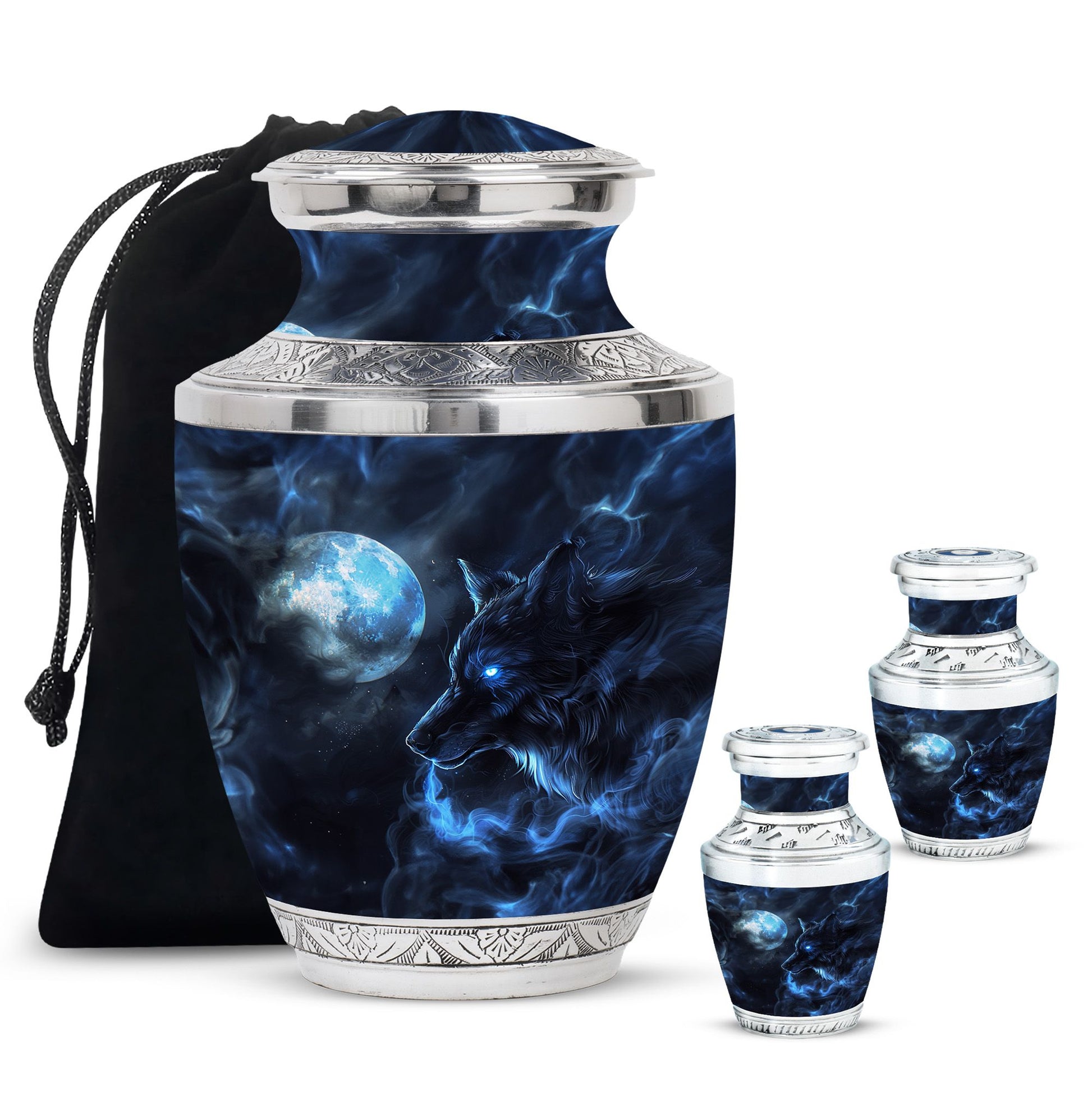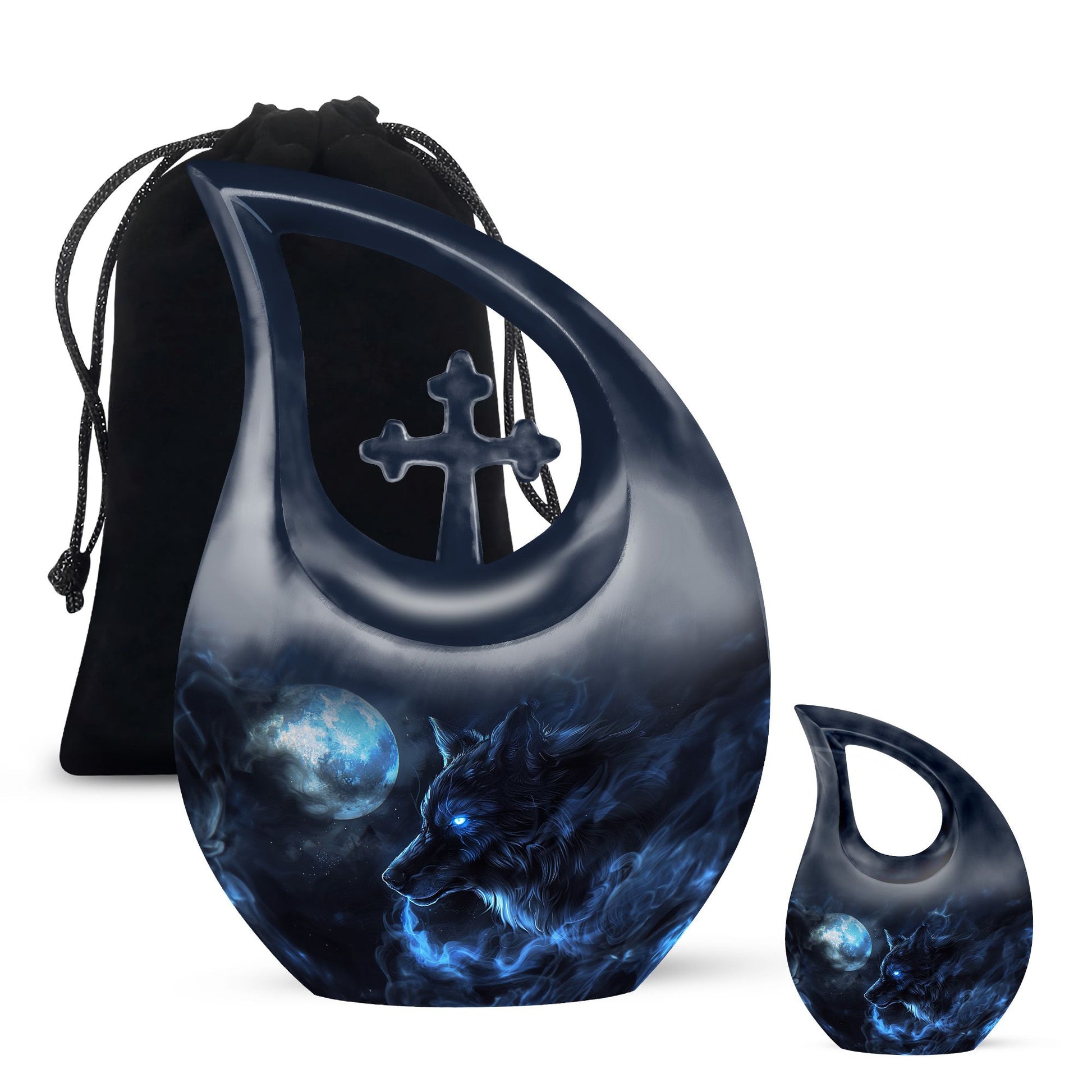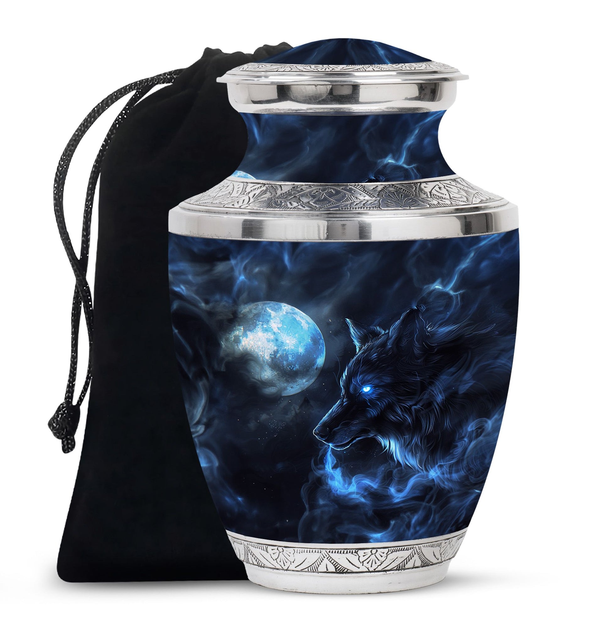 Men may be honored with its design as cremation urns for ashes for men, crafted with detailed artistry that speaks of loyalty, guidance, and courage. The wolf howling urn theme enhances its spiritual resonance, offering a unique and meaningful alternative to traditional urns.