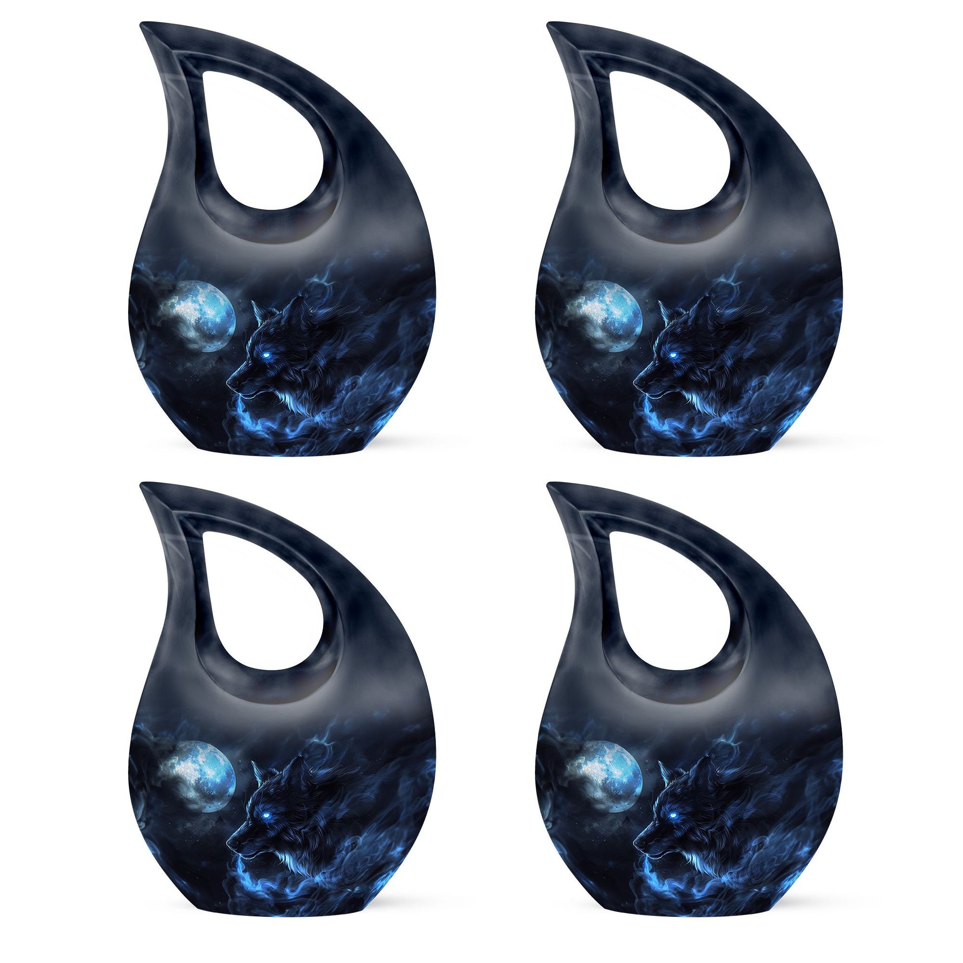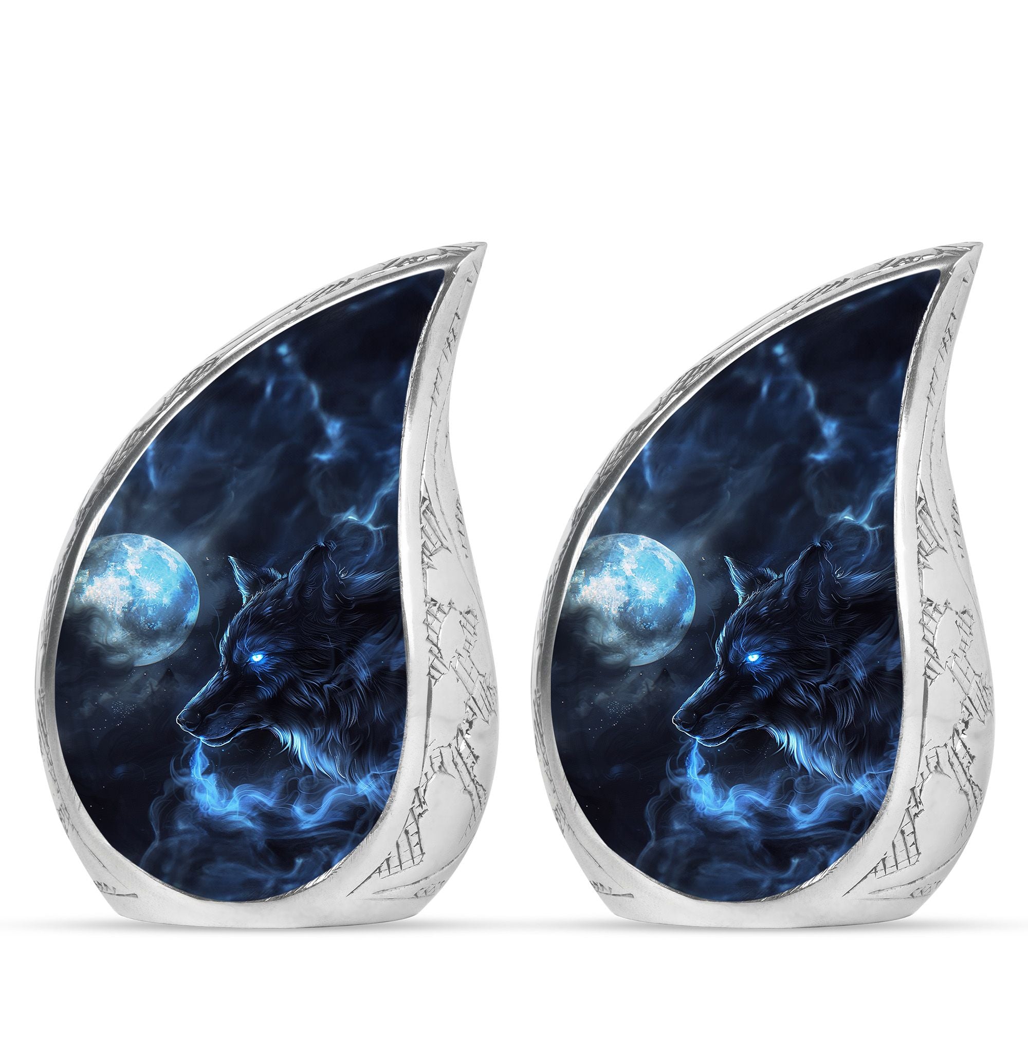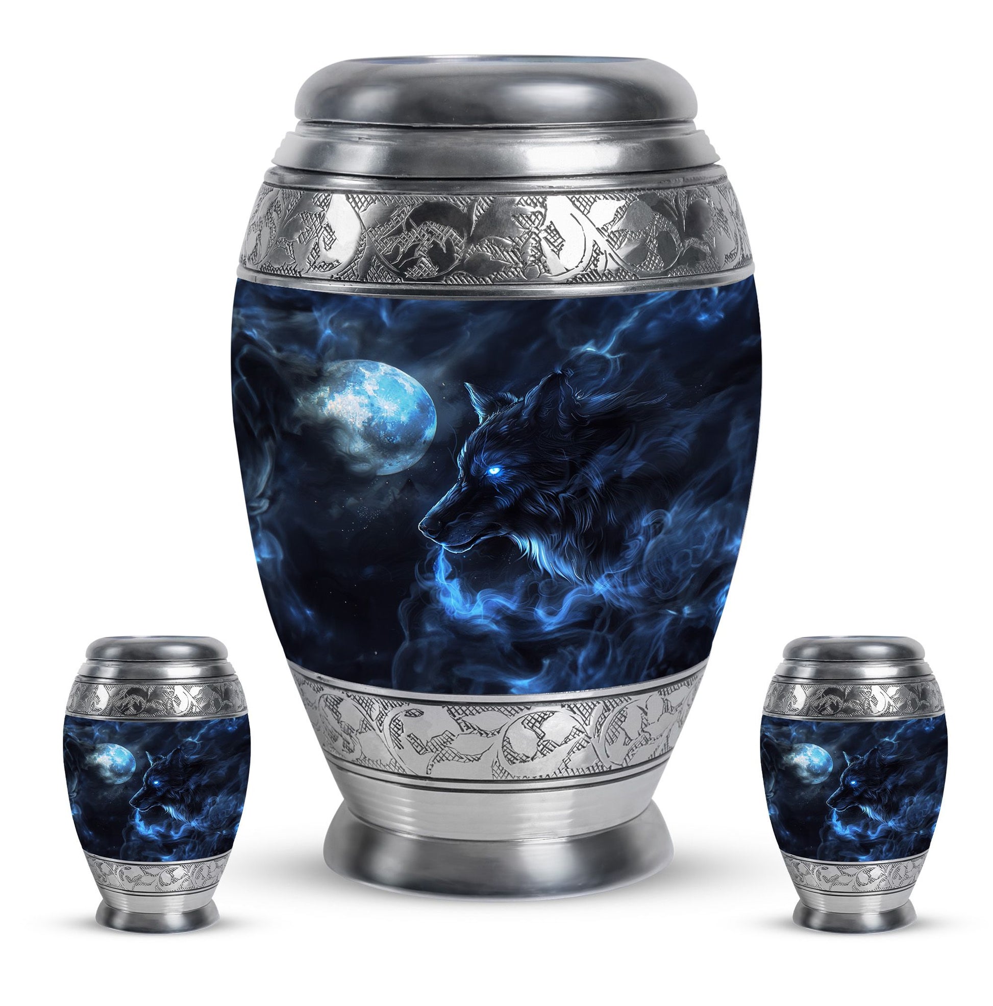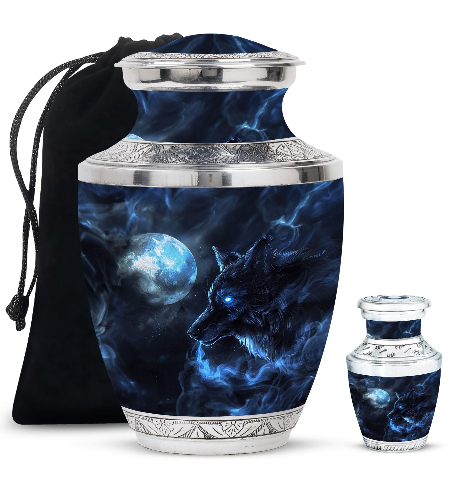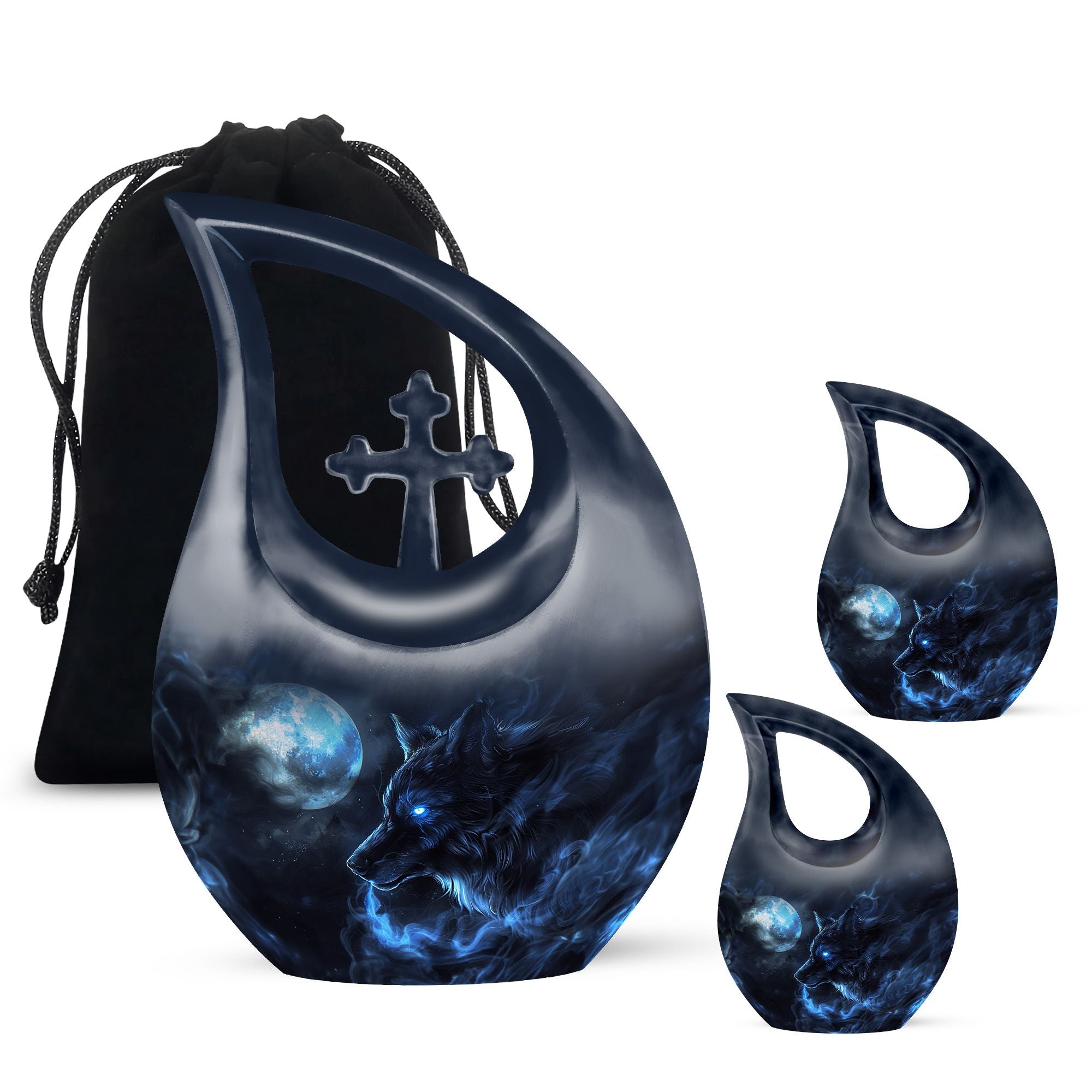 Men may be honored with its design as cremation urns for ashes for men, crafted with detailed artistry that speaks of loyalty, guidance, and courage. The wolf howling urn theme enhances its spiritual resonance, offering a unique and meaningful alternative to traditional urns.