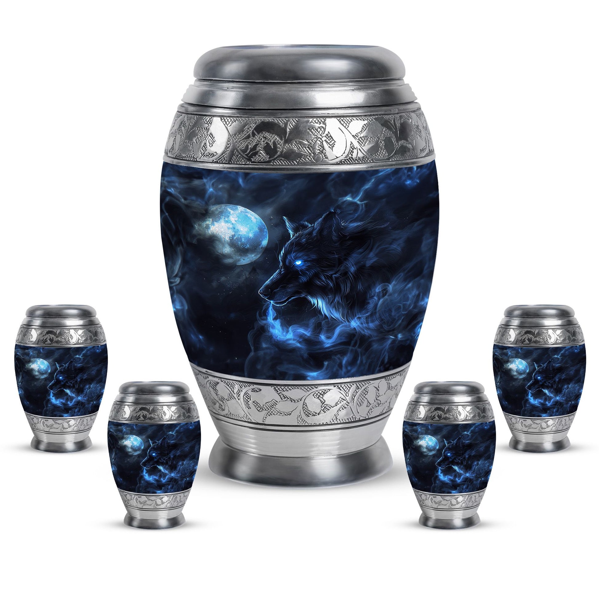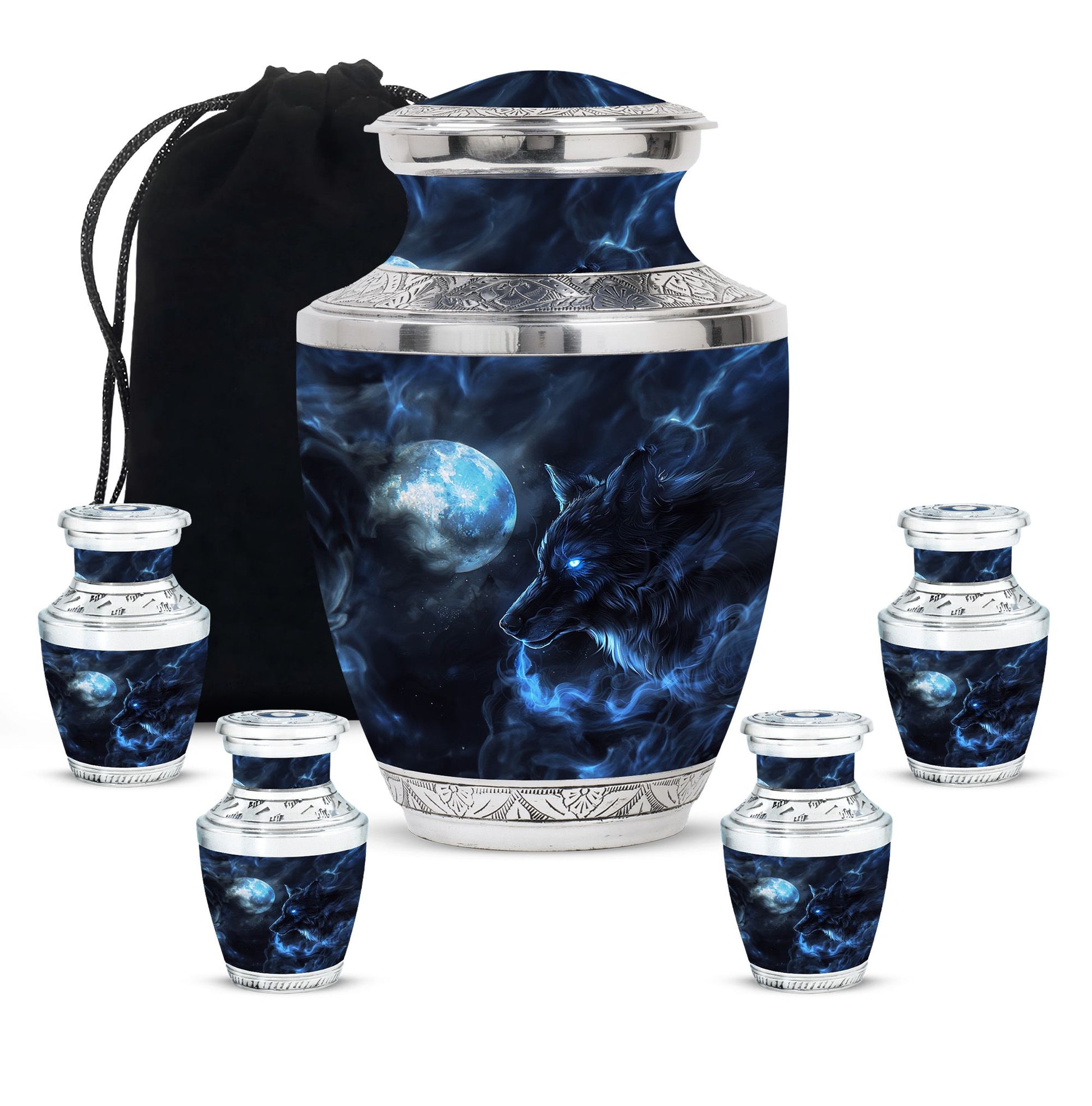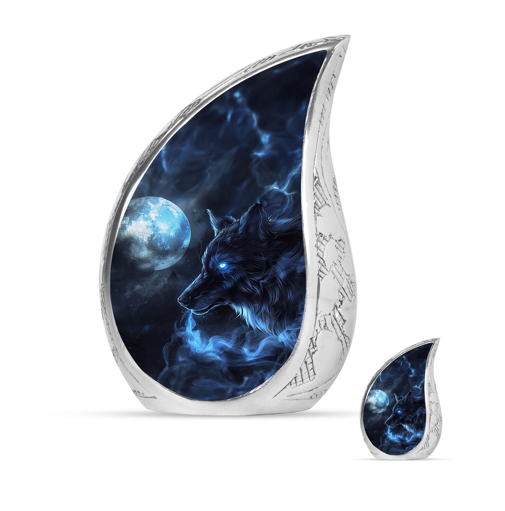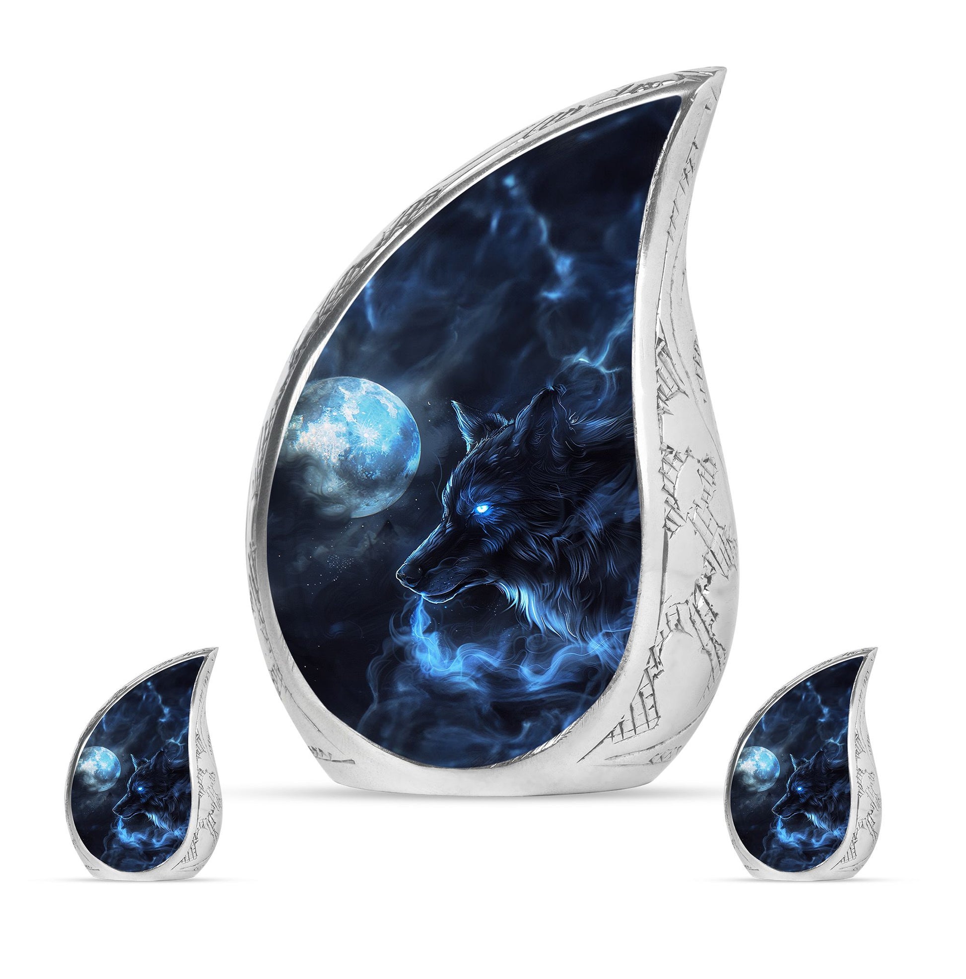 Men may be honored with its design as cremation urns for ashes for men, crafted with detailed artistry that speaks of loyalty, guidance, and courage. The wolf howling urn theme enhances its spiritual resonance, offering a unique and meaningful alternative to traditional urns.