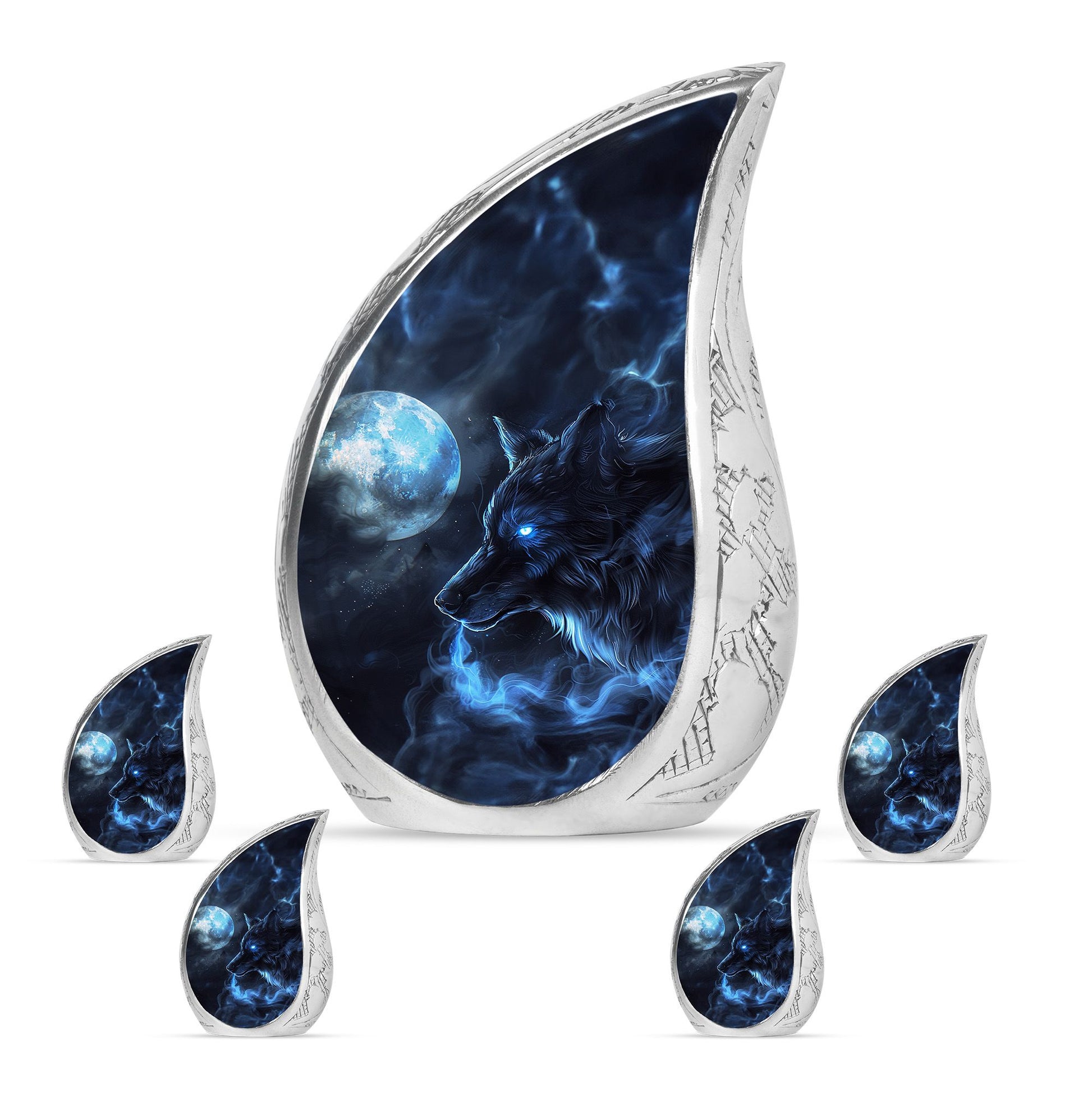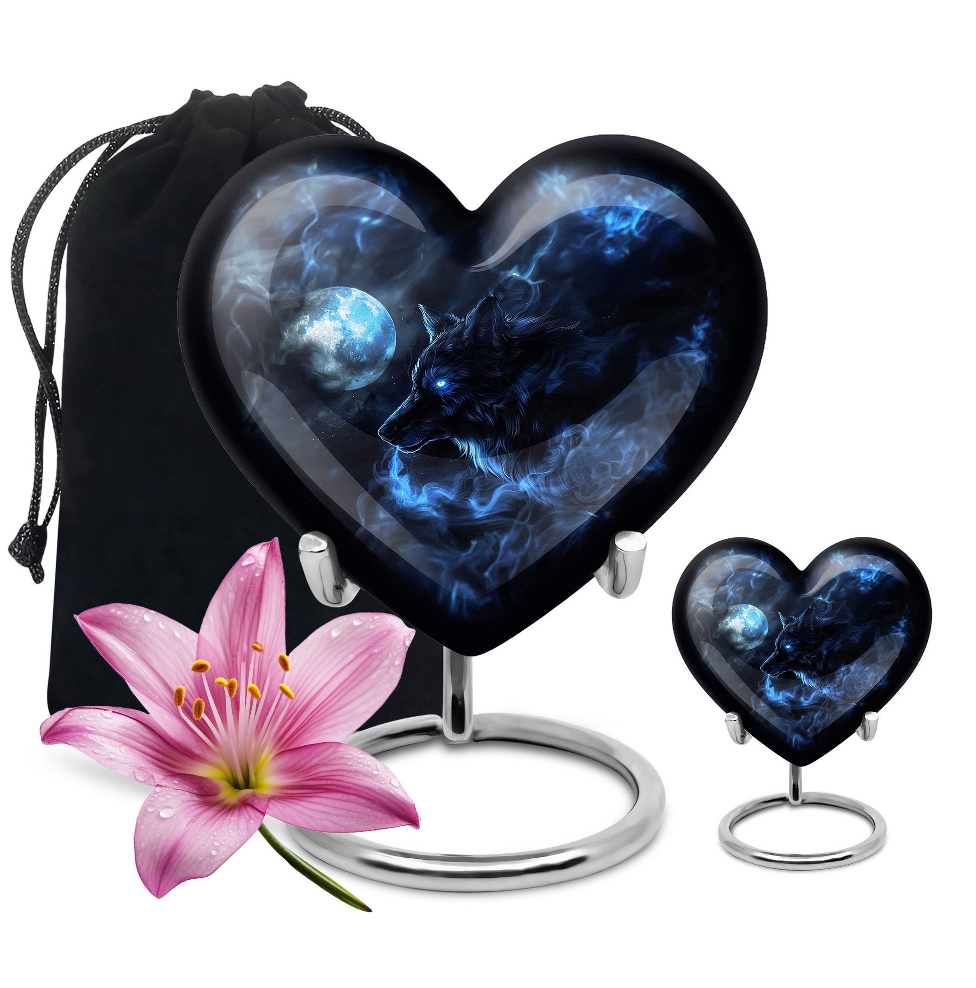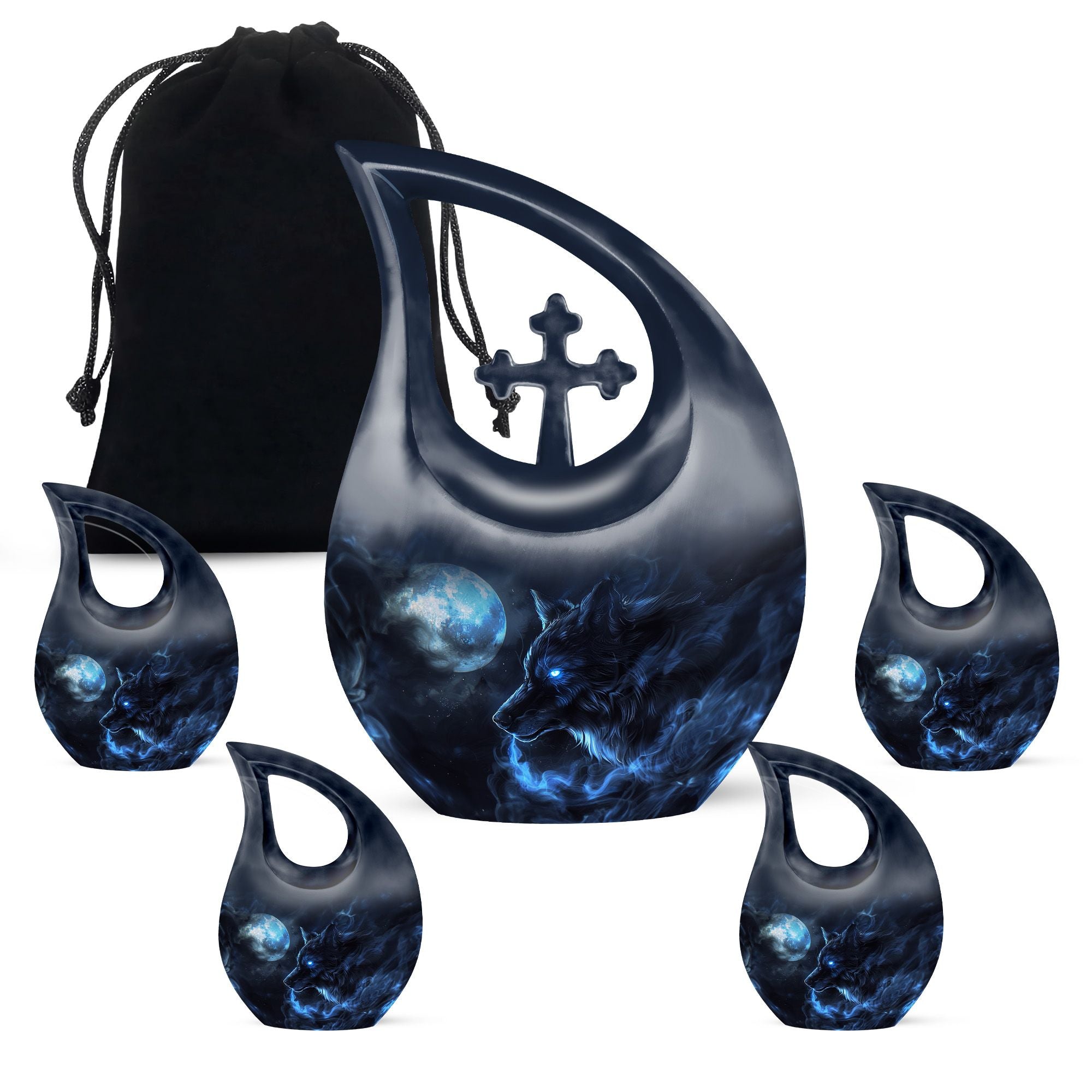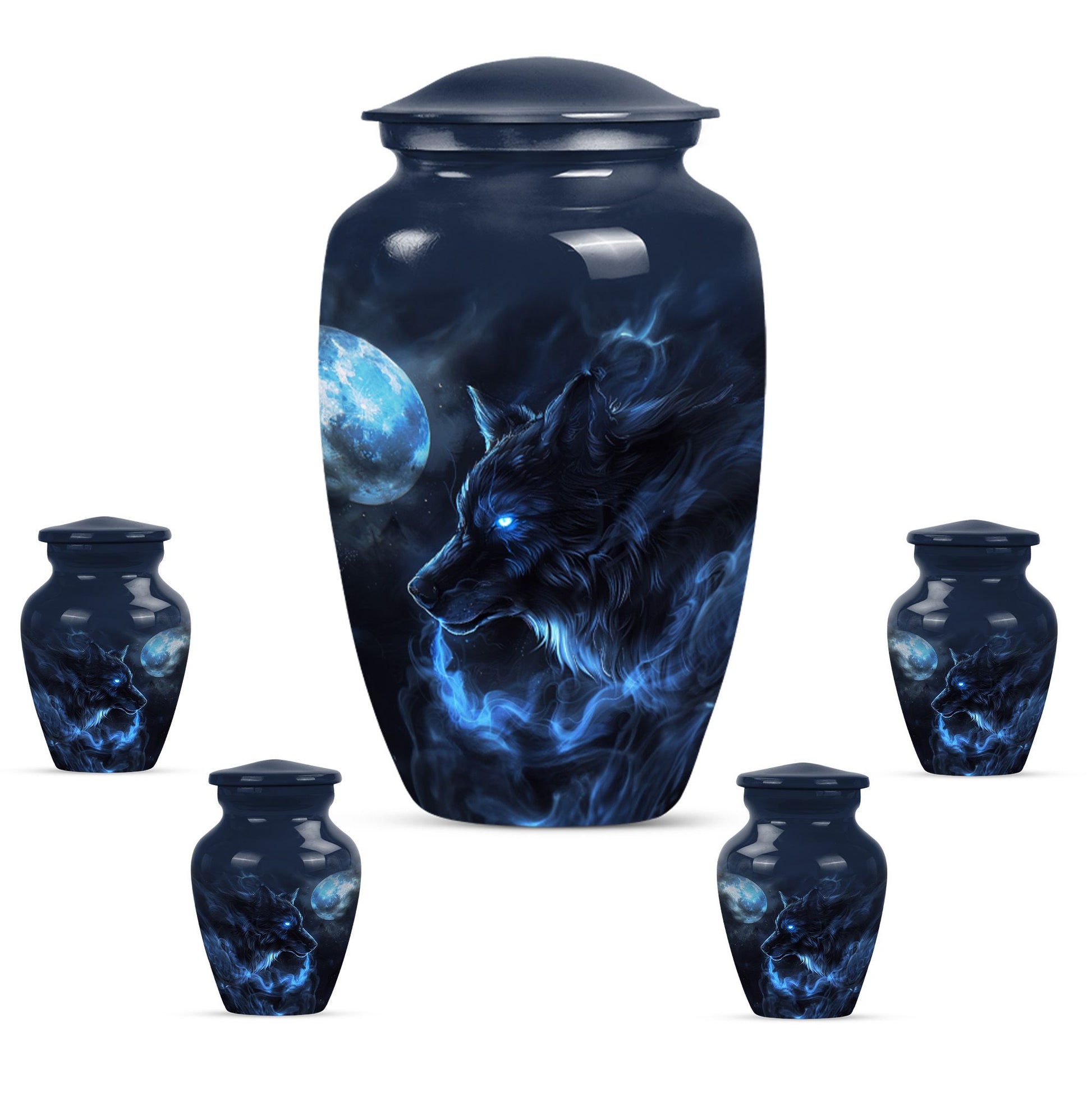 Men may be honored with its design as cremation urns for ashes for men, crafted with detailed artistry that speaks of loyalty, guidance, and courage. The wolf howling urn theme enhances its spiritual resonance, offering a unique and meaningful alternative to traditional urns.