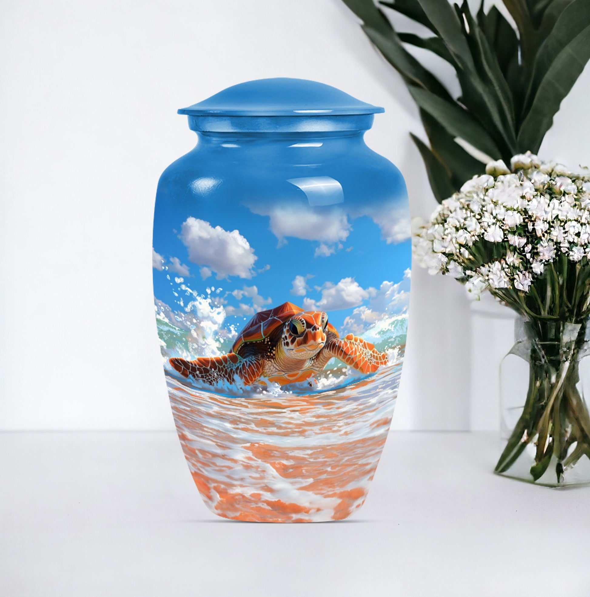 A memorial urn should reflect the beauty of life and the peace of eternity. This turtle urn is crafted to symbolize wisdom and endurance, making it a heartfelt tribute for families seeking a meaningful beach urn or ocean urn to honor their loved ones.