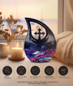 This artistic memorial urn serves as a heartfelt tribute—ideal for home display, burial, or pairing with keepsake pieces—bringing comfort to families honoring a loved one with grace and beauty.