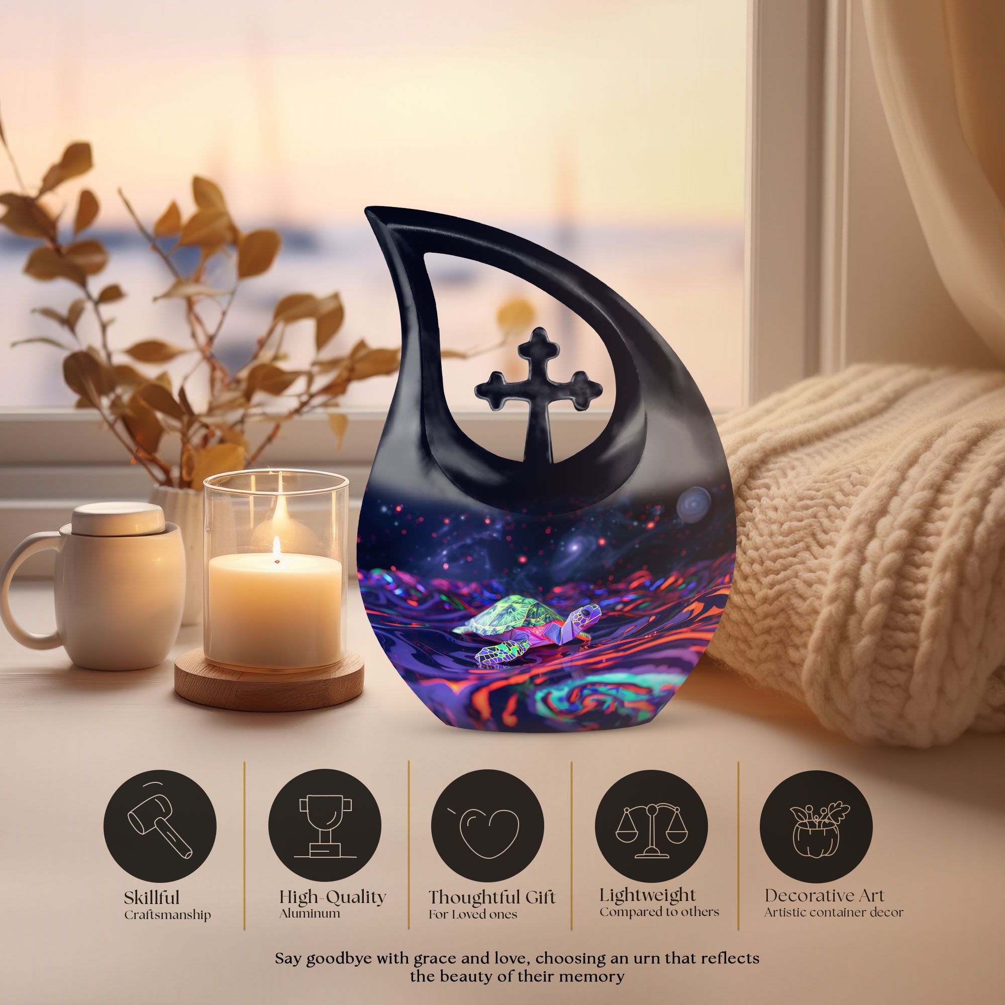 The Neon Turtle Cremation Urn offers a meaningful and artistic way to honor the life of a cherished loved one. Its vibrant turtle design symbolizes protection, longevity, and peaceful journeys—providing comfort to families seeking cremation urns adults, cremation urns for adult ashes small, or a beautifully detailed urn adult cremation option.