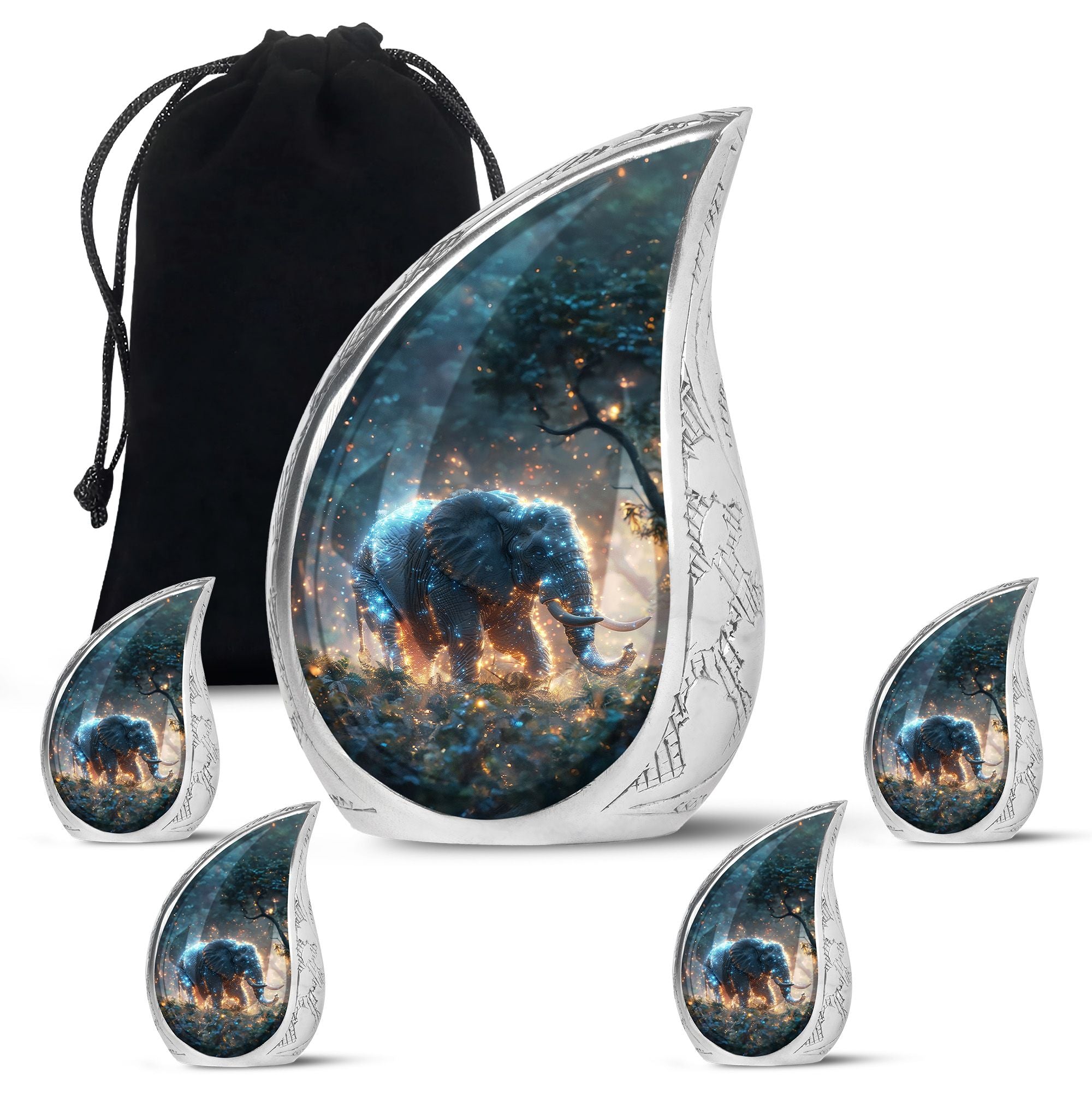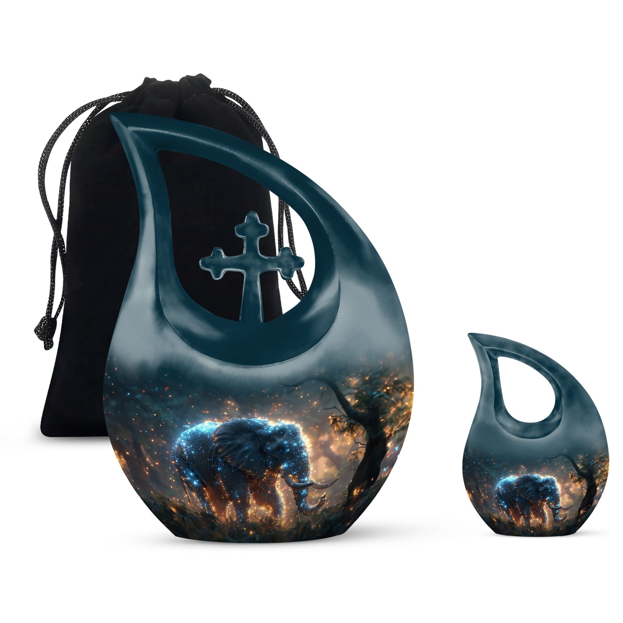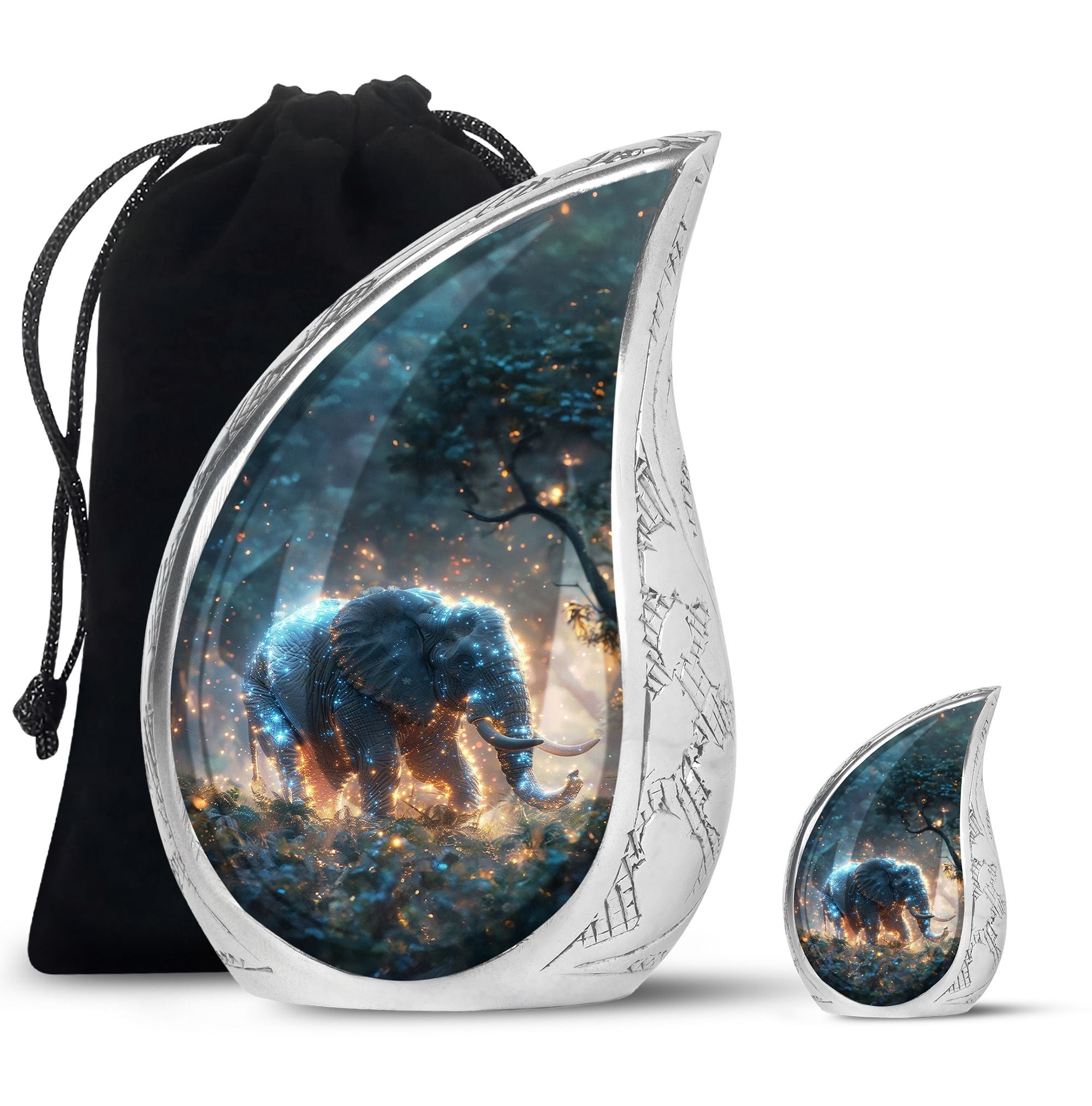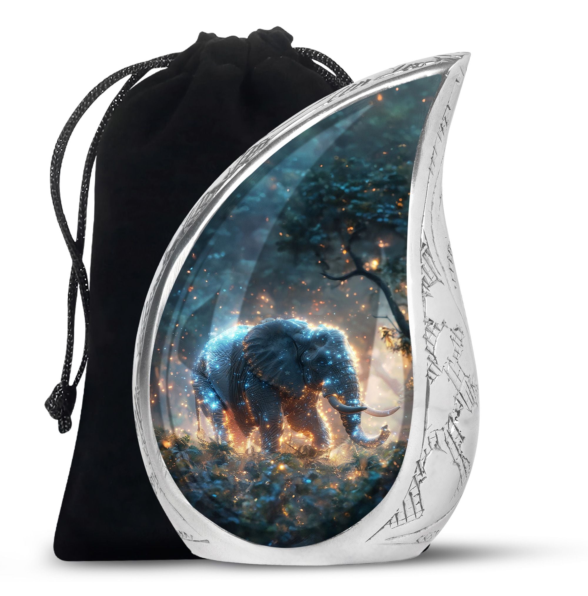 Crafted with premium aluminum, this urn for human ashes adult men and women combines durability with artistry. Its intricate elephant design against a serene night forest backdrop reflects wisdom, strength, and tranquility. Whether you seek mens urns for human ashes or a cremation urn women would cherish, its versatile design ensures it serves as both a dignified memorial and a timeless decorative piece in any setting.