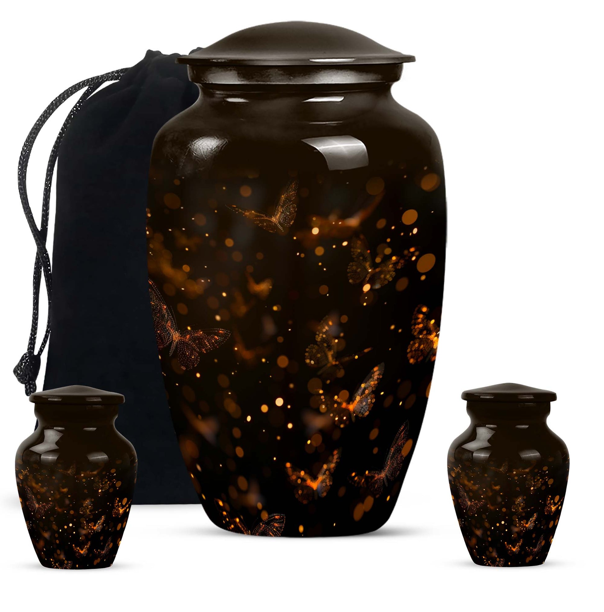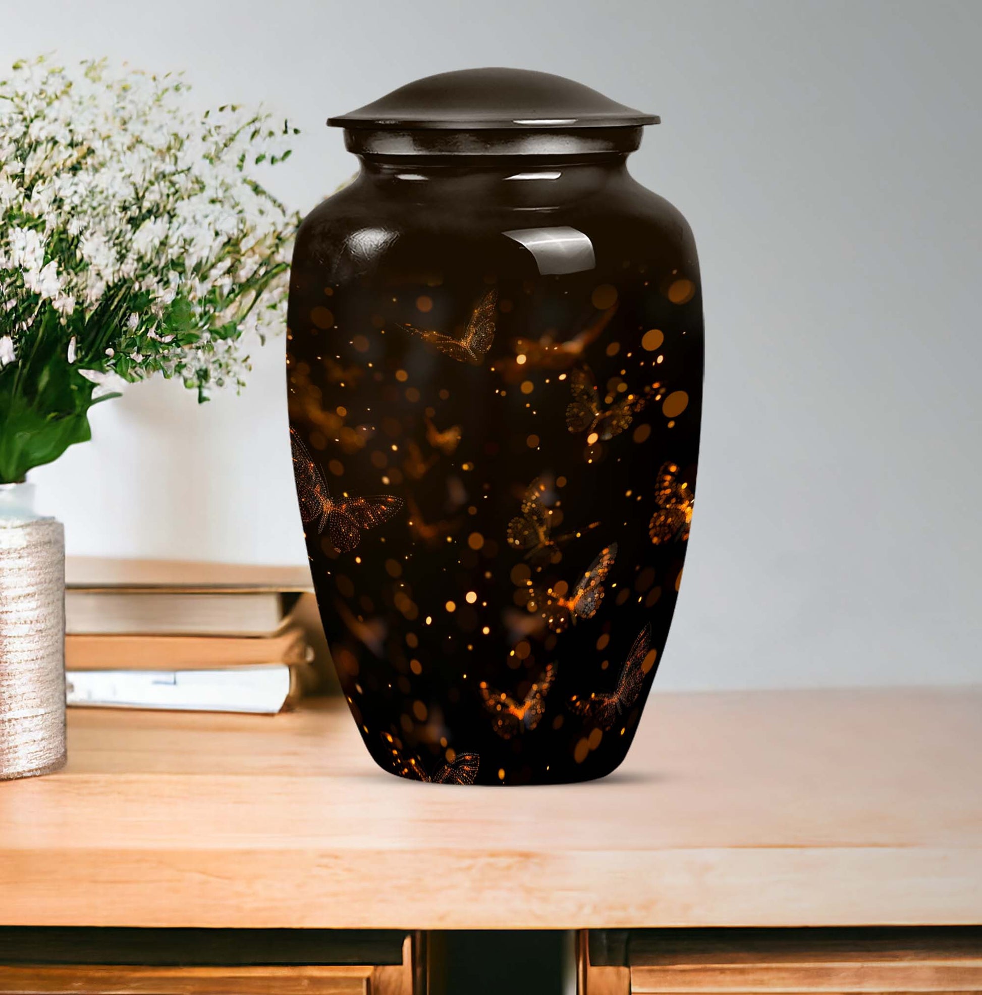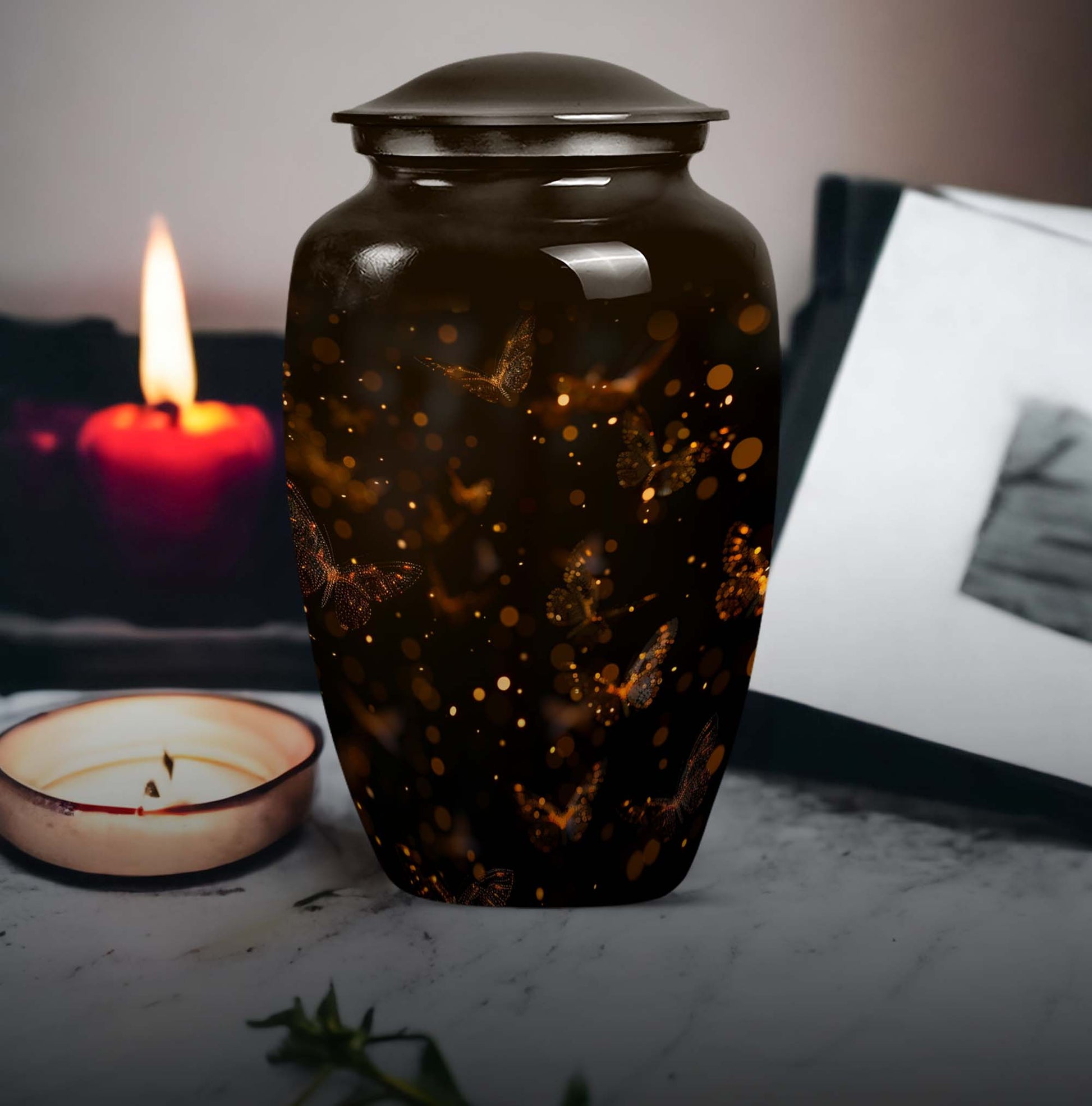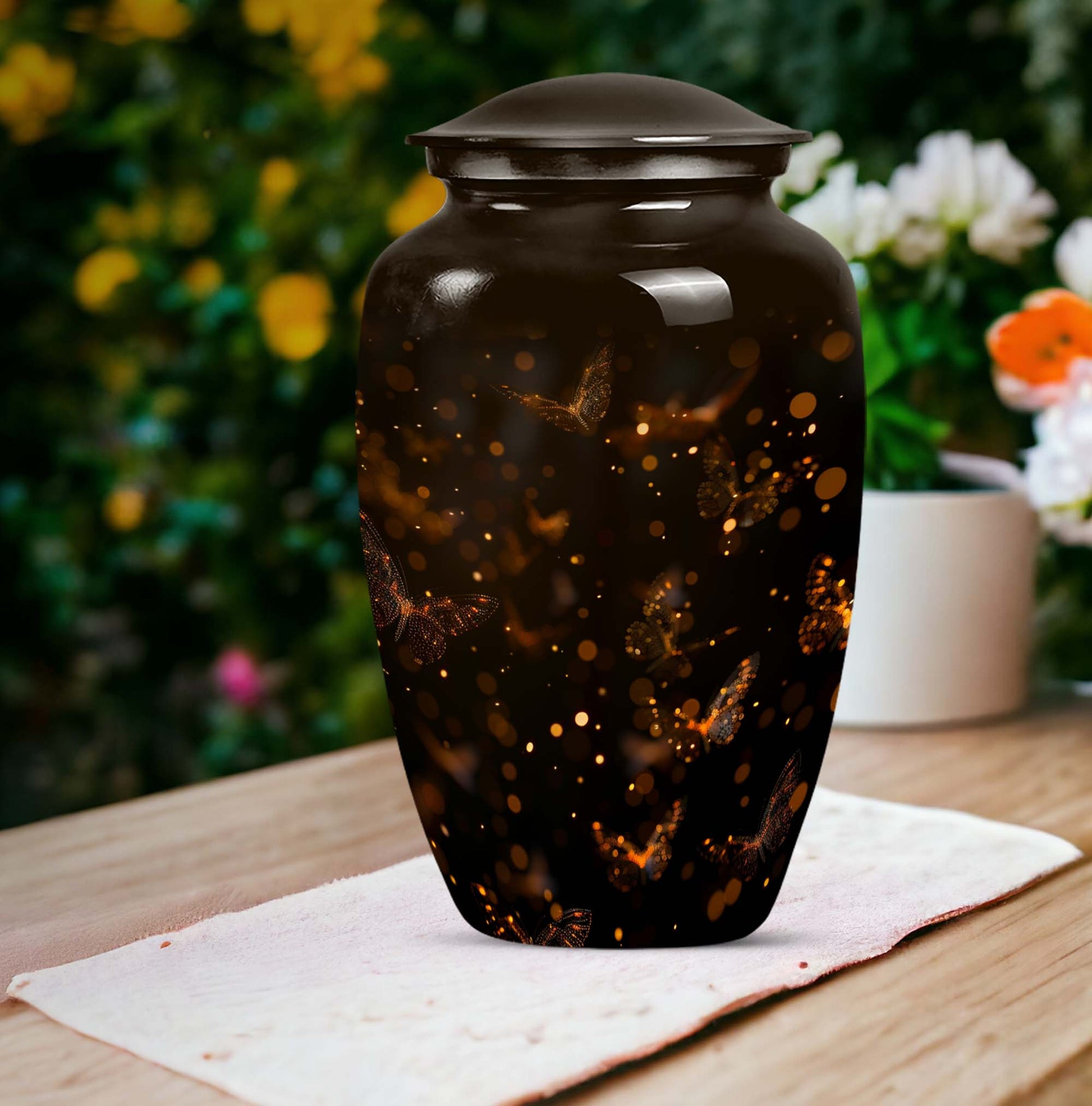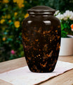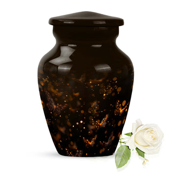 Find both comfort and elegance in one product with our twilight forest urn, an extraordinary choice from our Large Urns collection. Let this 10 Inch urn be an embodiment of honor and respect for your departed loved ones. Crafted with the highest attention to detail from durable and robust aluminium, it stands at an impressive 10 inches in height, and weights 3.3 pounds, ensuring it maintains its presence in any setting. The capacity of this urn is extensive, holding up to 200 cubic inches of ashes. Despite its abstract theme, a sublime sense of serenity flows from every curve of its classic design. Customization options are available to give you the possibility of personalizing this urn with engraved names, adding a personal touch that cannot be surpassed. As part of the package, we've included a velvet pouch, perfect for the safe containment of the ashes. This isn't just a cremation urn, it's a tribute to life and love. Ideal not only for women but equally accommodating for men, it's ready to serve as a heart-touching memorial within your household.