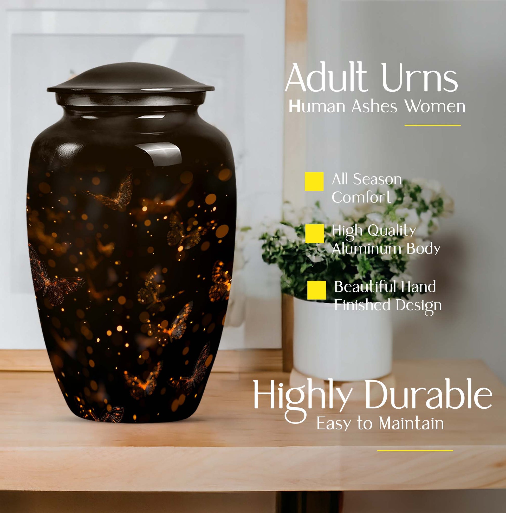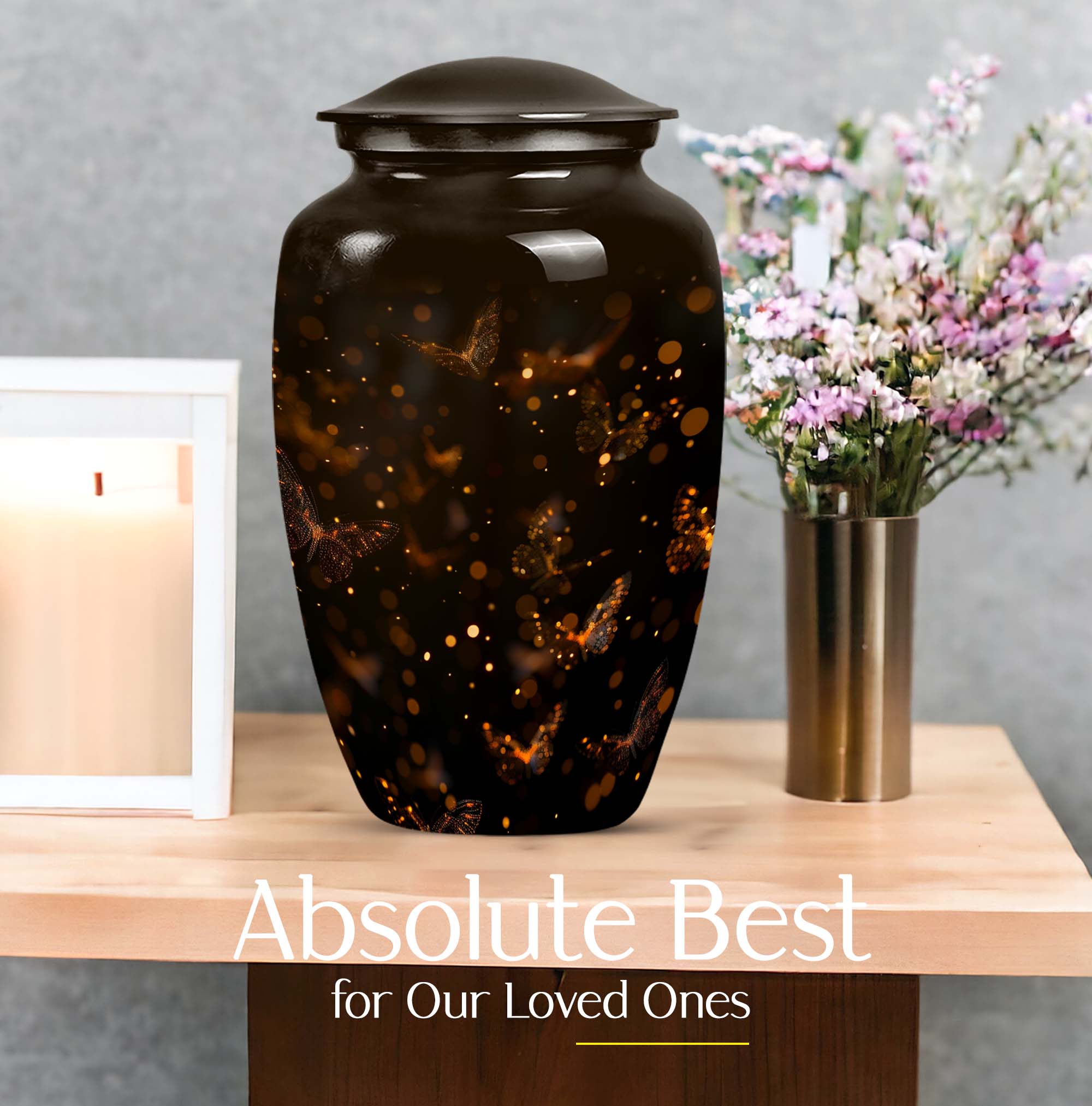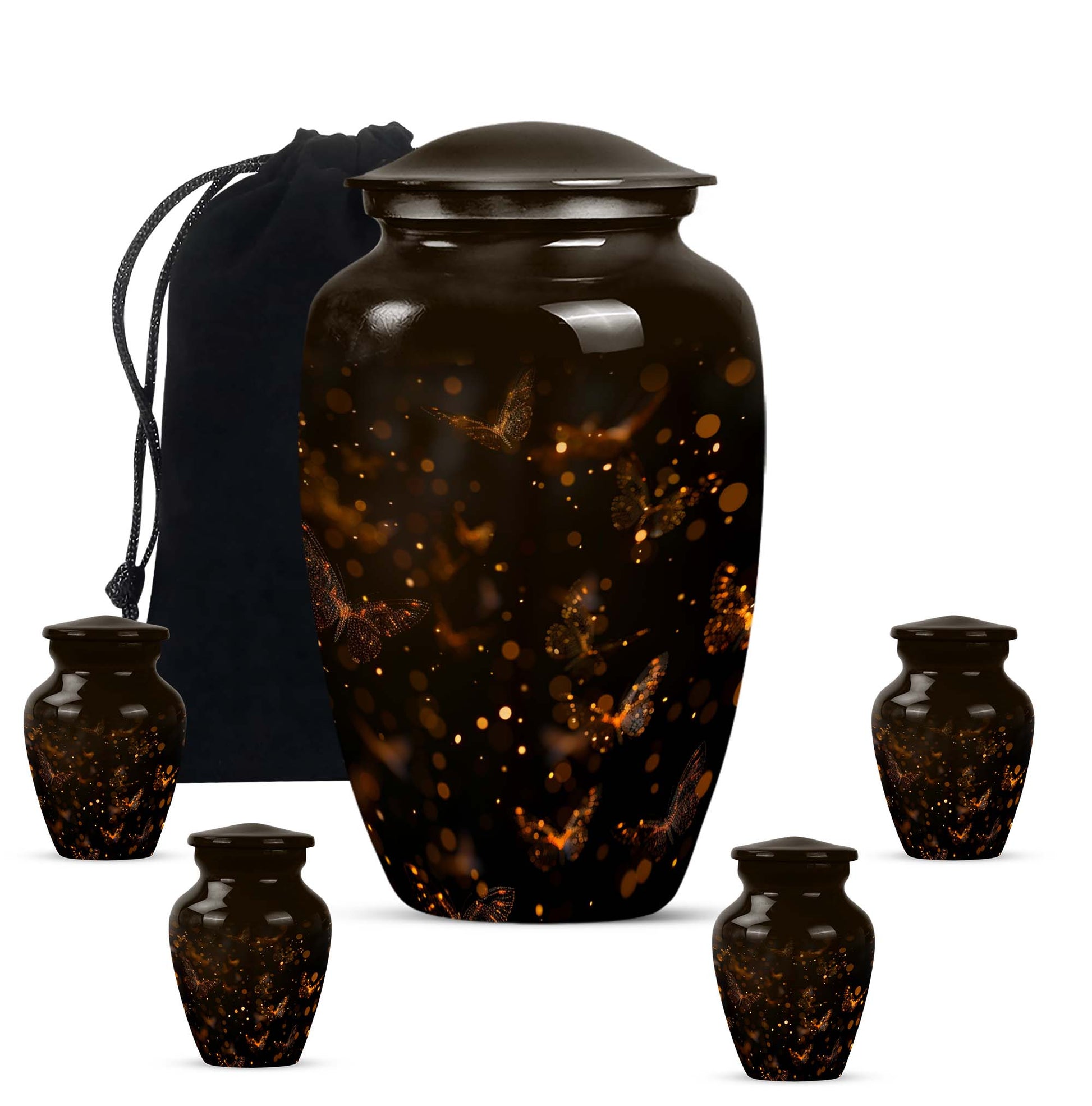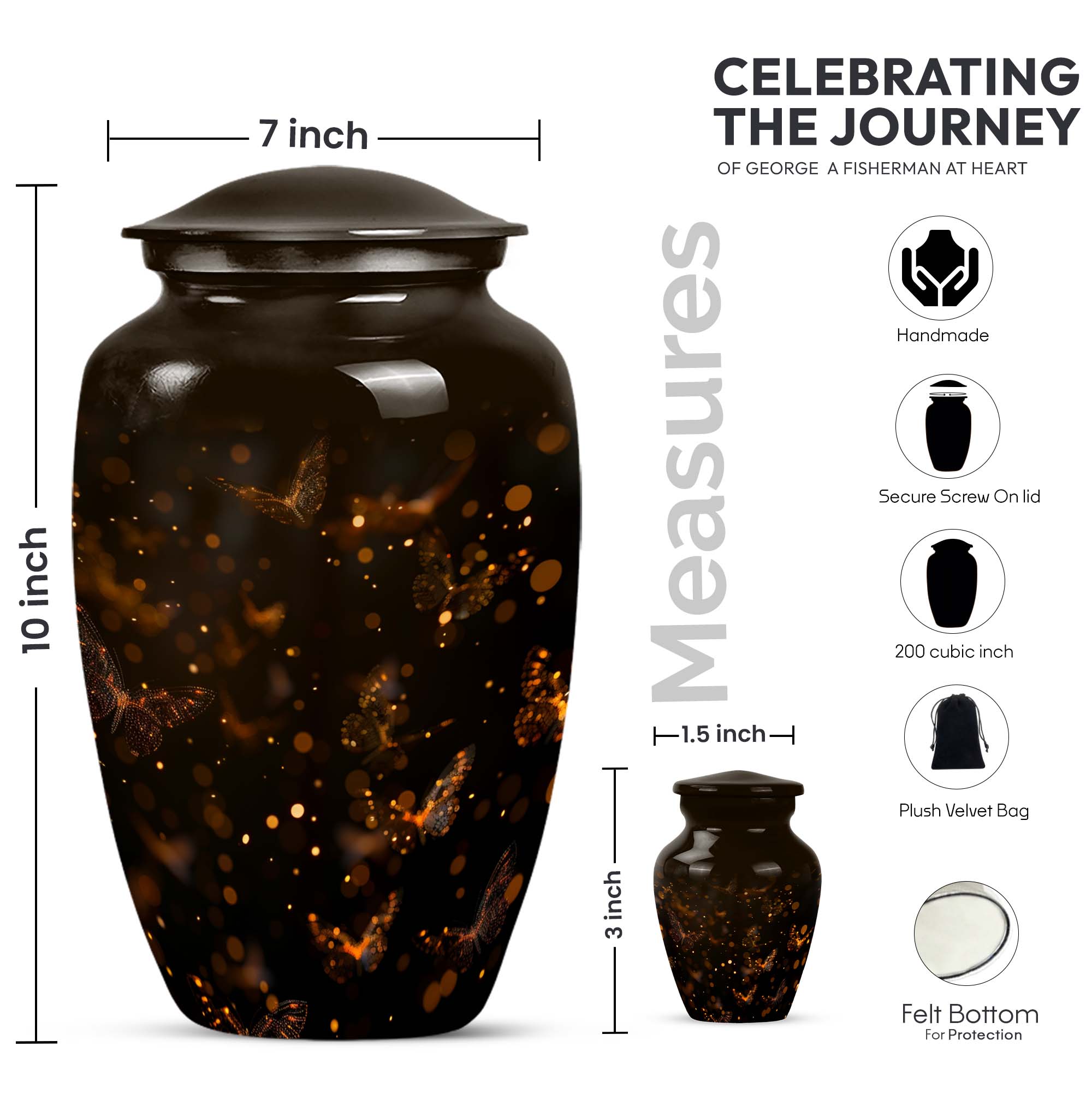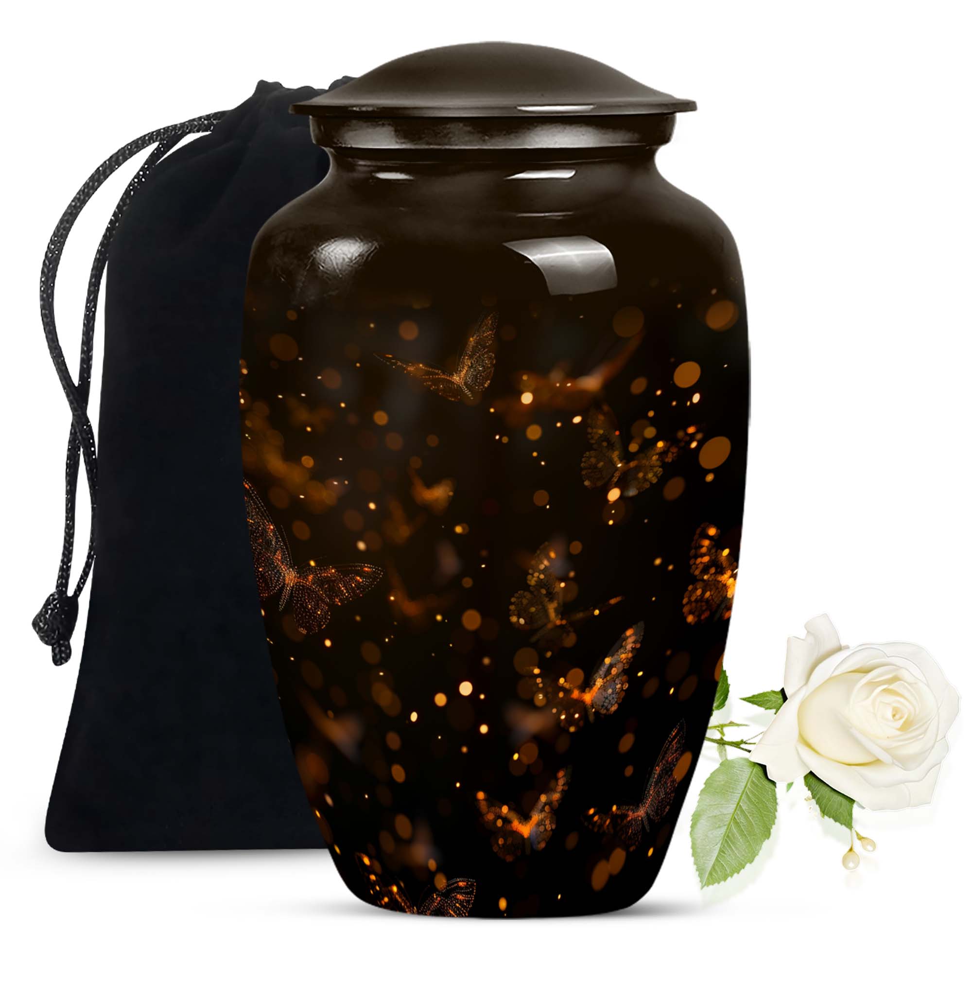 Find both comfort and elegance in one product with our twilight forest urn, an extraordinary choice from our Large Urns collection. Let this 10 Inch urn be an embodiment of honor and respect for your departed loved ones. Crafted with the highest attention to detail from durable and robust aluminium, it stands at an impressive 10 inches in height, and weights 3.3 pounds, ensuring it maintains its presence in any setting. The capacity of this urn is extensive, holding up to 200 cubic inches of ashes. Despite its abstract theme, a sublime sense of serenity flows from every curve of its classic design. Customization options are available to give you the possibility of personalizing this urn with engraved names, adding a personal touch that cannot be surpassed. As part of the package, we've included a velvet pouch, perfect for the safe containment of the ashes. This isn't just a cremation urn, it's a tribute to life and love. Ideal not only for women but equally accommodating for men, it's ready to serve as a heart-touching memorial within your household.