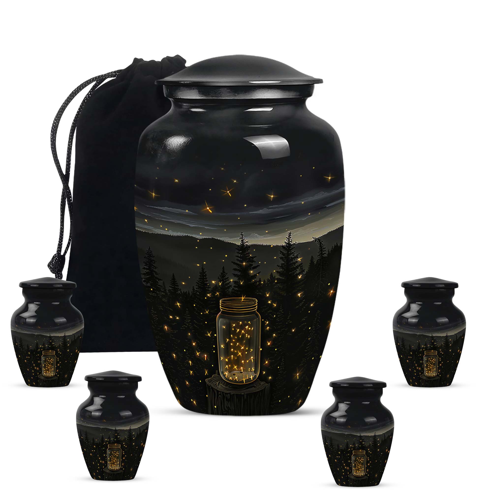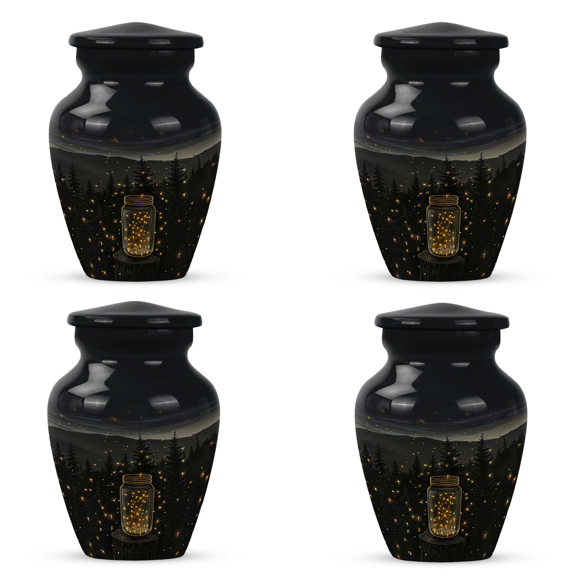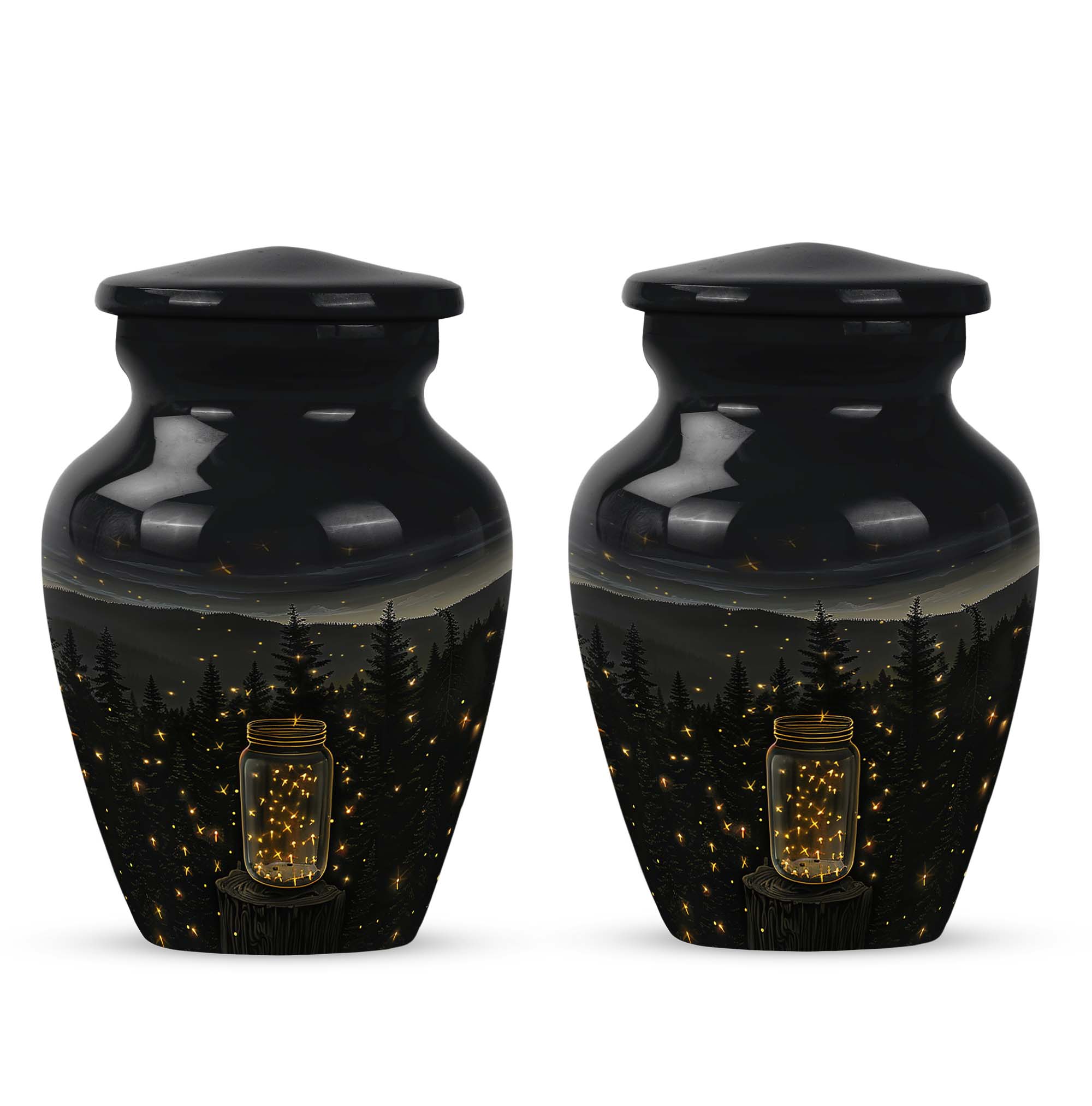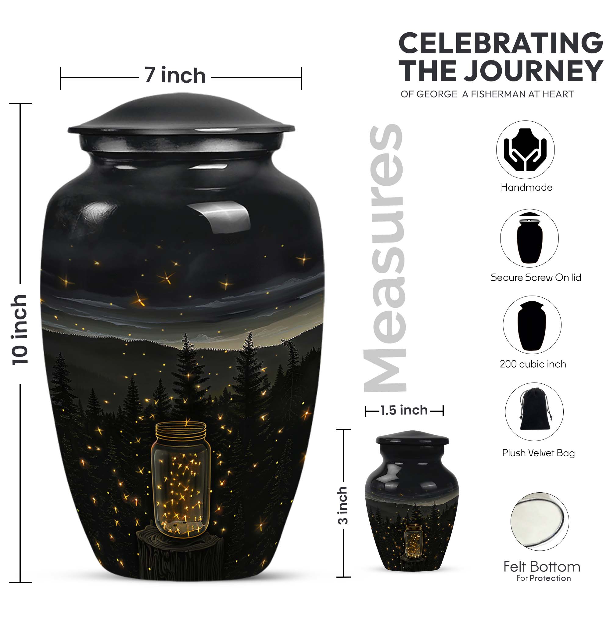 Encapsulate the lasting memory of your loved beloved ones with our Twilight Forest Urn, a significant piece of funeral merchandise designed for an adult male father. With a capacious measurement of 200 cubic inches, this 10-inch cremation urn is noteworthy for its resolute aluminium material, ensuring long-term durability and maintaining the memorial's solemnity. Weighing 3.3 pounds with a height of 10 inches, it's large enough to accommodate and protect the ashes, accessories, and keepsakes in a respectful manner. The urn's abstract theme conjures a dynamic perspective on life and death through its unique, non-conformist visualization. This cremation urn comes with an additional velvet pouch, providing a gentler environment for the containment of ashes, which intensifies the emotional connection and preserves the artifacts. Furthermore, we welcome personal customization, such as engraved names to add a personal touch to this memorial. Notably, this Twilight Forest Urn also fits the keywords: memorial urns for mom, cremation urn for a woman, and urns for cremation ashes, broadening its relevance to potential search queries.