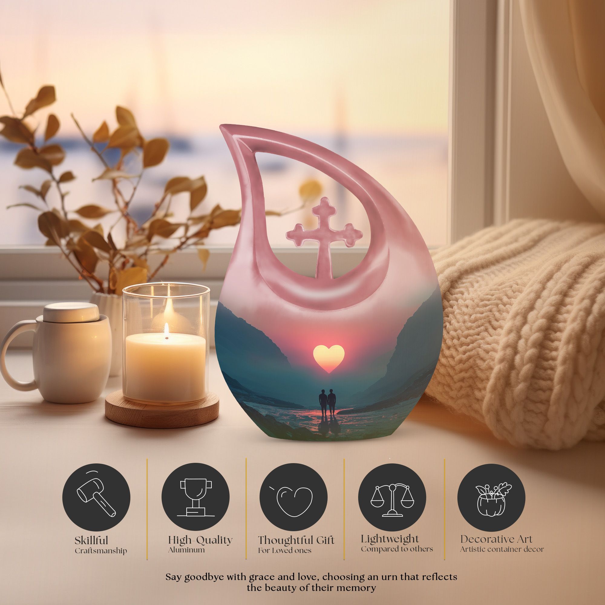 The Twilight Romance Urn is a beautifully crafted, drop-shaped urn designed to hold a small portion of human ashes. Its sleek and elegant design, inspired by the soft hues of twilight, symbolizes eternal love and cherished memories. Perfect for those seeking a discreet and meaningful keepsake, this little urn offers a dignified resting place for your loved one’s ashes. Made from high-quality materials, the Twilight Romance Urn serves as a timeless tribute, blending modern aesthetics with heartfelt sentiment, allowing you to keep your loved one close forever.