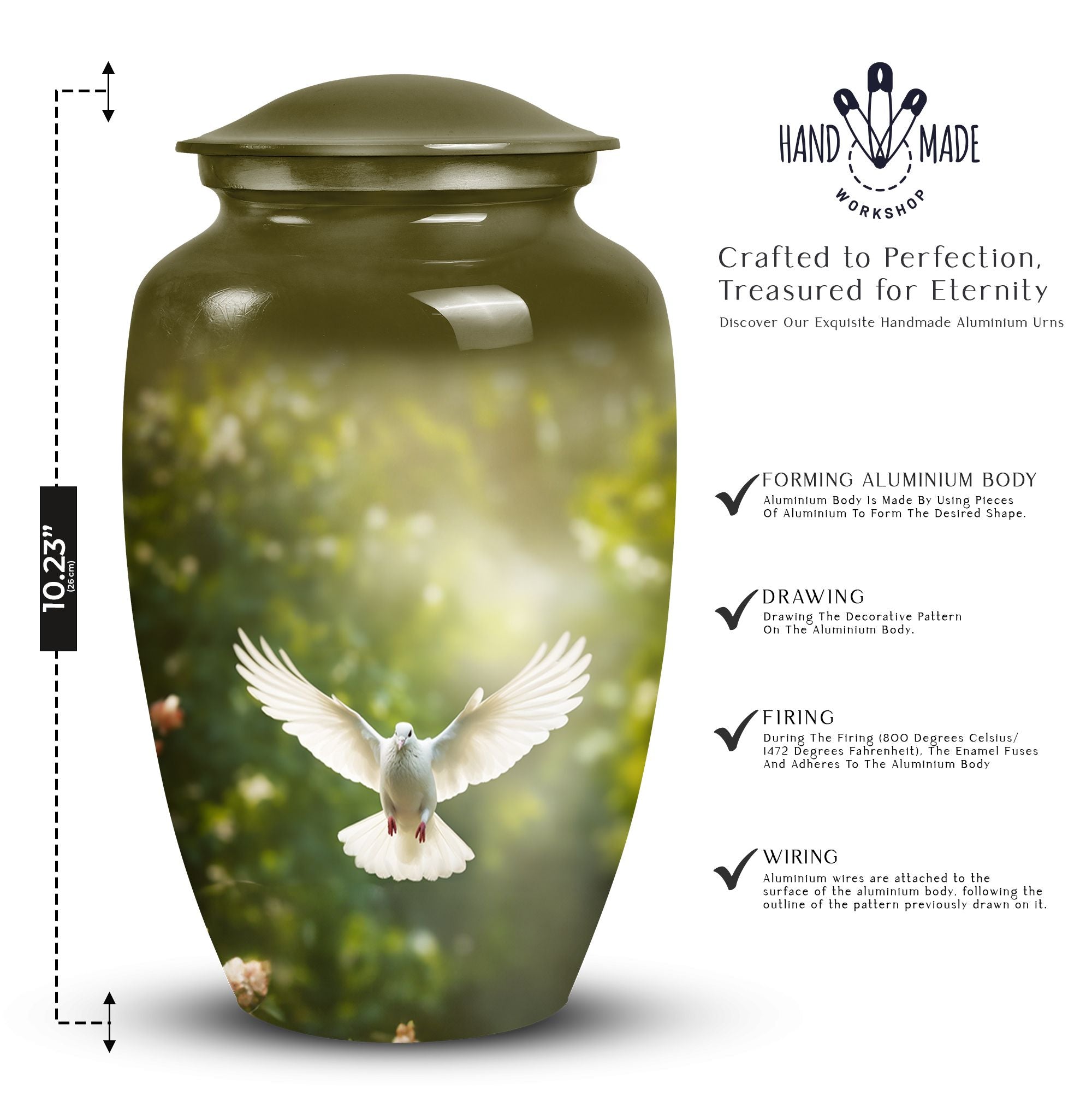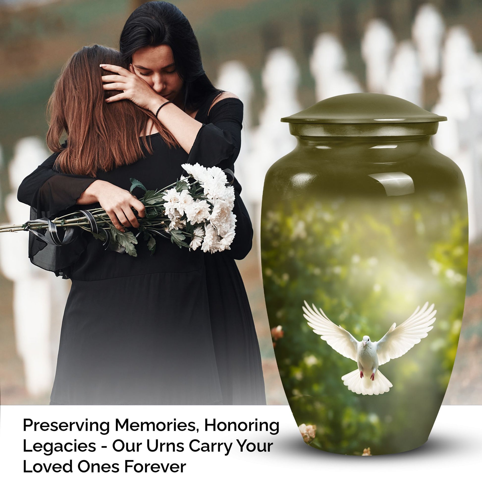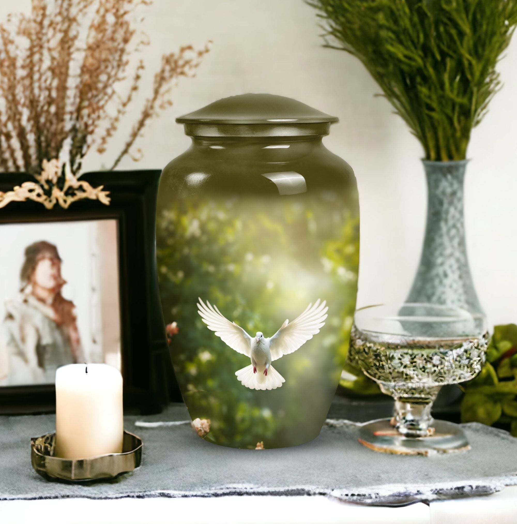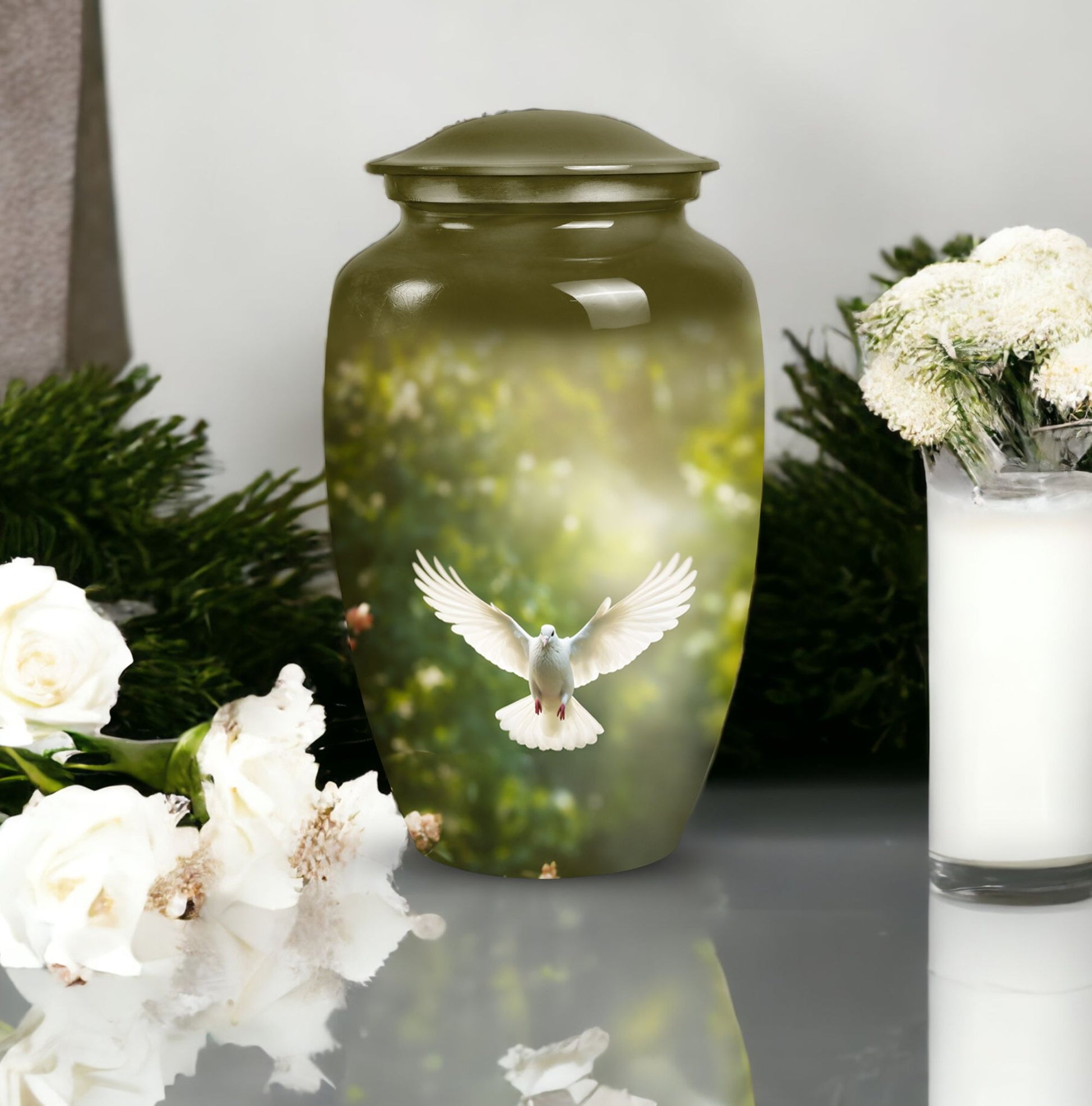 Honor your loved one's life with our intricately crafted Dove Urns For Ashes. Made from premium metal, these cremation urns offer an enduring resting place with their resilient construction. Each unique urn stands out with a sublime dove design, adding a gentle touch of serenity to any memorial ceremony. The medium size makes them ideal Urns For Burial In Ground, easily transportable, and ensures they serve as an inconspicuous, respectful presence. Uncommon in their craftsmanship, these unique urns also provide a perfect option as portable urns for human ashes, enabling you to carry your cherished memories wherever you may go. Experience a blend of solemn respect, nuanced originality, and lasting durability with these exceptional metal cremation urns. Never more than a whisper away, your beloved stays by your side, in heart and spirit, with our exquisite Dove Urns For Ashes.