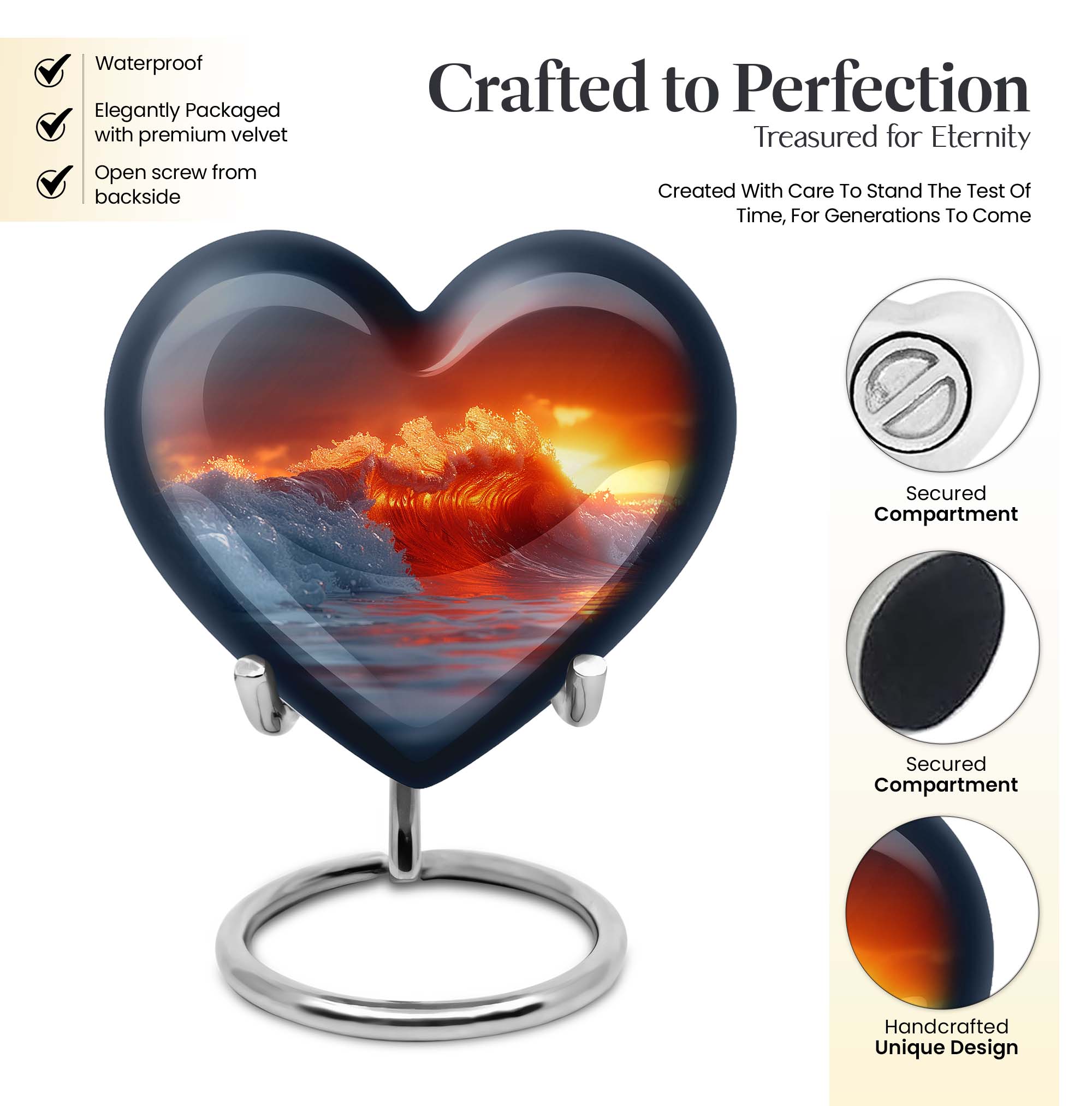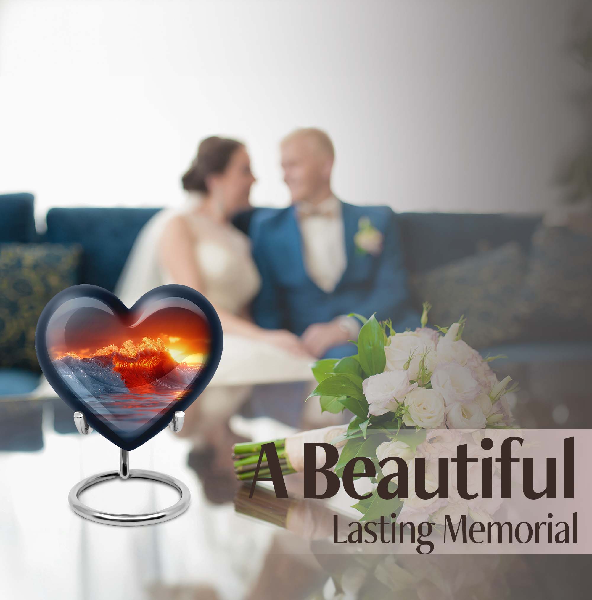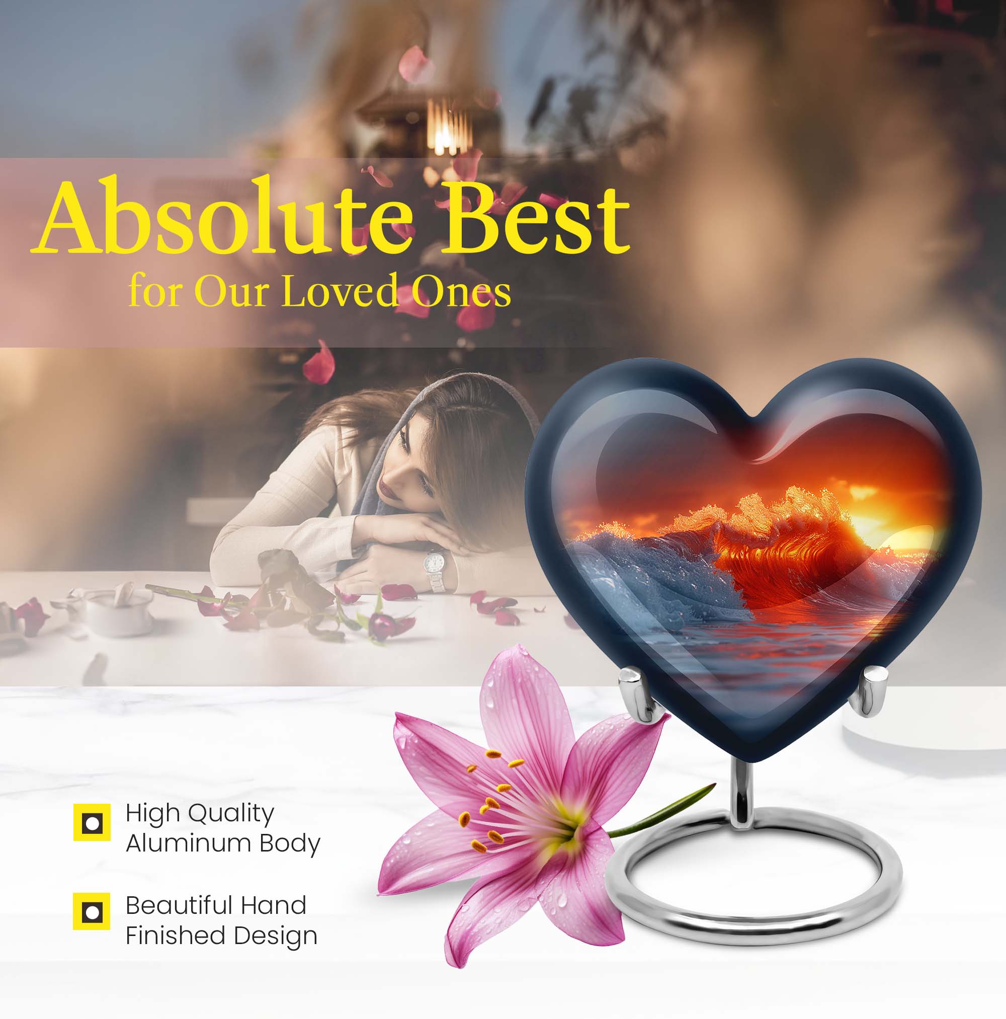 Presenting our meticulously crafted Ocean Waves Urn, an ideal choice for those seeking cremation urns in the Memorial Ceremony Supplies category. This large urn stands at 10 inches in height and weighs a sturdy 3.3 pounds - a fitting tribute for your beloved adult female. The ethereal ocean theme resonates with the transformative journey of life and ascends its aesthetic appeal. Made from high-quality aluminum, the urn possesses a capacity of 200 cubic inches, ensuring ample space for ashes. For those who seek a more personal touch, you can customize the urn with engraved names, making it genuinely unique. Your package will also include a velvet pouch, serving as a respectful container for the ashes. Whether you're searching for 'burial large urns', 'urn ash adult human ash', or 'cremation ashes containers', the versatility of our Ocean Waves Urn meets varied needs. This high-integrity urn is more than a product; it's a beloved memory.