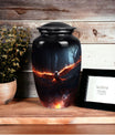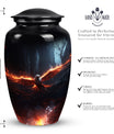 Discover tranquility and peace while honoring the everlasting memory of your departed loved one with our Phoenix Urn. This elegant urn has been designed with exceptional individuality and superior craftsmanship. The radiant symbolism of the Phoenix, the mythical bird that represents rebirth, encourages healing and strength in tough times. Ideal for preserving the ashes of an adult, this funeral urn has been expertly fabricated with the highest quality metal, ensuring durability and timelessness. Echoing the profound emotions that every soul-stirring ceremony evokes, this vessel provides a significant way to commemorate your beloved grandfather or any cherished adult family member. Our Phoenix Urn marries the sobering reality of loss with the unending beauty of life, providing an exquisite, poignant resting place. A token of love, a symbol of respect - this unique urn for human ashes is much more than a memorial ceremony supply, it's a tribute to a life well-lived. Bring serenity to your grieving process and make your loved one's journey beyond life an honorable one.