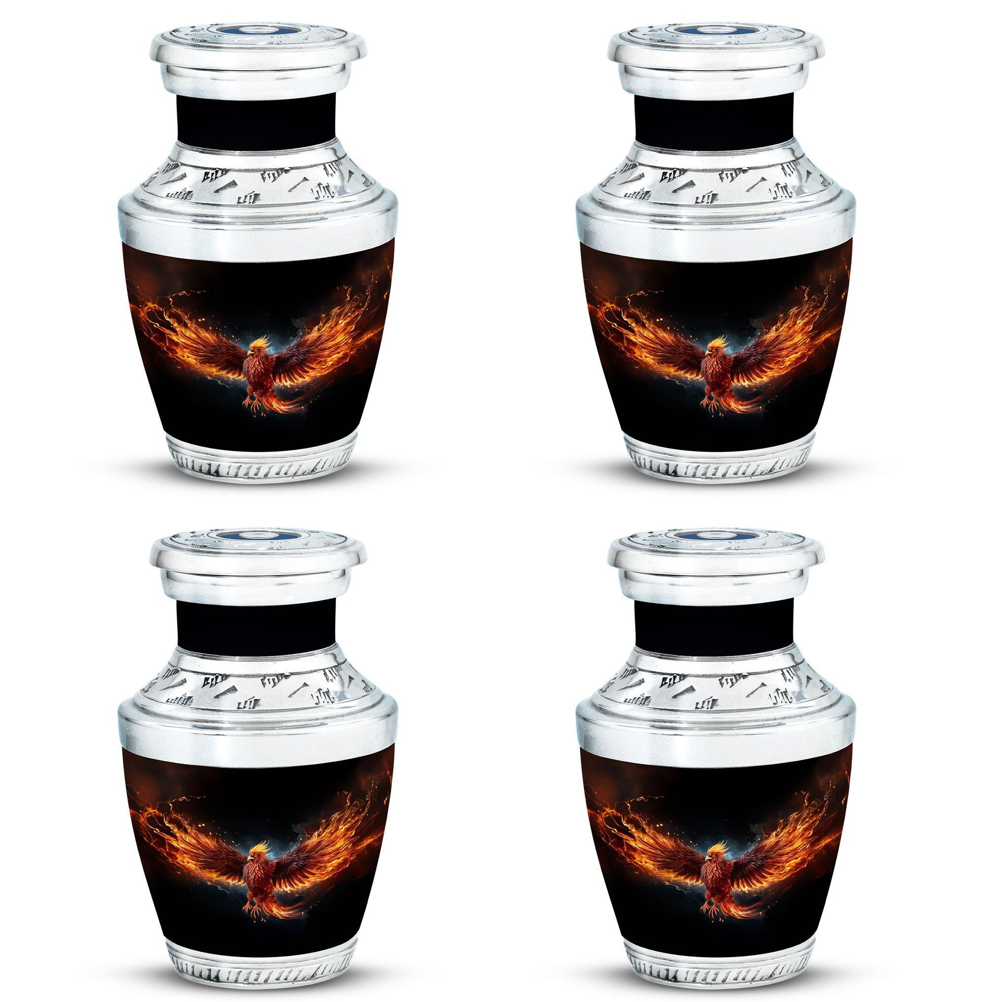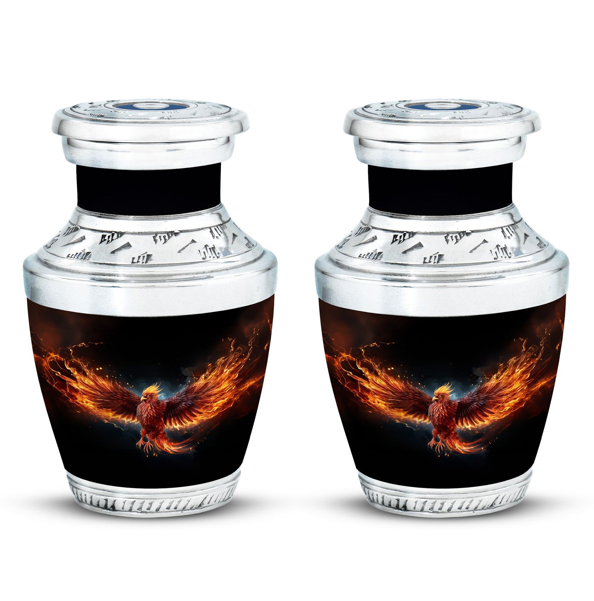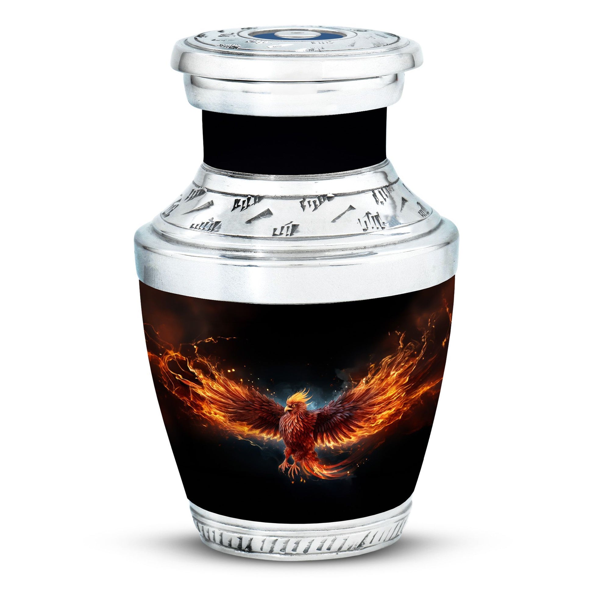 Treasure the memory of your loved ones with our Red Phoenix Urn. Exemplary in craftsmanship, this unique urn is a size of 3 inches, offering a large capacity of up to 200 cubic inches, ideal for containing ashes of an adult. Delicately crafted from resilient Aluminium, it boasts a grandiose height of 10 inches and weighs 3.3 pounds. The urn's classic style perfectly epitomizes eternal beauty and remembrance every time it's viewed. It includes a soft velvet pouch that provides consolidated containment for the ashes. For a more touching tribute, you can personalize it with engraved names. Our beautifully personalized including the Red Phoenix Urn is meticulously designed for adults, proving itself as one of the most unique, large cremation urns in the market.