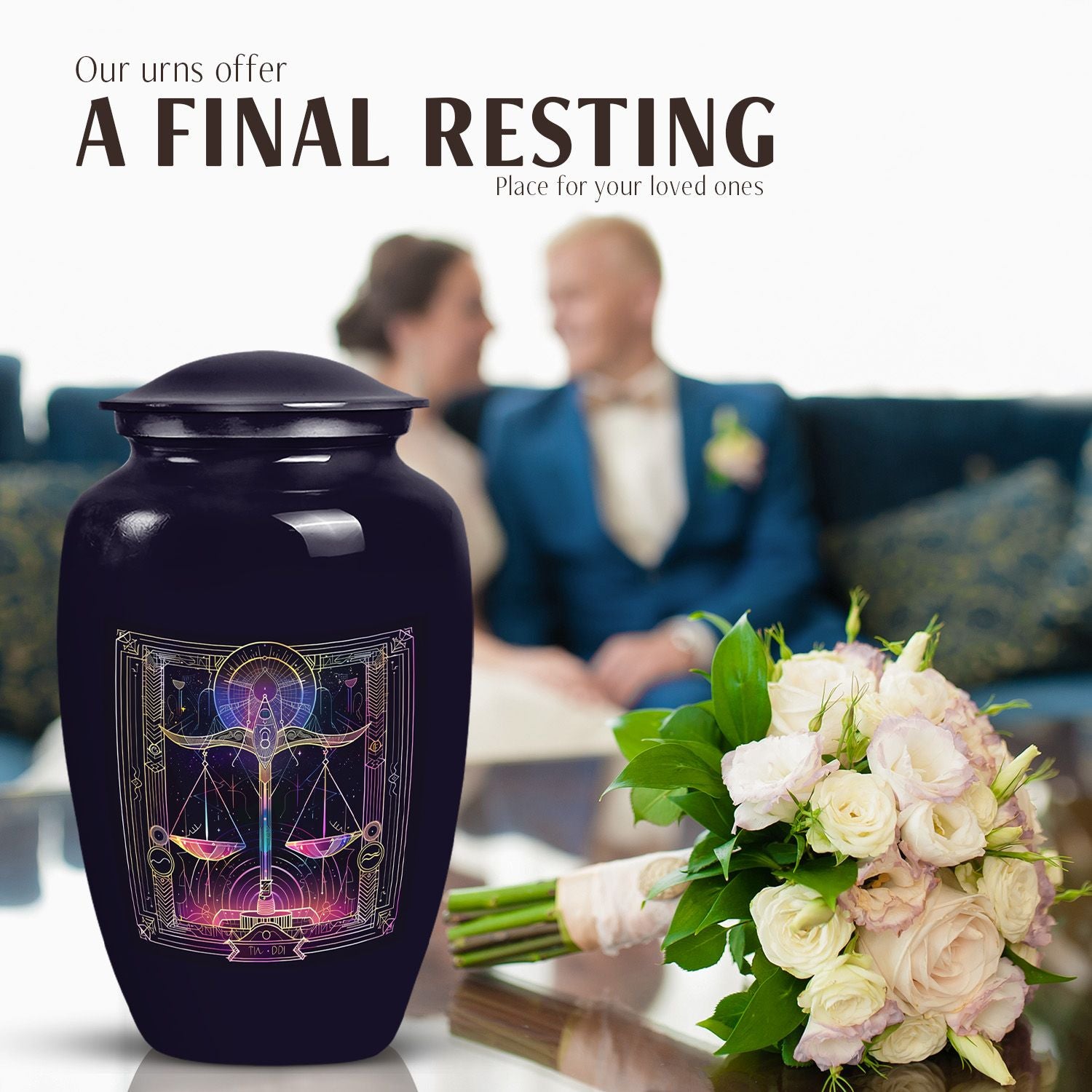 Immerse yourself in the celestial charm of our Zodiac Urn. Its abstract theme beautifully communicates an enduring connection with loved ones. This large Urn, handcrafted from premium aluminium, stands 10 inches in height. Its substantial weight, about 3.3 pounds, attests to its robust and enduring quality. The 200-cubic-inches capacity securely holds human ash remains, making it a poignant choice as cremation medium urns for human ashes. Personalize it with engraved names to create a truly unique memorial for your loved one. Nestled within is a lush velvet pouch, a thoughtful element ensuring secure containment of ashes. Let this classic urn become your timeless testament of love. From burial cremation urns to human cremation, we've infused importance to every detail in the creation of this memorial urn. Unique yet respectfully traditional, these funeral urns for human ashes adult are not mere shaped-to-go containers, they are lovingly crafted memorabilia.