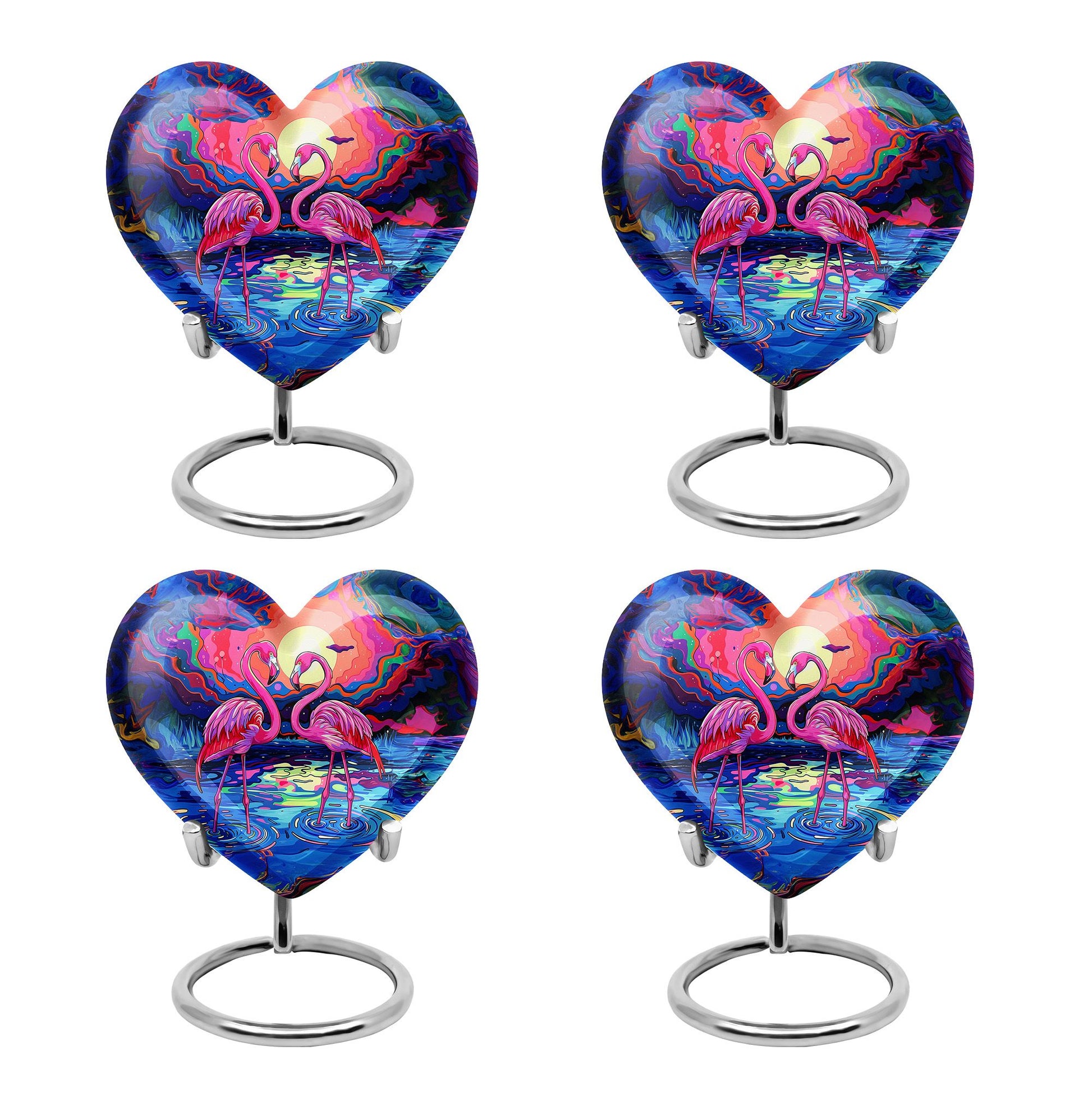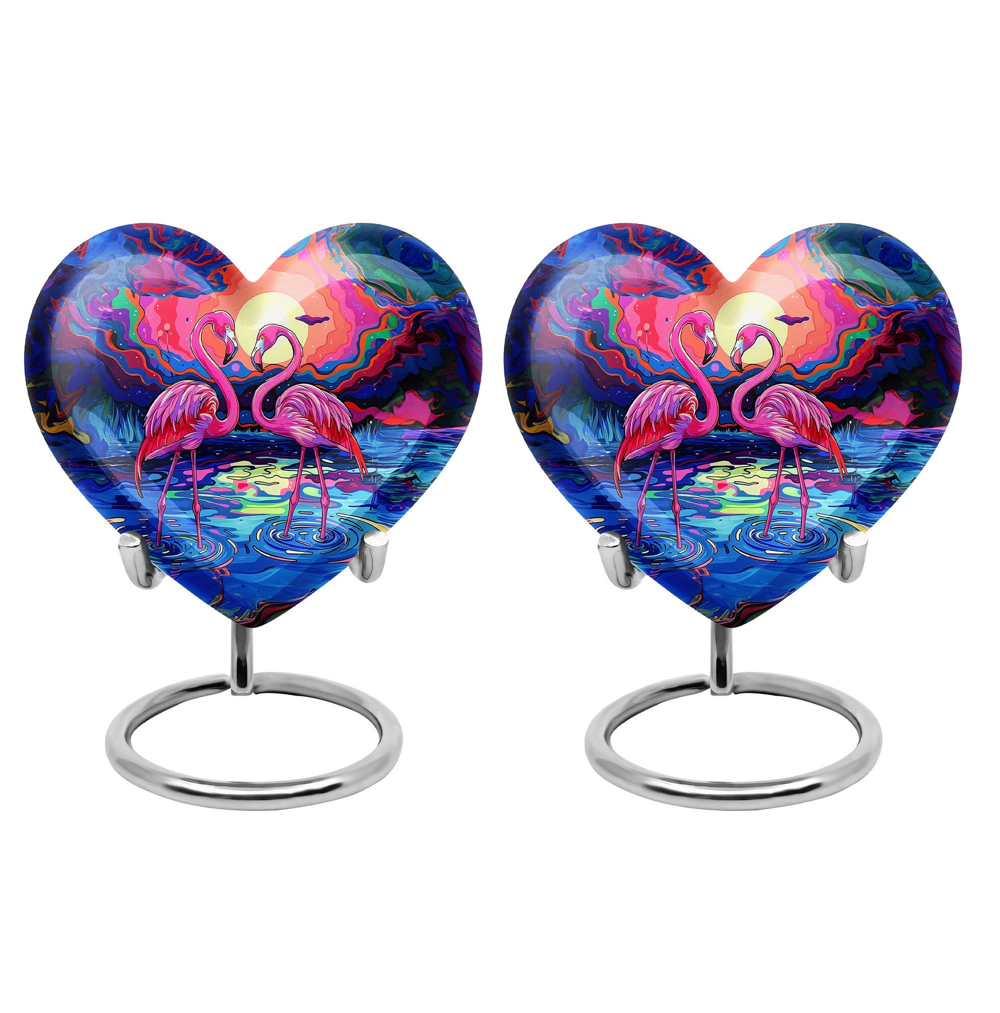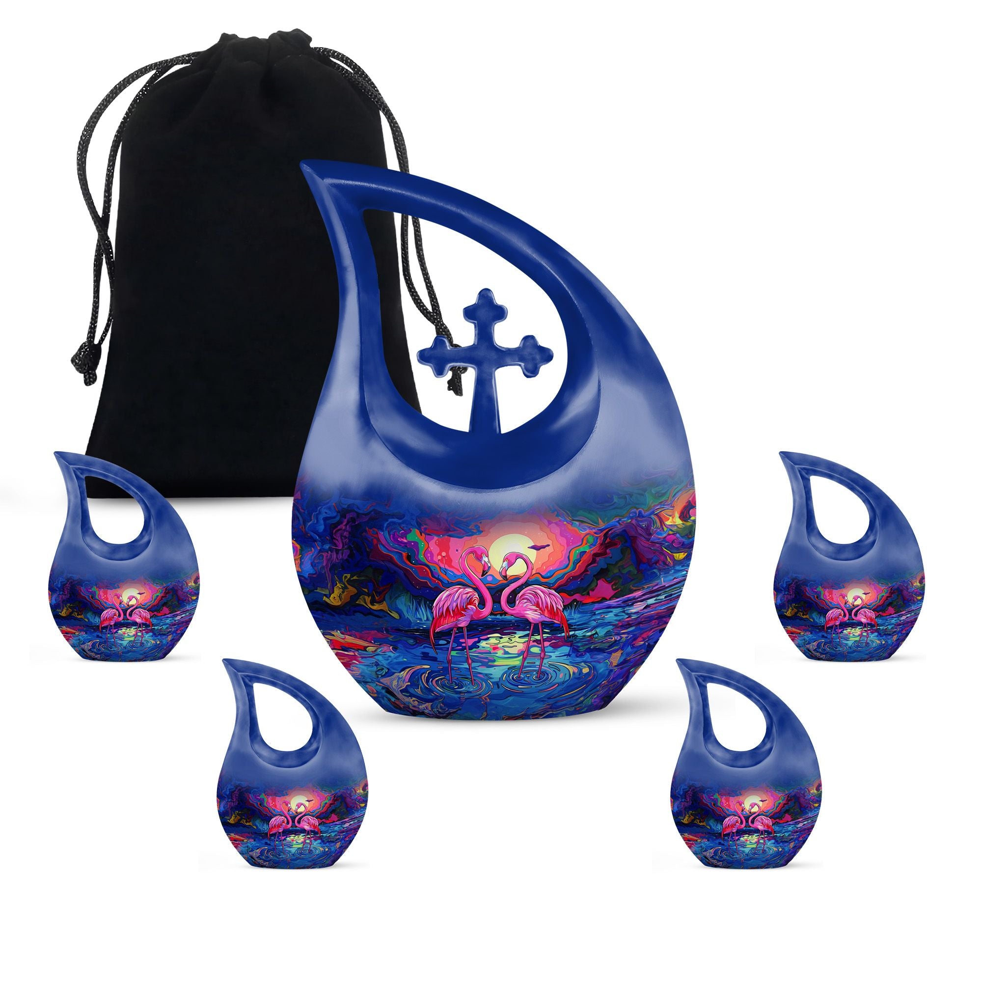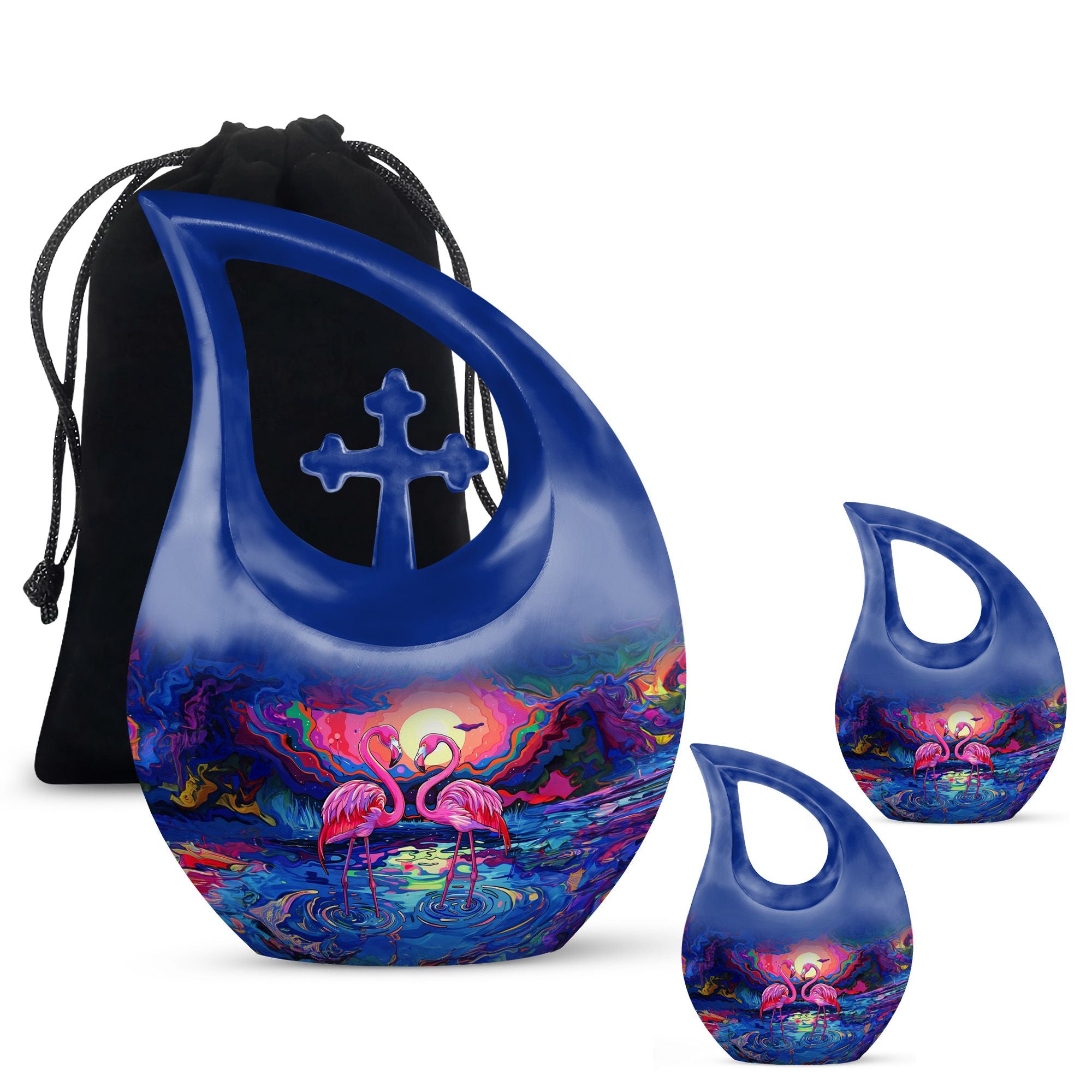 Crafted from durable aluminum, this urn is made to last while maintaining its artistic allure. Its polished finish and vivid flamingo artwork make it a perfect choice among burial urns for human ashes or cremation urns for burial. The secure screw-top lid ensures ashes are safely preserved, providing comfort and peace of mind. Ideal for use as a burial urn for ashes or urns for burial in ground, it offers elegance and protection when laid to rest. It can also be paired with small burial urns for adult human ashes for shared family memorials or companion tributes.