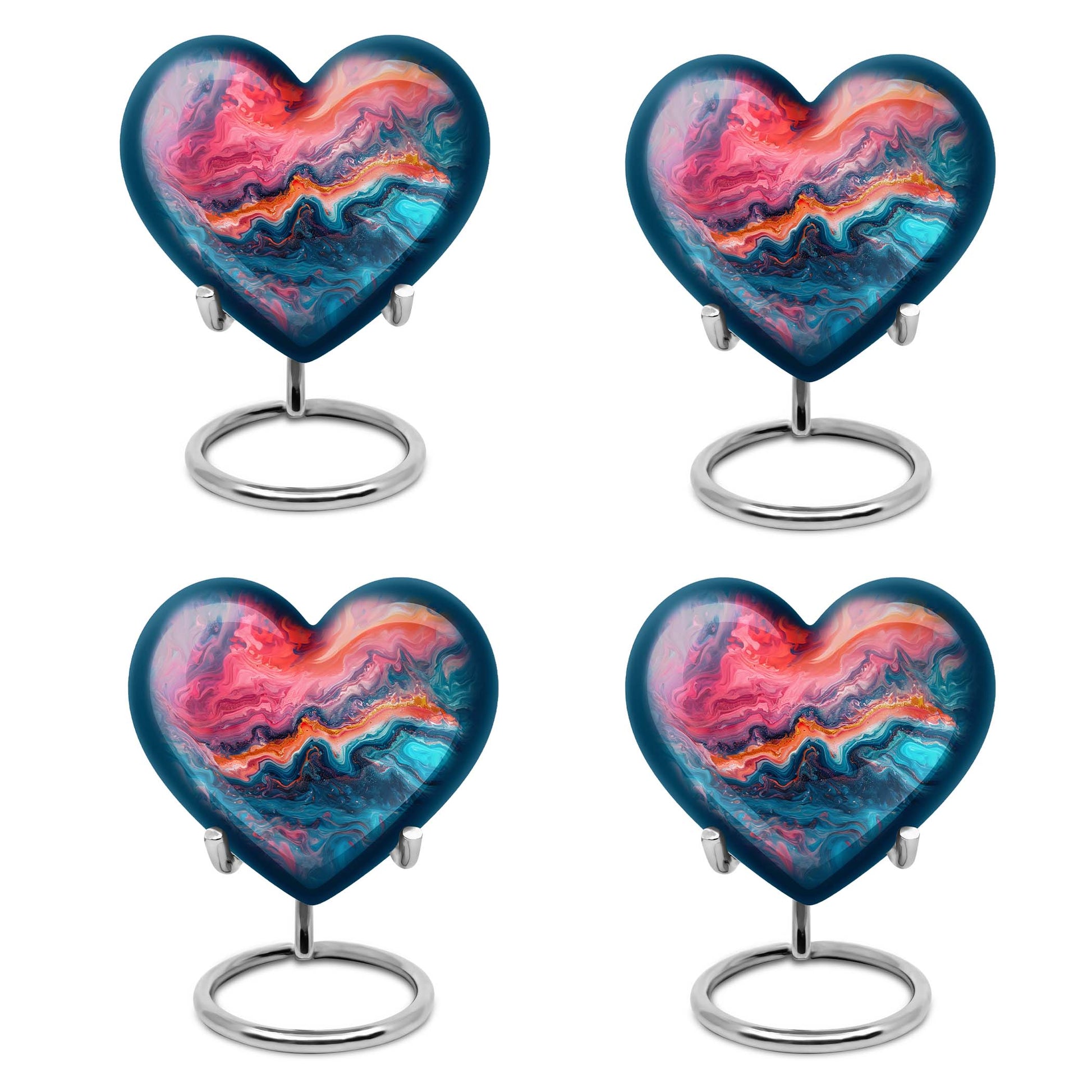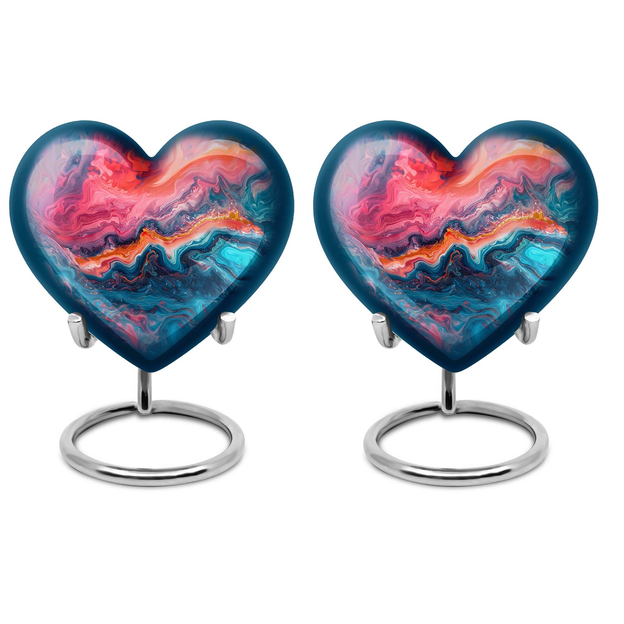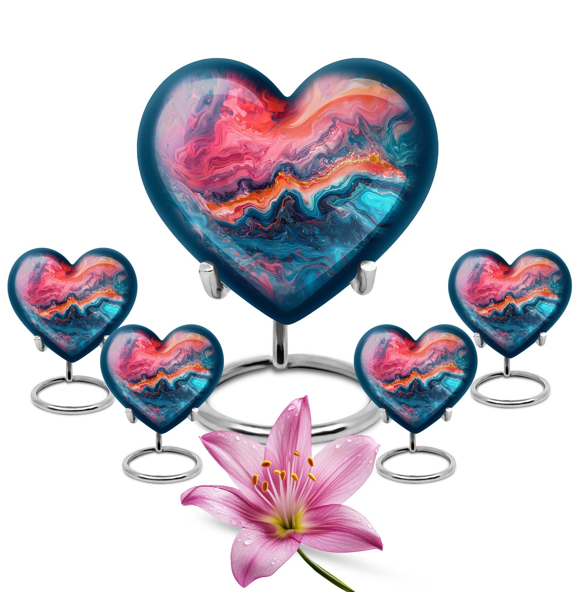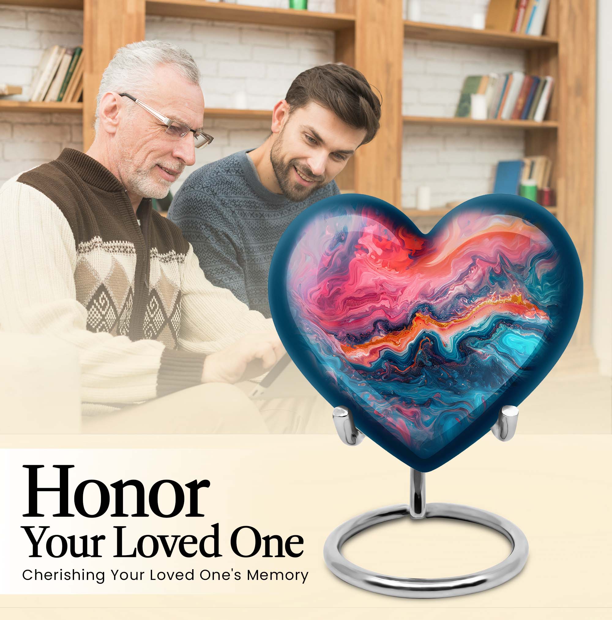 This Vibrant Swirl Urn is an eloquent solution to honor the life of a beloved adult woman. Crafted meticulously with high-grade aluminium, this burial cremation urn for adult ashes weighs a sturdy 3.3 pounds and stands proud at 10 inches in height. The abstract, heart-shaped design encapsulates a capacity of 200 cubic inches, providing adequate space for containment of commemorative ashes. Its accompanying velvet pouch offers additional convenience and respect for the ceremonial process. This large urn sports the option to personalize, you can effortlessly engrave names onto its vibrant surface, making it a meaningful keepsake or a vessel of remembrance. As one of our premium memorial urns offerings, it combines tradition and modernity, resulting in a unique expression of love and remembrance. Be it for men or women looking for urns for human ashes, this piece represents enduring respect for your cherished ones.