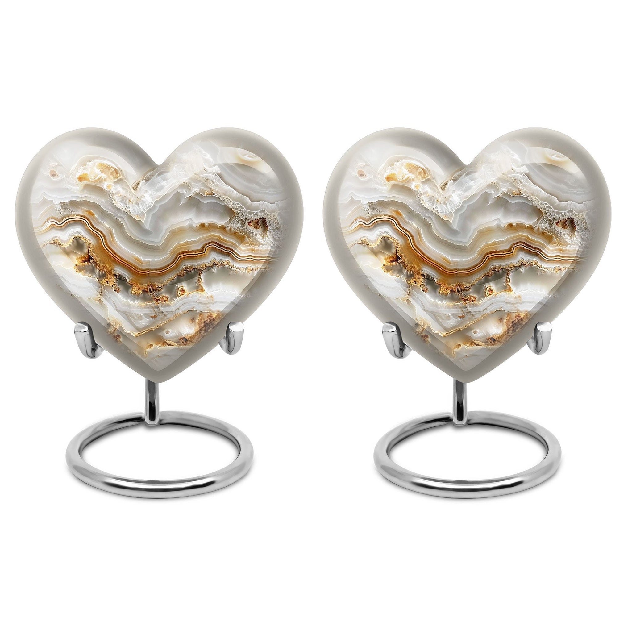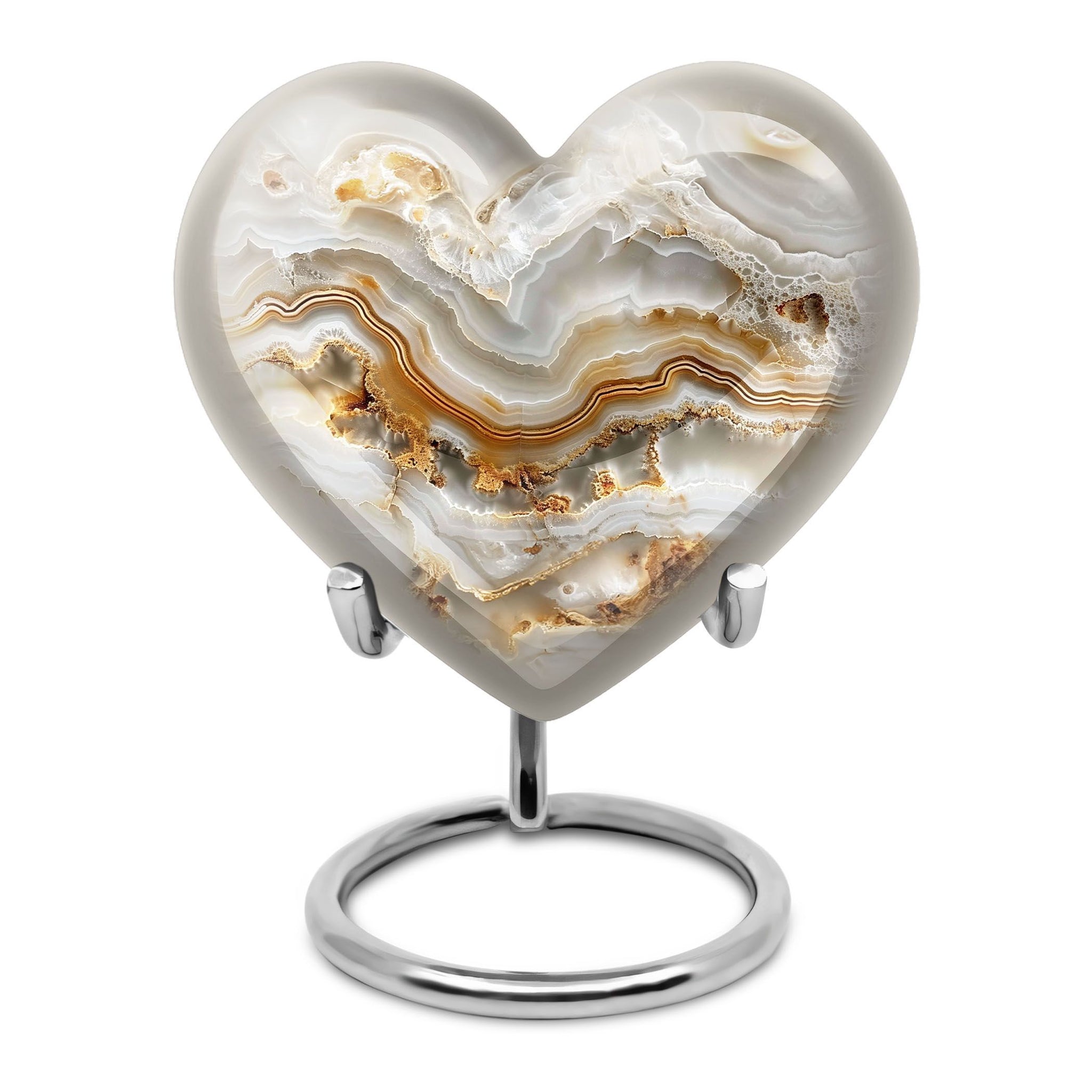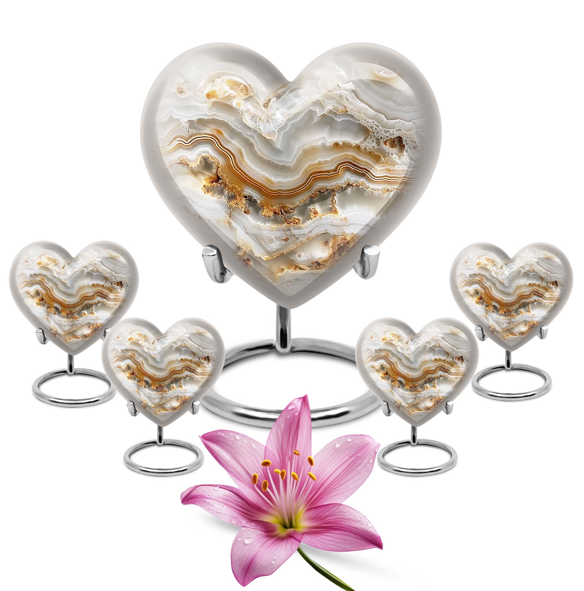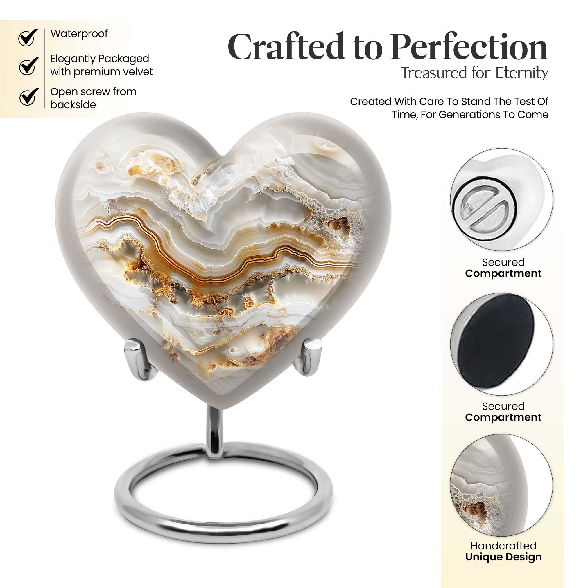 Experience a touching tribute to your loved ones with our Vibrant Swirl Urn - a memento that not only keeps the memory alive, but also serves as an artful abstract decor. Crafted from hard-wearing Aluminium, this large urn is light at just 3.3 pounds, yet sturdy to last the test of time. Respecting the scale, the 10-inch Heart Urn stands tall, housing up to 200 cubic inches of ashes. Make it more meaningful with our 'Personalize with engraved names' feature. Despite its grandeur, the urn caters to practicality through its velvet pouch provided for containment of ashes. Whether you're seeking burial urns for cremation ashes or human ash adult urns, this vibrant product caters both. The optimal choice for cremation adult urns for human ashes for men that delivers dignity with an element of style.